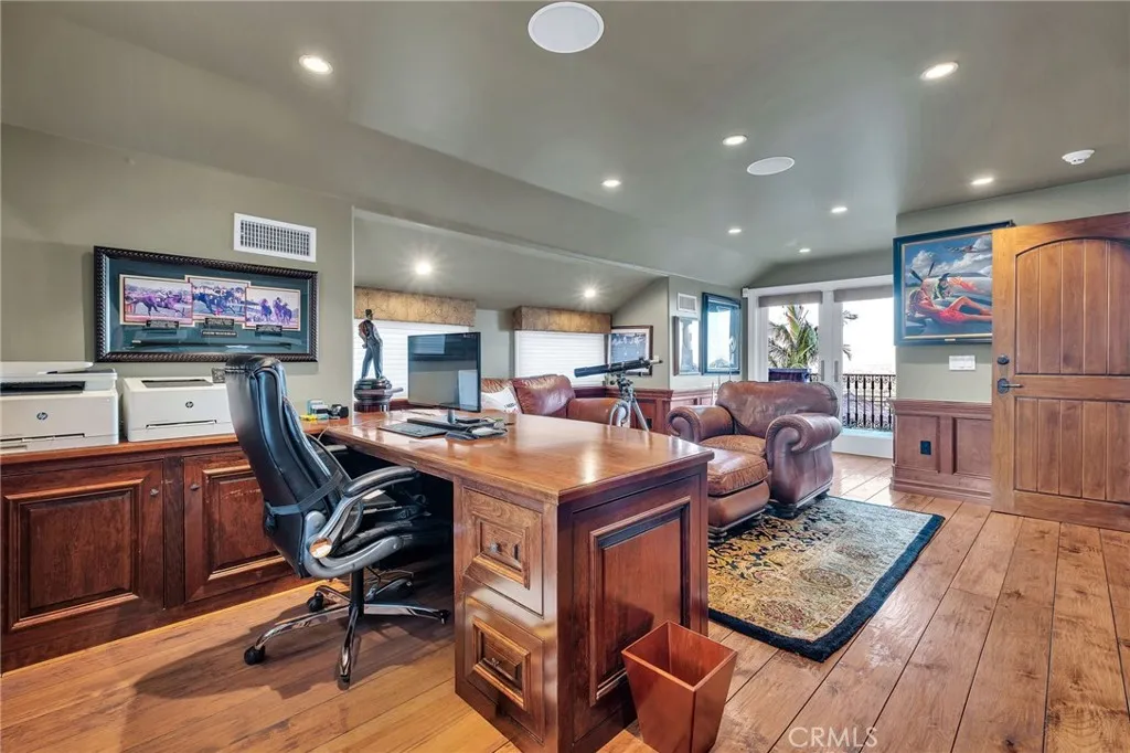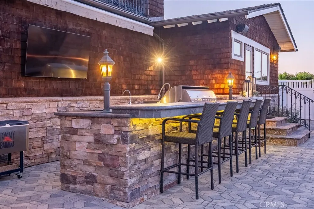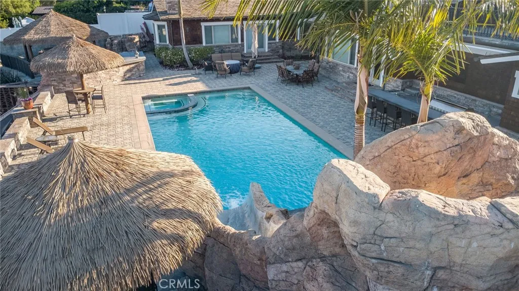 Welcome to 16 Saddle Road, a private, resort-style escape set on a rare 21,383 sq ft lot, where timeless craftsmanship meets cutting-edge luxury in one of Rancho Palos Verdes’ most coveted enclaves. From the moment you arrive the warm cedar siding, classic slate roof, and manicured coastal landscaping set the tone. Inside, artisan details and premium materials define every space. High vaulted cedar wood ceilings create a dramatic yet inviting atmosphere, complemented by smooth Venetian plaster walls, custom solid hickory wood floors, and custom interior solid hardwood doors crafted from fine Honduras wood. The home’s thoughtful design offers 5 bedrooms and 5 full baths, including a dedicated, fully customized private office suite—complete with its own bathroom, balcony, built-in cabinetry, TV, and custom desk—which can easily function as a fifth bedroom or luxurious guest quarters.The gourmet kitchen is a true showpiece, equipped with top-tier Thermador, Miele, Wolf, and Sub-Zero appliances, custom cabinetry, and an oversized island ideal for entertaining. Throughout the home, a high-end Lutron lighting system and integrated audio with in-ceiling speakers and individual controls elevate both convenience and ambiance. For the ultimate entertainment experience, a fully dedicated, soundproof home theater features a 120′ screen powered by 7.2 surround system with high-end built-in speakers and eight electric, power-reclining leather chairs—delivering a true cinematic environment in the comfort of your own home. The primary suite offers a serene retreat, complete with a spa-inspired bathroom featuring a Jacuzzi soaking tub and a luxurious steam shower, along with a custom cedar walk-in closet and cozy fireplace for added comfort. Step outside to your private backyard oasis—designed for both relaxation and entertaining—with an island-style pool and spa, waterslide, and intuitive indoor controls. The outdoor kitchen is fully equipped for hosting, including a premium Lynx grill setup and a wood-burning brick pizza oven, perfect for alfresco dining and unforgettable gatherings. This home is as intelligent as it is beautiful, featuring 52 high-end American-made solar panels. From its bespoke finishes to its resort-caliber amenities, 16 Saddle Road is more than a home—it’s a lifestyle. Whether you’re entertaining on a grand scale or enjoying a quiet evening under the stars, this extraordinary property offers a living experience that is truly without compromise.