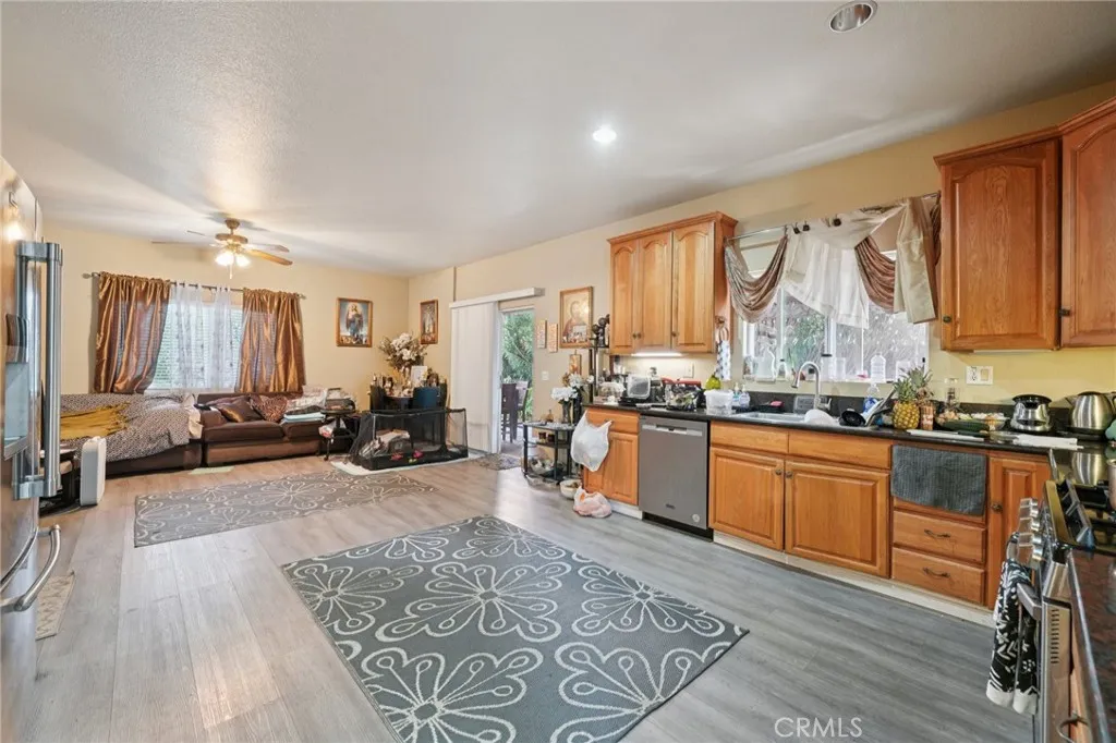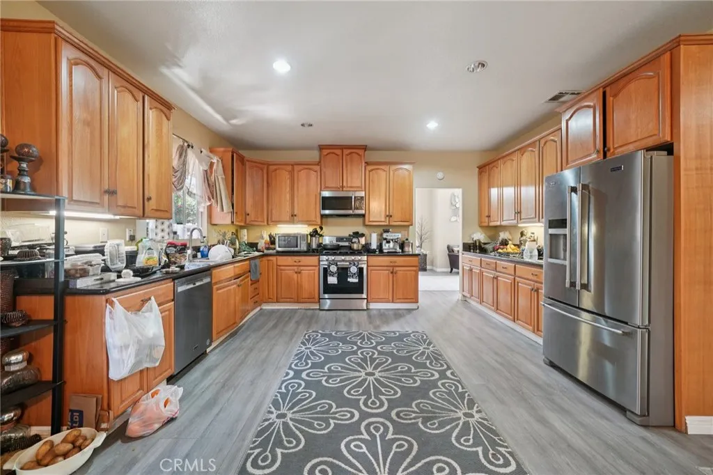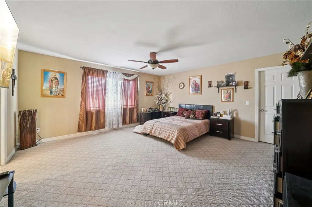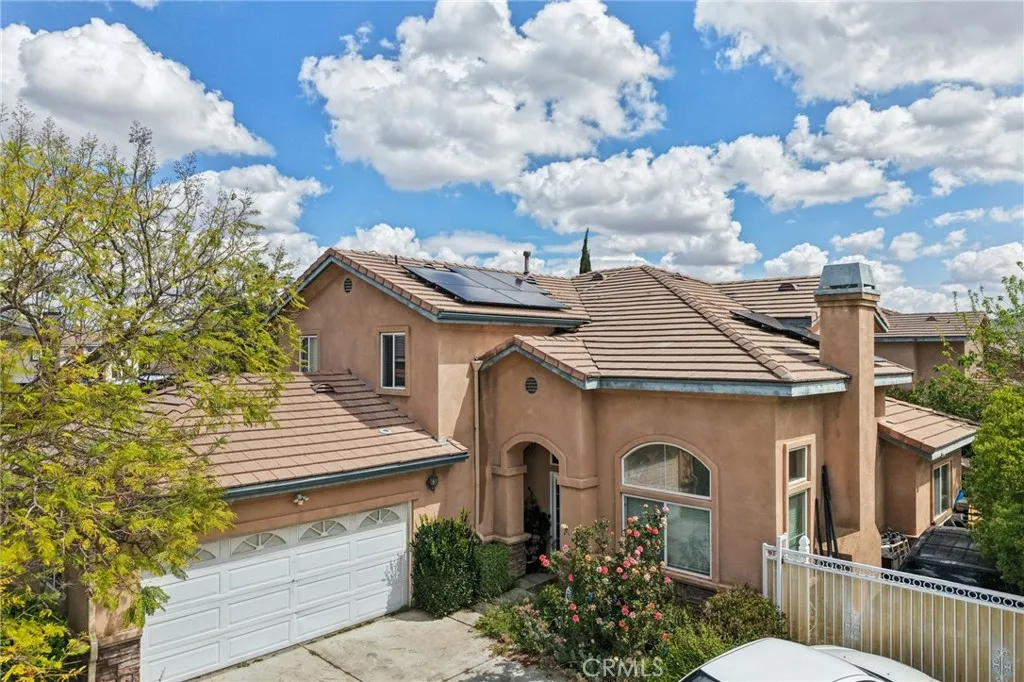 UPGRADED LARGE 4 BEDROOM AND 3 BATHROOM HOME LOCATED IN A CUL DE SAC, CATHEDRAL CEILINGS WITH A BEAUTIFUL STAIRCASE LEADING TO THE 2ND FLOOR, UPGRADED KITCHEN WITH DINING AREA, ALSO A FORMAL DINING ROOM, MODERN FIREPLACE IN THE LIVING AREA, ONE BEDROOM DOWN STAIRS AND THE OTHER 3 BEDROOMS ARE LOCATED UPSTAIRS, ONE MASTER BEDROOM UPSTAIRS WITH WALK IN CLOSET WITH LARGE BATHROOM THAT HAS A JACUZZI TUB AND SHOWER, DOUBLE SINKS, UPGRADED WOOD FLOORING IN THE LIVING ROOM, FAMILY ROOM, KITCHEN, LAUNDRY ROOM, STAIRS. LARGE FRONT AND BACK YARD WITH LARGE PATIO IN THE BACKYARD, NEW SOLAR PANELS, BRAND NEW SPRINKLES INSTALLED, EV CHARGING IN THE GARAGE, LARGE CARPORT ON THE SIDE OF THE HOME, LONG OPEN DRIVEWAY FOR PARKING SEVERAL CARS OR LARGE RV. LOCATED CLOSE TO ENTERTAINMENT, SHOPPING, SCHOOLS, FREEWAYS.