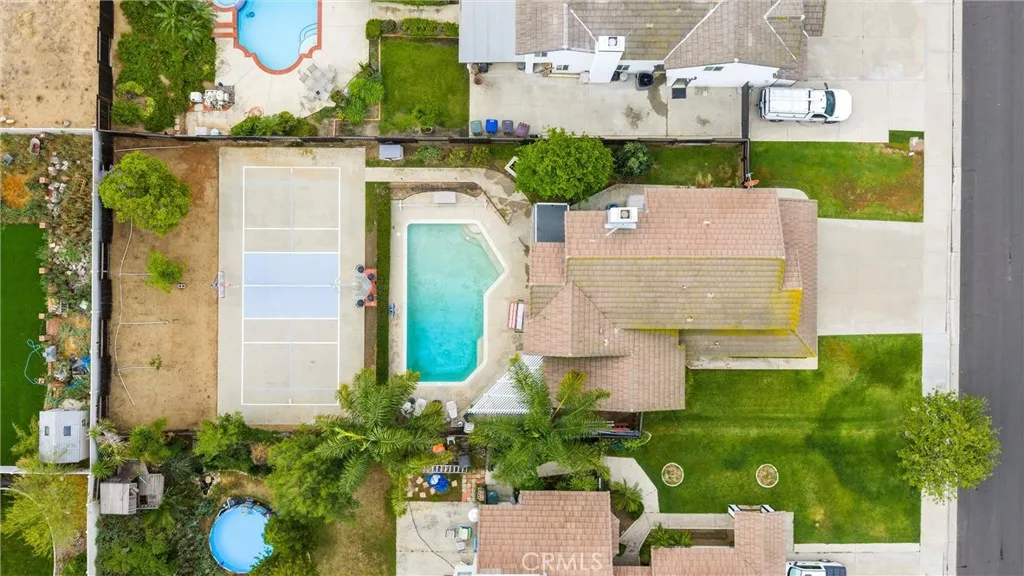 Welcome to the highly sought-after Orangecrest community in Riverside! This spacious and beautiful home offers 5 bedrooms and 3 bathrooms, with a versatile layout designed for both comfort and functionality plus no HOA. Enjoy multiple living spaces, including a formal living and dining room, as well as a separate family room—perfect for entertaining or relaxing. A generously sized main-floor bedroom provides an ideal setup for multigenerational living or guest accommodations. Upstairs, the expansive primary suite is a true retreat, featuring soaring ceilings, abundant natural light, and access to a private balcony overlooking the backyard. Recent upgrades include fresh interior paint, new carpeting throughout the upper level and stairs creating a modern and move-in ready feel. The exterior has also been recently painted, enhancing the home’s curb appeal. Step outside to your own private backyard oasis with mature fruit trees, a fenced pool for added peace of mind and a lighted multi-use sport court—perfect for pickleball, paddle tennis, volleyball, badminton, or basketball. Situated in a quiet, welcoming neighborhood just minutes from parks, shopping, and dining, this home offers the perfect blend of space, style, and convenience. Don’t miss this incredible opportunity to make it yours!