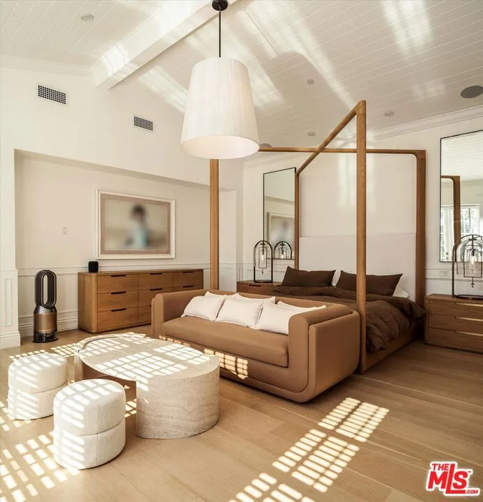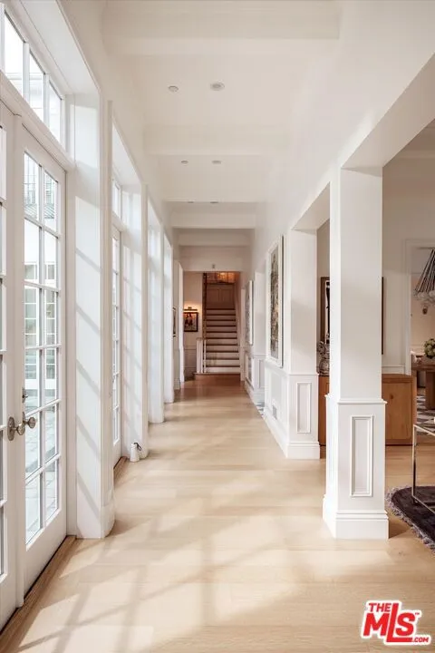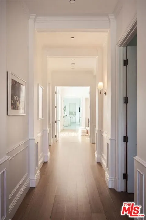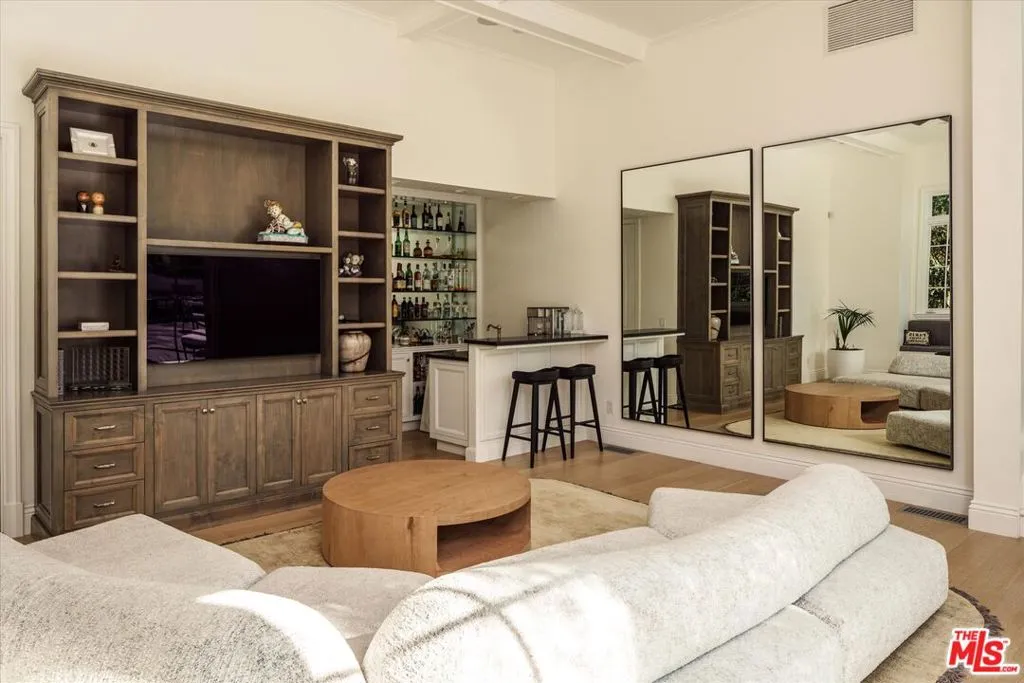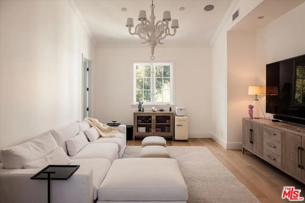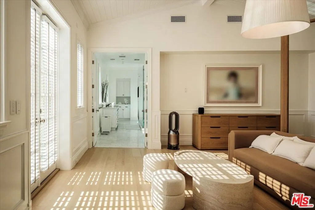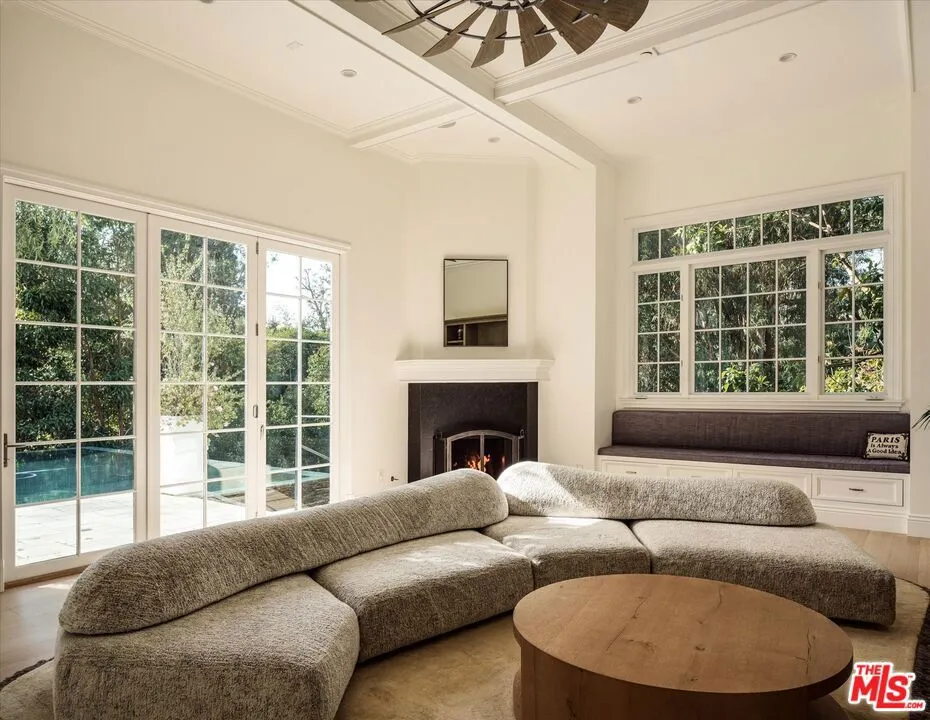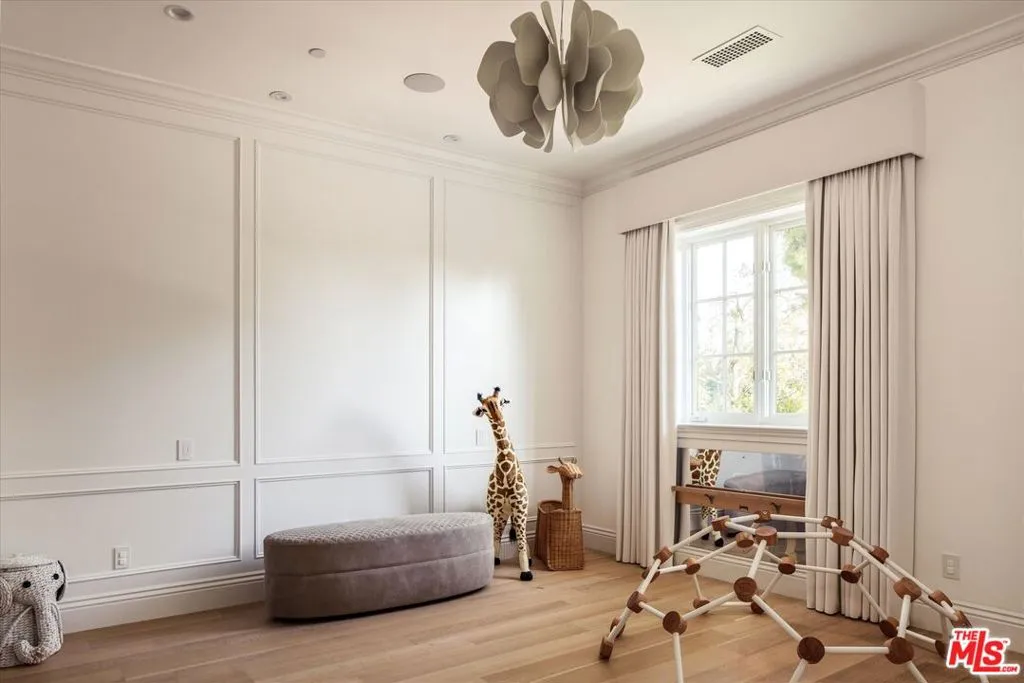 Nestled behind private gates, this traditional estate showcases timeless elegance and modern comfort. A spacious motor court with room for 12+ cars sets the tone for luxury upon arrival along with a 3-car garage and direct access to the property. Inside, the foyer features stunning Honed gray and white marble floors and leads to the formal dining room and a grand living room adorned with a fireplace, and built-ins. Expansive floor-to-ceiling French doors flood the home with natural light, creating a bright and inviting atmosphere throughout and allowing for a view of greenery out to the back garden. The chef’s kitchen is a culinary dream, equipped with top-of-the-line Miele appliances, dual SubZero drawer fridge and pro-glass front fridge, dual sinks, a 6-burner stove with griddle, two dishwashers, a microwave steam oven, wine refrigerator, a walk-in pantry, and a center island with a breakfast bar. The kitchen also features beautiful French doors that lead out to the patio which create the perfect space for outdoor dining. Adjacent, the family room offers a cozy fireplace, ample lounging space, and a bar for entertaining, all highlighted by an oversized bay window that seamlessly blends classic charm with contemporary design. The main level also includes a refined office/library with a wet bar and a comfortable guest suite. Upstairs, the primary suite impresses with a high ceiling and Juliet balcony overlooking the garden. The primary bath features dual sinks, a large walk-in shower with dual shower heads, two walk-in closets, a vanity area, and a separate soaking tub with peek-a-boo views of the Getty Museum. Upstairs you’ll also find four additional en-suite guest bedrooms each with their own special view of the property. Outside, the estate boasts an infinity pool, with an outdoor kitchen and grill perfect for entertaining. Additionally, there’s a lush grassy area, room for a vegetable garden, chicken coop, and an additional outdoor dining area that creates an idyllic space for summer dinners and outdoor family play.