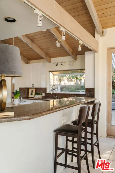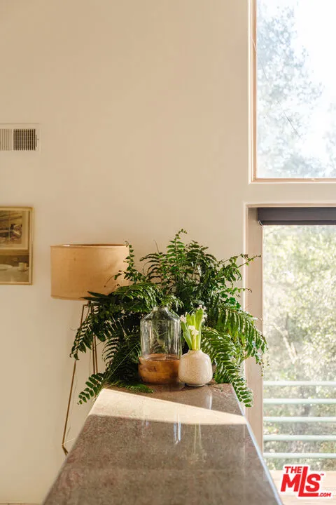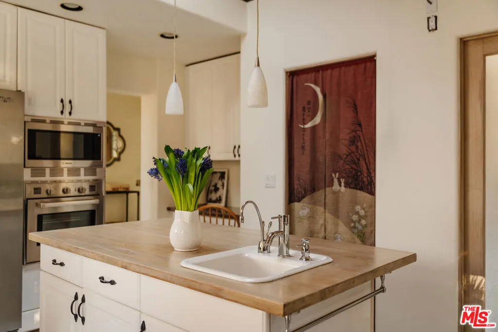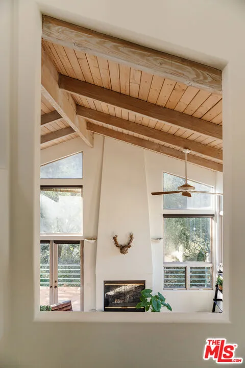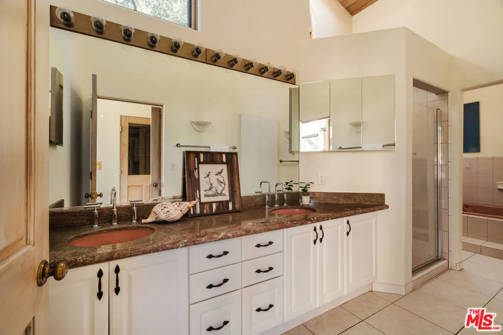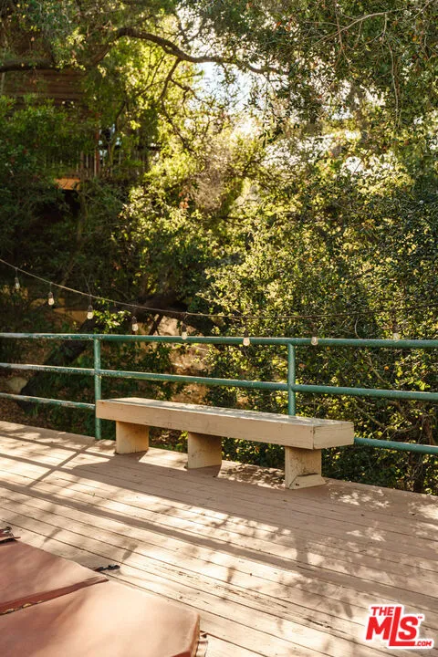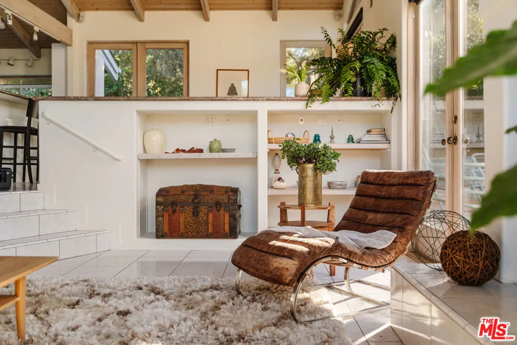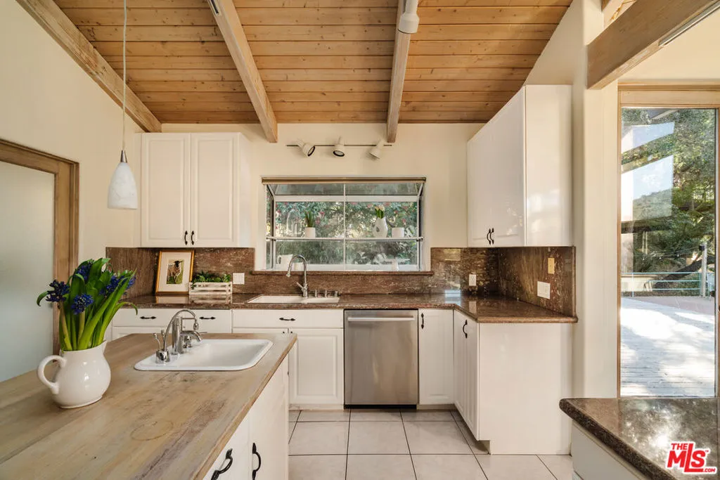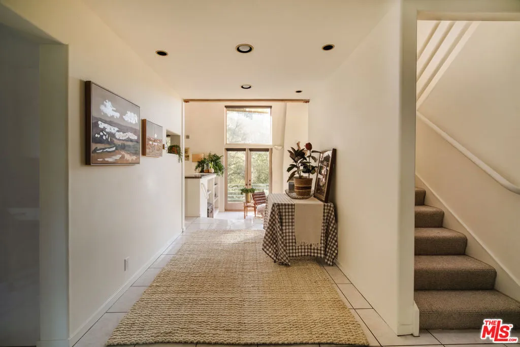 Welcome to 229 Muerdago Road, a stunning Spanish-style retreat nestled in the peaceful and historic Post Office Tract of Topanga Canyon. This spacious 2,580 sq. ft. home spans three stories and offers 3 bedrooms, 3.5 baths, and a versatile bonus space, blending elegant design with serene canyon living. Step inside through the inviting entryway and discover the heart of the home: an open, sunken living room with soaring ceilings, a central fireplace, and an abundance of natural light streaming through large windows. The seamless flow between the living, kitchen, and dining areas creates the perfect layout for both everyday living and entertaining. French doors lead out to expansive wraparound decks, featuring a built-in BBQ and plenty of space to host gatherings or simply relax while surrounded by the majestic beauty of the coastal live oak trees. The top level is dedicated to the luxurious primary suite, featuring a large walk-in closet, an ensuite bathroom with an oversized soaking tub, and a private deck with sweeping canyon views, the perfect place for evening sunsets.
