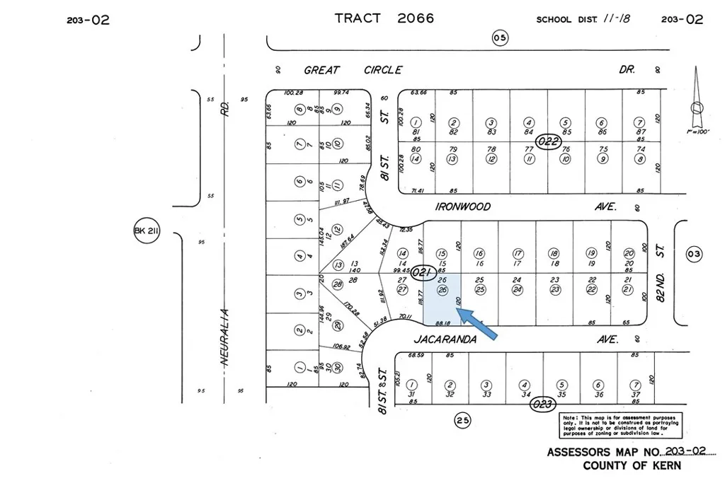 Builder-ready parcel with new construction nearby! This prime 0.24-acre homesite in the heart of California City is ready for your plans. Located just east of Neuralia Rd, this ready-to-go lot features paved street frontage, water at the street, and electricity at the rear of the parcel. Well-positioned less than a mile from California City Blvd, it offers great access to shopping and services, along with an easy drive to both the 14 and 58 Freeways–a commuter-friendly location for both Edwards AFB and the Mojave Spaceport corridor. Seller is willing to carry a loan with as little as 10-25% down and amortize the balance over 15-25 years for a term of 5-7 years at a rate of (i.) 6%, or (ii.) 2% LESS THAN the current WSJ Prime Rate. OAC. *Boundary depictions are approximate and for illustrative purposes only. Buyer to make their own independent investigations regarding Zoning and General Plan Designations, Environmental and Hazard Zones, Access and Development costs, Availability and Costs of Utilities.