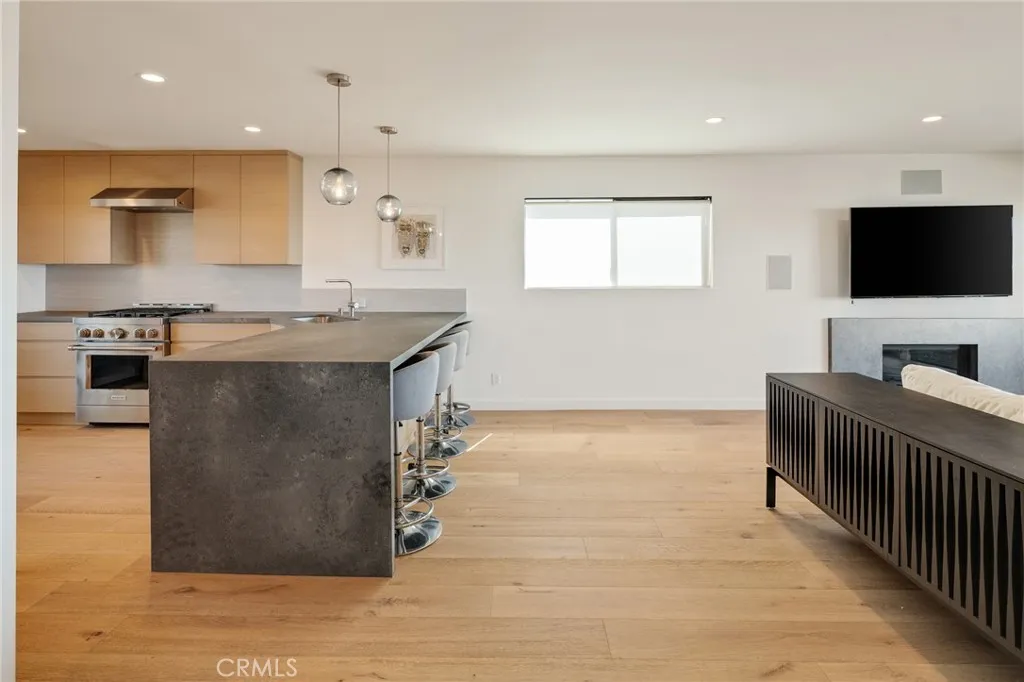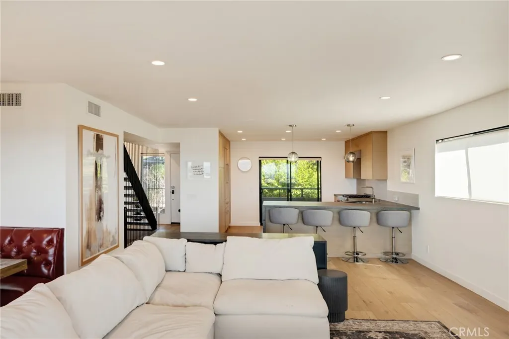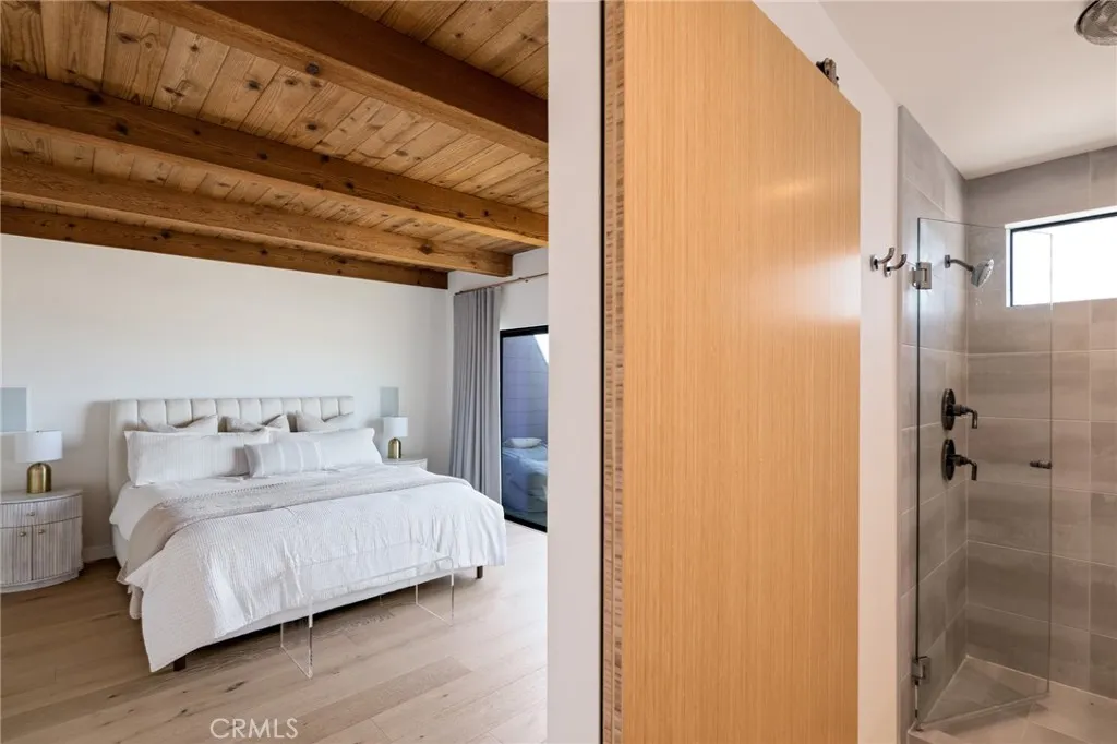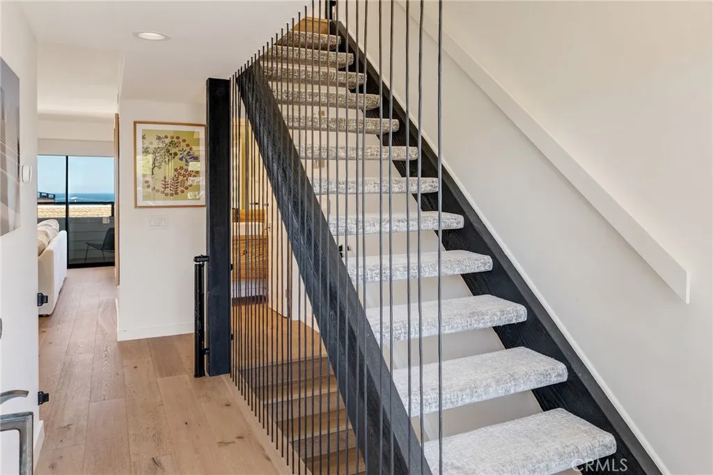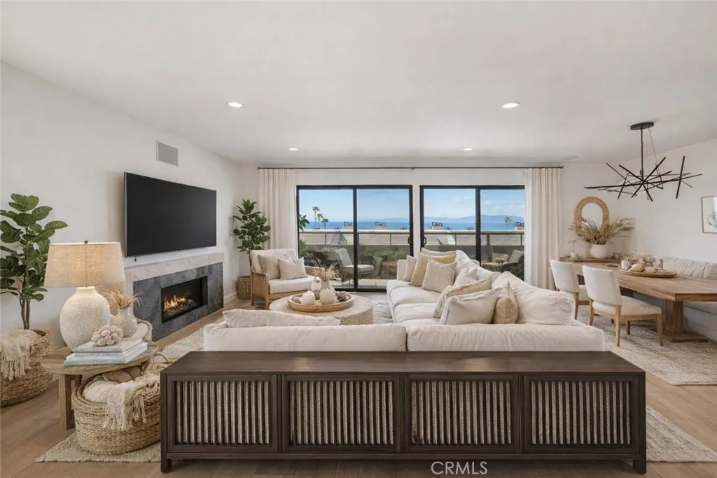 Step into an elevated world of coastal living with this reimagined ocean-view sanctuary, where every detail reflects intentional luxury & design. Perched above the Pacific with sweeping panoramic views, this exceptional residence underwent a transformative renovation, seamlessly blending timeless sophistication with modern sensibility. The effortless flow of space and light welcomes you from the moment you enter, thoughtfully opened to create a serene, airy environment that connects each room to the beauty beyond. Italian white oak hardwood floors run throughout, grounding the home in warmth, elegance, and continuity. At the heart of the home, a chef’s kitchen designed to inspire showcases custom cabinetry with a white oak exterior & birch interior, defined by sleek slab doors and a seamless, handle-free design, & is appointed with premier appliances including a Signature French Door Column Refrigerator, Samsung Chef Collection Smart Gas Range, Zypher hood, & a refined Miele full console dishwasher. An extra-deep stainless steel trough sink & artisan-crafted cabinetry bring both function & elevated style, making every culinary moment feel curated. Discreetly integrated within the home, high-end electronics & a full surround sound system deliver immersive entertainment while preserving the clean, uncluttered aesthetic. The living room is anchored by a sophisticated electric fireplace, creating a warm and inviting focal point for intimate evenings and effortless entertaining, while the dining nook offers a touch of vintage allure with a custom red leather booth that feels both intimate and iconic. The main living level is complemented by a striking powder room featuring a zebrawood vanity, continuing the home’s commitment to distinctive, design-forward details. Upstairs, the primary suite serves as a tranquil retreat with breathtaking ocean views and a spa-inspired ambiance, with a double shower, premium fixtures, and custom bamboo vanities that elevate daily rituals. Secondary bedrooms are thoughtfully positioned along the hall and are served by a beautifully appointed full bath featuring a modern soaking tub and designer tile. On the lower level, a versatile bonus room with lofted dimensions opens to additional outdoor space, with a convenient laundry closet. Moments from the sand & the charm of Riviera Village, enjoy a highly walkable lifestyle with boutique shops, a beloved farmers market, & vibrant dining experiences right outside your door.