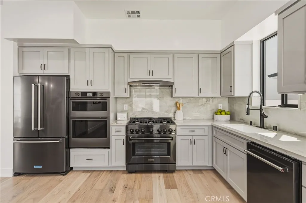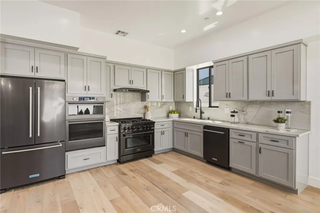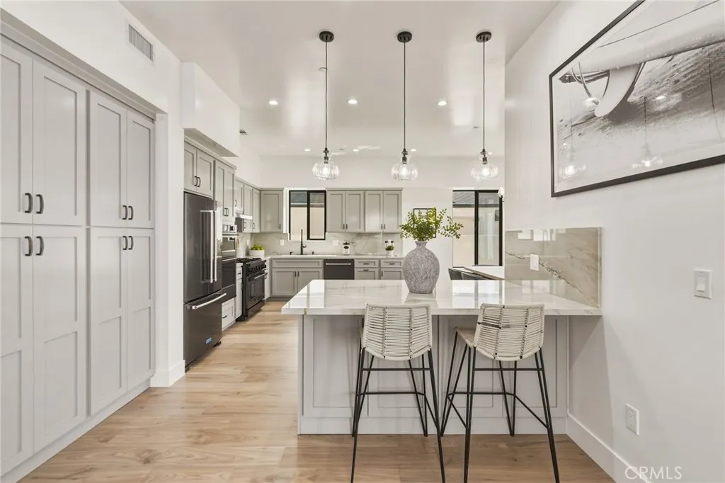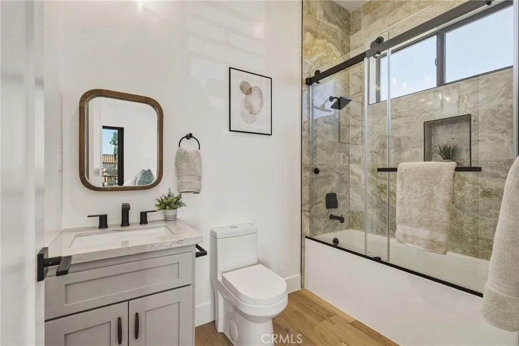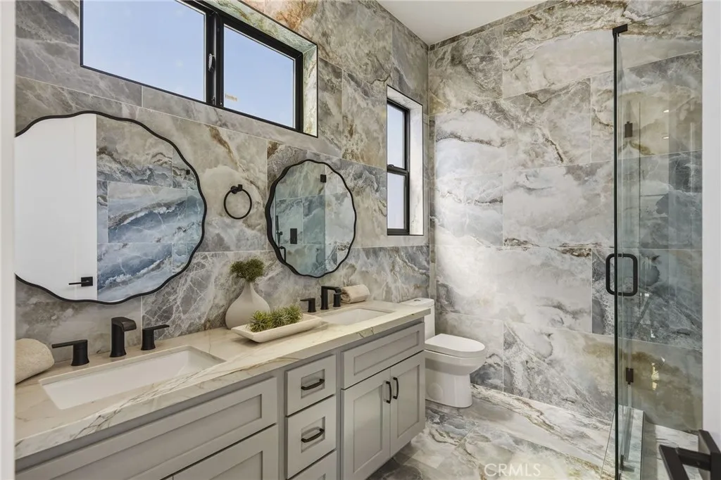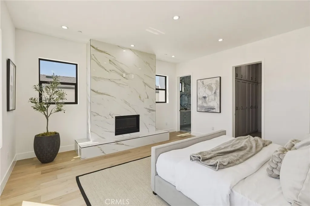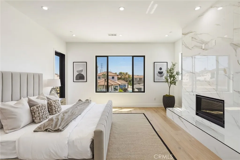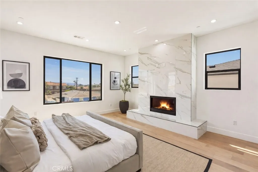 Modern design meets everyday functionality in this brand new SINGLE FAMILY construction home in North Redondo Beach. Offering 4 bedrooms and 4 bathrooms, the thoughtfully designed floor plan features a desirable downstairs bedroom and bath with a walk-in shower—ideal for guests, extended family, or a home office. The main level is designed for both comfort and connection, beginning with a welcoming living room just off the entry. The space flows into an open-concept family room—complete with a fireplace and French doors that open to the spacious backyard—and connects seamlessly to the kitchen and large dining area. The kitchen is beautifully appointed with quartz countertops, sleek appliances, and ample space for gathering and entertaining. Upstairs, the private primary suite offers a spacious retreat with a walk-in closet and a well-appointed bathroom featuring dual sinks, a freestanding soaking tub, and a walk-in shower. Two additional upstairs bedrooms each include their own en-suite bathrooms, and all bedrooms feature private balconies, enhancing the sense of space and creating a true retreat. A large backyard completes the home, offering ample space for outdoor entertaining, play, or future customization—perfectly suited for enjoying the South Bay lifestyle. Additional features include air conditioning throughout, security cameras, and convenient main-level laundry.