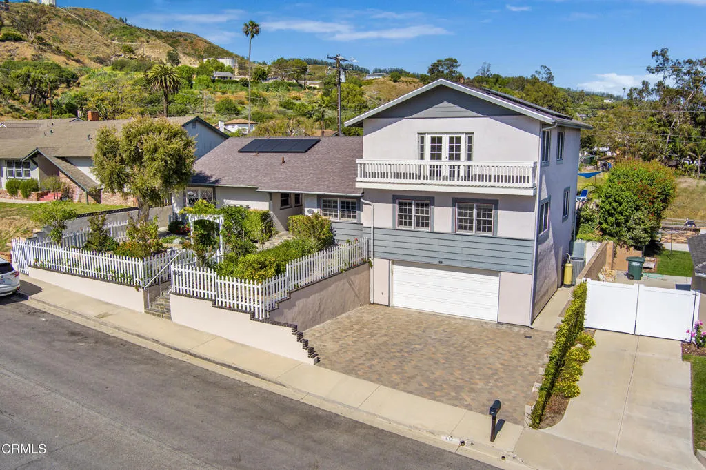 Welcome to 132 Maria Lane in the heart of Camarillo, an exceptional home showcasing beautiful views, a resort-style pool and spa, and elevated living on a quiet cul-de-sac. This thoughtfully upgraded 4-bedroom, 3-bathroom residence offers approximately 3,414 square feet of living space on a generous 9,583 square foot lot, originally built in 1957, and includes a spacious 4-car garage. Beautifully maintained and enhanced throughout, the home features hardwood floors, recessed lighting, a newer 50-year roof, an owned 5.8 kW solar system with battery backup, and an upgraded multi-zone air conditioning system for optimal energy efficiency and year-round comfort. Inside, you’ll find a well-appointed kitchen with premium appliances including a 48′ KitchenAid refrigerator, built-in electric oven, and updated cooktop, along with ceiling fans and enhanced lighting that create a bright and inviting atmosphere. Designed with flexibility in mind, the home offers two primary bedrooms, ideal for multi-generational living or added privacy. One of the primary suites includes a private side entrance and can be sectioned off along with an adjacent room, creating an excellent opportunity for a guest suite, rental income, or granny flat setup. Step outside to your private backyard retreat–perfect for entertaining or unwinding. Enjoy a fully renovated pool and spa with newer equipment, a custom outdoor counter with built in refrigerator, cozy fireplace, and elegant paver hardscape that brings a true resort-style experience to everyday living. The property is equally impressive for those who appreciate outdoor living and sustainability, featuring an abundant collection of mature fruit trees including apple, citrus varieties, nectarine, avocado, and even banana. A protected raised garden bed offers the perfect space to grow your own vegetables or herbs. Additional upgrades such as dual-pane windows, an energy-efficient front door, updated HVAC components, and full-home gutters add to the home’s overall value and functionality. Located in a desirable Camarillo neighborhood, this home offers a rare combination of luxury, comfort, efficiency, and lifestyle, ready for its next owner to enjoy.