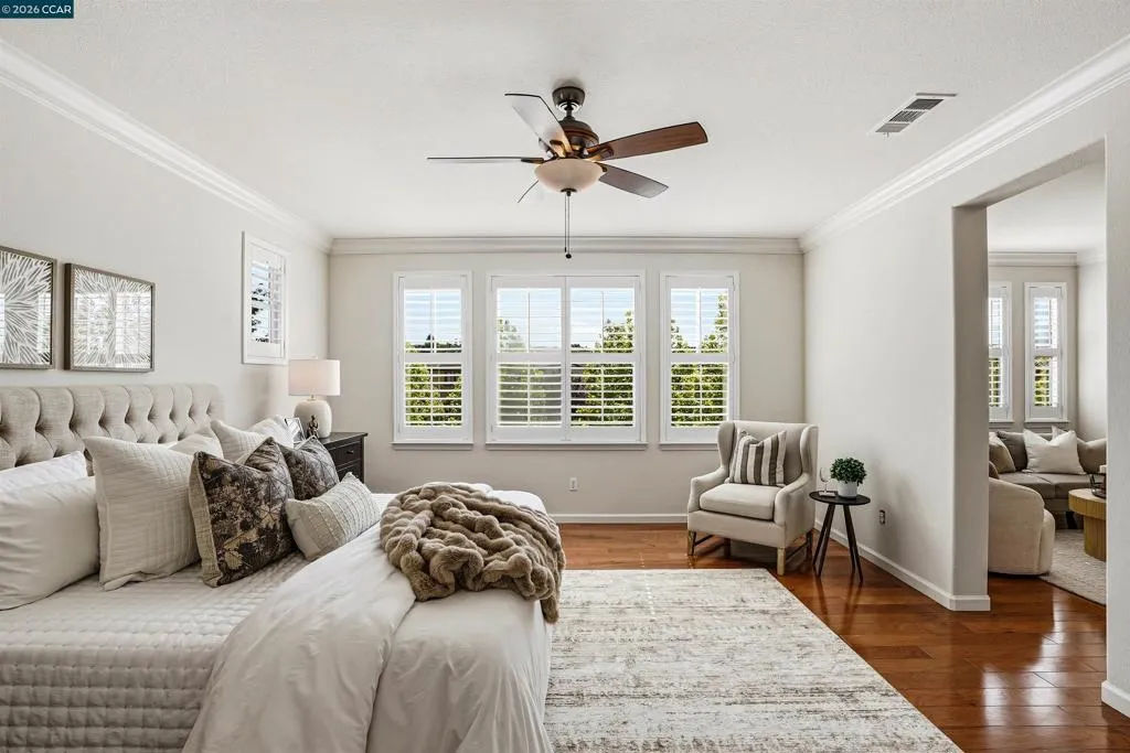 OPEN THIS WEEKEND 4/25 & 4/26 1:30-4:00pm. Discover Lennar’s signature craftsmanship with this sophisticated and highly coveted “Biella Plan 2A” residence, ideally located within the prestigious Monterosso neighborhood. Built in 2007, this Traditional European-inspired home offers 3,113 SqFt of light-filled living space, including four spacious bedrooms, four luxurious bathrooms, formal living and dining rooms, a kitchen, family room, breakfast nook, tech study, open floor plan concept, a large versatile bonus room, a serene primary retreat, and a practical 2-car garage. This thoughtfully designed home also features a highly desirable bedroom and bathroom located on the main level, making it perfect for entertaining family and guests while offering exceptional flexibility, convenience, and comfort. This residence is situated on a private, professionally landscaped 6,787 SqFt premium lot with no rear neighbor, featuring a large stone paver patio with an inviting pergola and a charming courtyard, all within close proximity to top-rated schools, numerous community parks, playgrounds, and scenic trails. This residence truly defines the ultimate California lifestyle. Come home to the lifestyle you’ve always imagined!