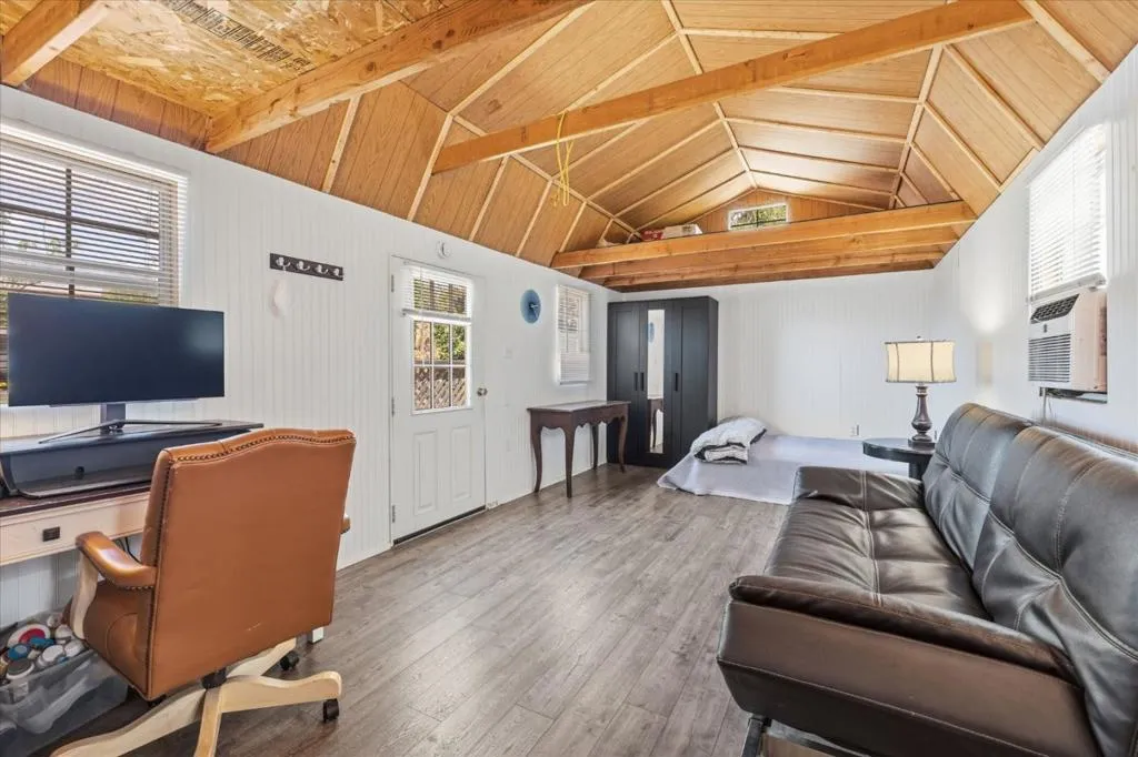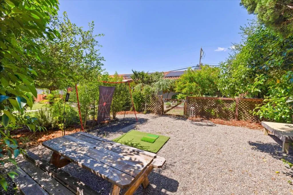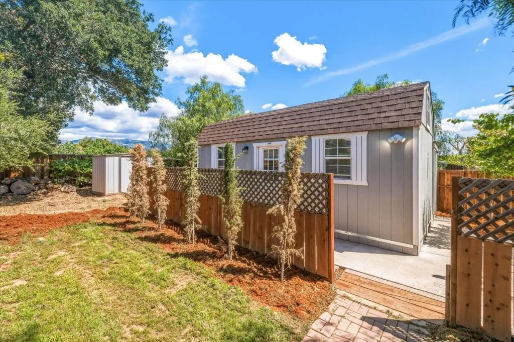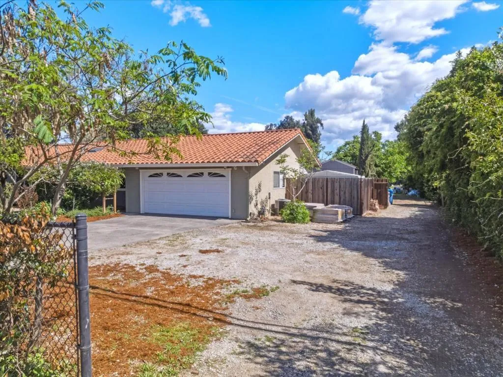 Welcome to your country retreat in the desirable north end of San Martin, just minutes from Morgan Hill. Situated on a flat, usable 40,000+ sf lot, this single-story ranchette blends rural living with modern convenience, offering room to grow. The home features approx. 1,428 sf with 3 bedrooms and 2 bathrooms, plus an expanded bedroom/bath setup beyond the stated square footage, ideal for guests, multigenerational living, or a private office with a backyard entrance. Inside, enjoy an open great room with coffered ceilings, engineered hardwood floors, and an updated kitchen with quartz countertops, stainless steel appliances, and hardwood cabinetry. The peaceful primary suite includes a recently updated shower. Other upgrades include A/C, solar, and water filtration. The property is serviced by a strong private well and offers raised garden beds, a greenhouse, and mature walnut and fruit trees. A detached guest shed with full bath and patio, plus a second finished shed for office/workshop use, add flexibility. Ample parking accommodates RVs, equipment, and oversized vehicles. Zoned for agricultural uses with potential for home business or expansion. Conveniently located near vibrant downtown Morgan Hill and within the sought-after Jackson Academy of Math and Music attendance area.