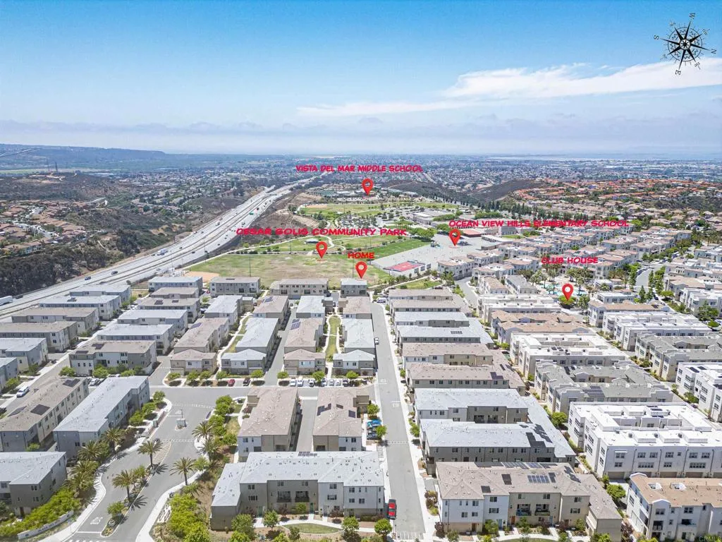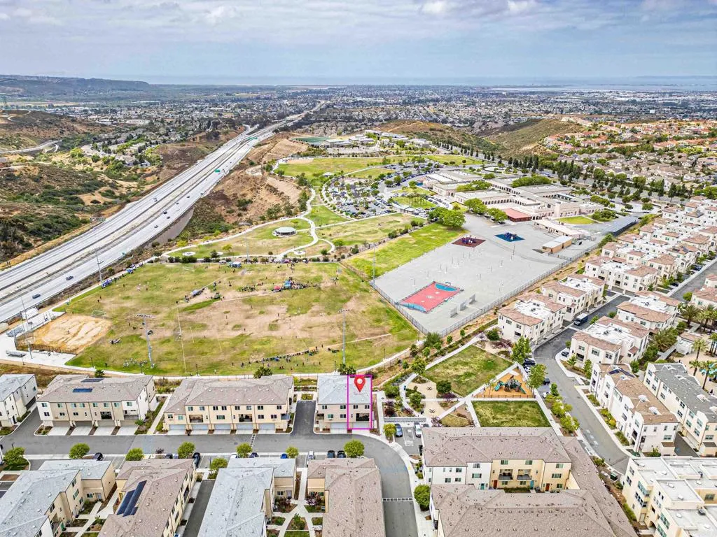 Ocean View! Ocean View! Ocean View! Wake up and wind down every day with stunning ocean views from the living room and every bedroom in this beautifully maintained 4-bedroom, 3.5-bath tri-level corner-unit townhome in the gated community of Playa Del Sol. Perfectly positioned facing the park and school, this home offers open front views with no neighbors directly in front—providing rare privacy and a more open. Spanning approximately 1,875 sq. ft., the layout is designed for both comfort and flexibility. The first floor features a private bedroom and full bathroom—ideal for guests, extended family, or a quiet home office. The main living level showcases a bright, open-concept design where the kitchen, dining, and living areas flow seamlessly together—maximizing natural light and ocean views. The kitchen features a large center island, walk-in pantry, and abundant cabinetry, and opens to a private balcony perfect for relaxing or entertaining. Additional highlights include a newer water softener and a Tesla charger in the attached 2-car garage. Residents of Playa Del Sol enjoy resort-style amenities including a pool, fitness center, clubhouse, playgrounds, and beautifully landscaped grounds—all within a secure gated community. Conveniently located near shopping, dining, major freeways, military bases, and San Diego beaches. If ocean view, privacy, and space are what you want—this is it.