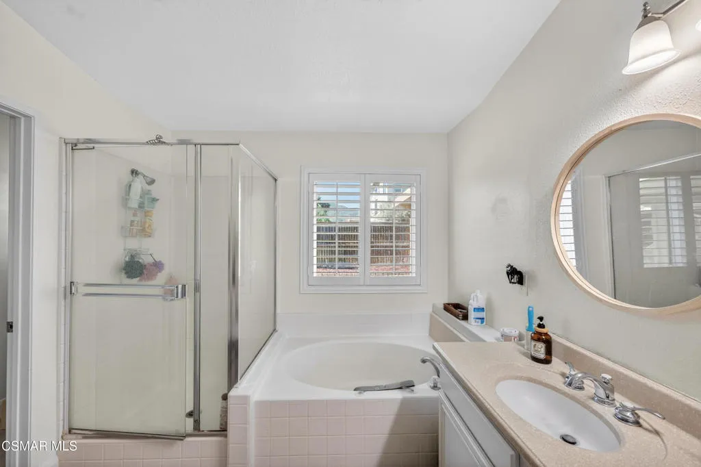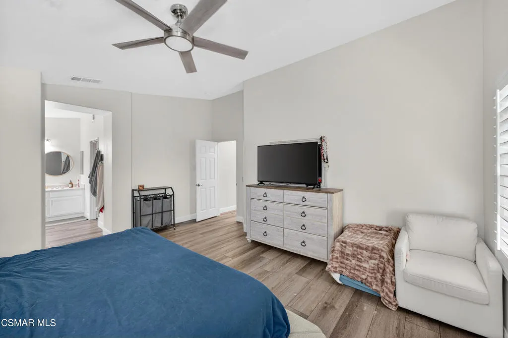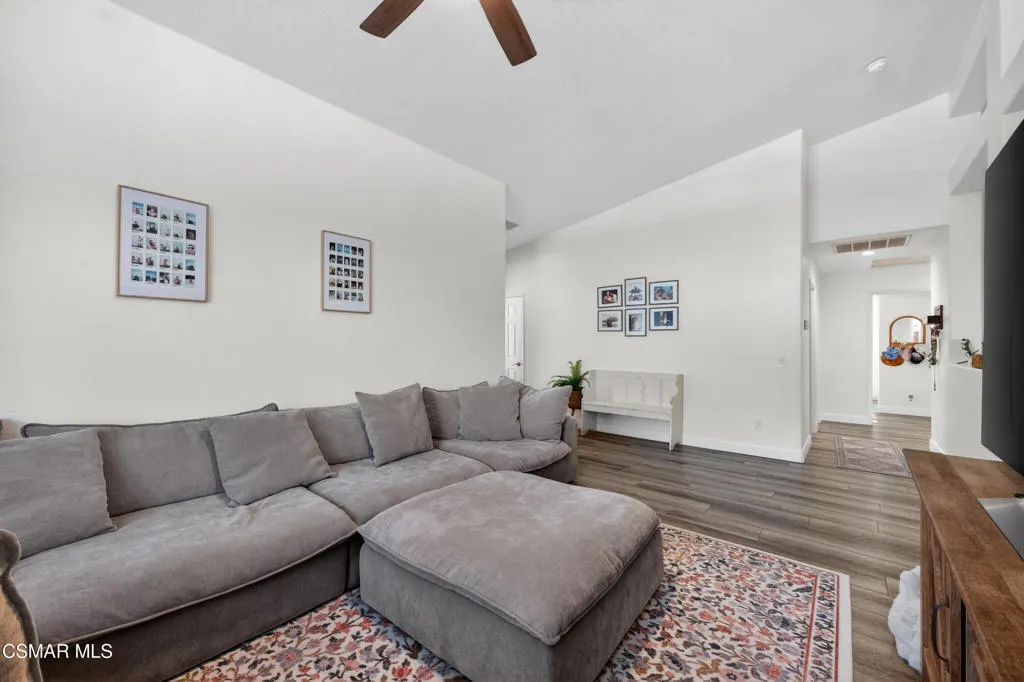 Spacious single story home featuring an open concept layout with vaulted ceilings and abundant natural light throughout. The updated kitchen offers quartz countertops, stainless steel appliances, ample cabinetry, and a large center island that flows seamlessly into the main living and dining areas, ideal for both everyday living and entertaining.The primary suite is generously sized with great natural light, while additional bedrooms offer flexibility for family, guests, or a home office. The home also includes a private mother in law suite, perfect for multigenerational living, extended guests, or added privacy. Thoughtful upgrades include newer flooring, neutral finishes, and a functional floor plan designed for comfort and ease.Step outside to a private backyard complete with a covered patio, expansive lawn, and plenty of space for outdoor dining, play, or future customization. Situated on a quiet street with a well maintained front yard and ample parking.A well balanced home that offers both comfort and functionality in a desirable setting.