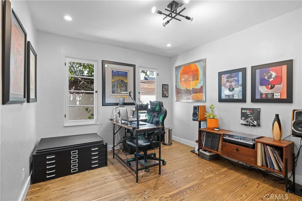 A Refined Spanish-style Retreat in Toluca Woods, this residence pairs Timeless Architecture with a Luxurious Modern Sensibility. A Red Tile Roof, Arched Wood Entry Door and intimate Front Porch set the tone, while inside, the Living Room’s Original Fireplace and Vintage Sconces anchor the home’s character. The Redesigned Kitchen is both Beautiful and Functional, Featuring a Central Island, Thermador Range, Wine Refrigerator, Quartz Surfaces, and Custom Cabinetry and Tile. A Separate Dining Area enhances both everyday Living and Entertaining. The Spacious Primary Suite offers a Serene Escape with a Private Bath, Two Separate Closets, and French Doors opening to the Charming Rear Patio. Secondary Bedrooms are understated and feature Neutral Finishes. Hardwood floors, Arched Passageways, and Warm Wood detailing Unify the Interior. Outdoors, a Saltillo-tiled Patio and Soft String Lighting create a Romantic, Resort-like setting for Al Fresco Dining, while the Jacuzzi with Cascading Waterfall provides the Ultimate Relaxation. Adding Exceptional Versatility, the Garage has been Converted to a Guest Unit and includes its own ¾ Bath and Kitchenette—Ideal for Guests, Office, or a Private Studio. The Driveway can accommodate 3 cars. Walk to the Highly Rated Toluca Elementary School. Conveniently located to the Studios, Major Freeways, Shops and Cafes. The Main House is 3 Bedrooms, 2 Bathrooms. The Guest Unit includes a 3/4 Bath.