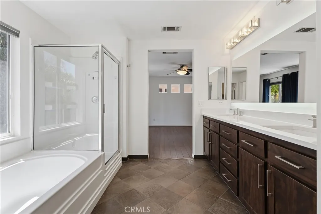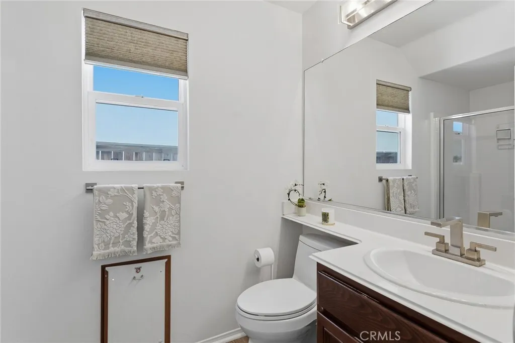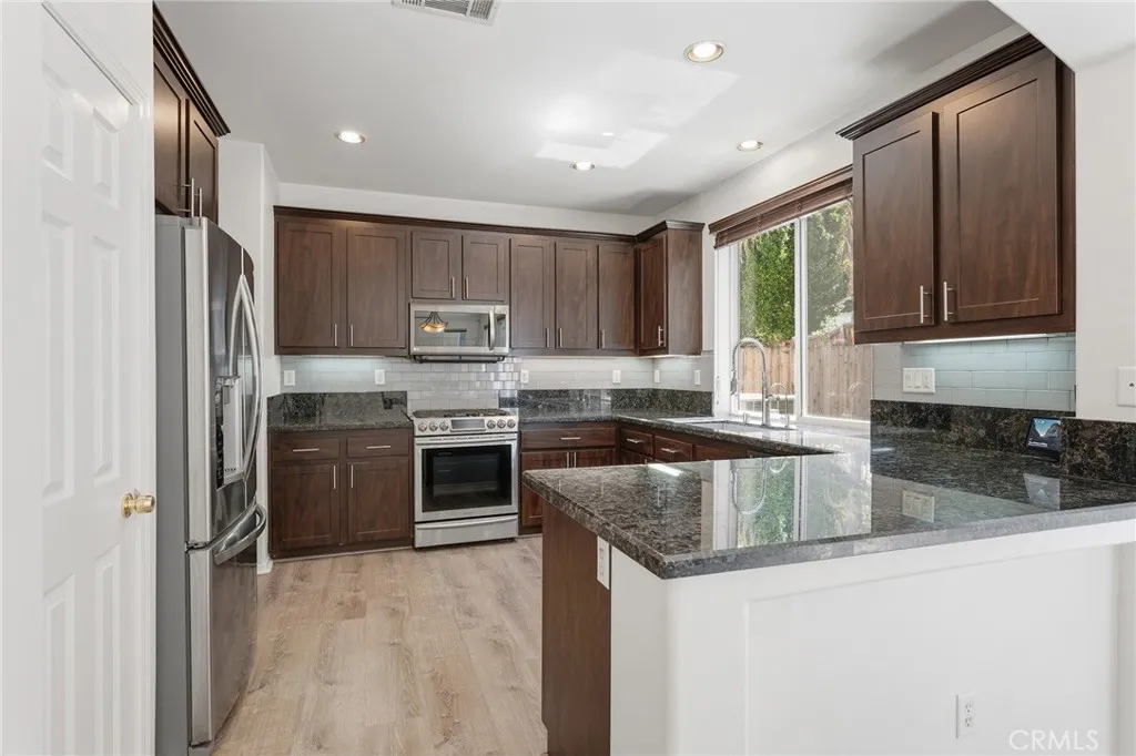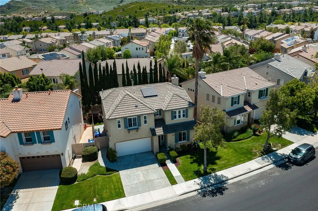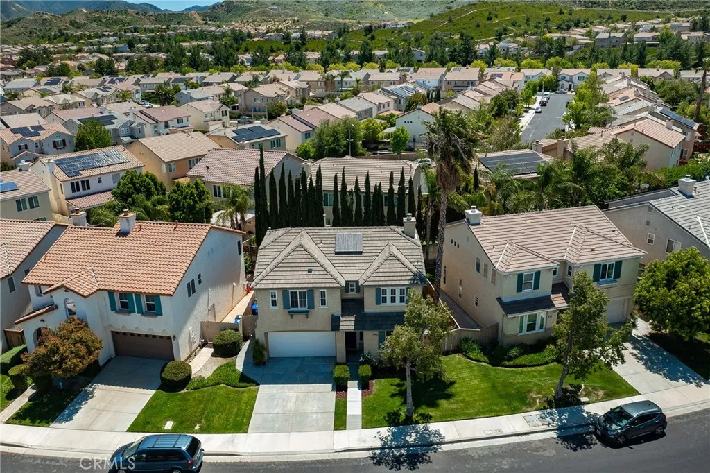 Upstairs, the spacious primary suite offers a peaceful retreat with a remodeled bathroom showcasing updated cabinetry, Granite countertops, and luxury fixtures. You also have two more bedrooms, laundryroom and a spacious loft. Off of the Great room is the backyard ideal for relaxing or entertaining complete with astro turf and patio. Newer air conditioner, Newer water heater, Wifi sprinkler controls, Phillips Hue interior Lighting, upgraded ceiling fans, and Wifi Thermostat, are just some of the amazing upgrades done to this move in ready home. Did I mention OWNED SOLAR!!! Located in a desirable community with HOA amenities including a pool, spa, clubhouse, and park, and just minutes from Costco, Trader Joes, Sprouts, dining, and freeway access for an easy commute. This is Santa Clarita living at its finest. This Beautiful home is a Must See!
