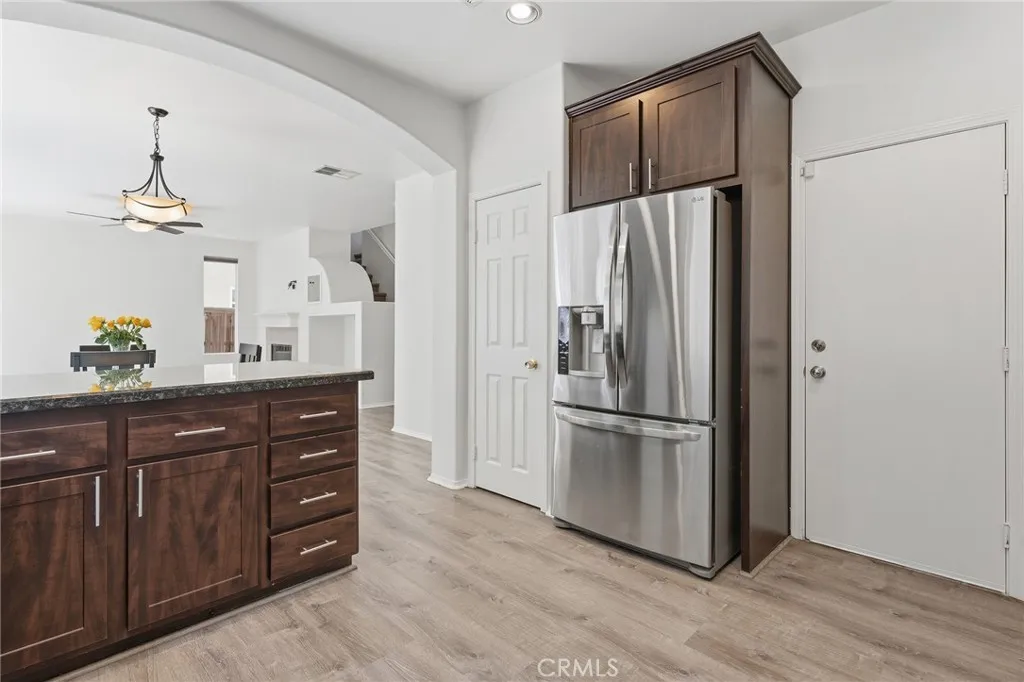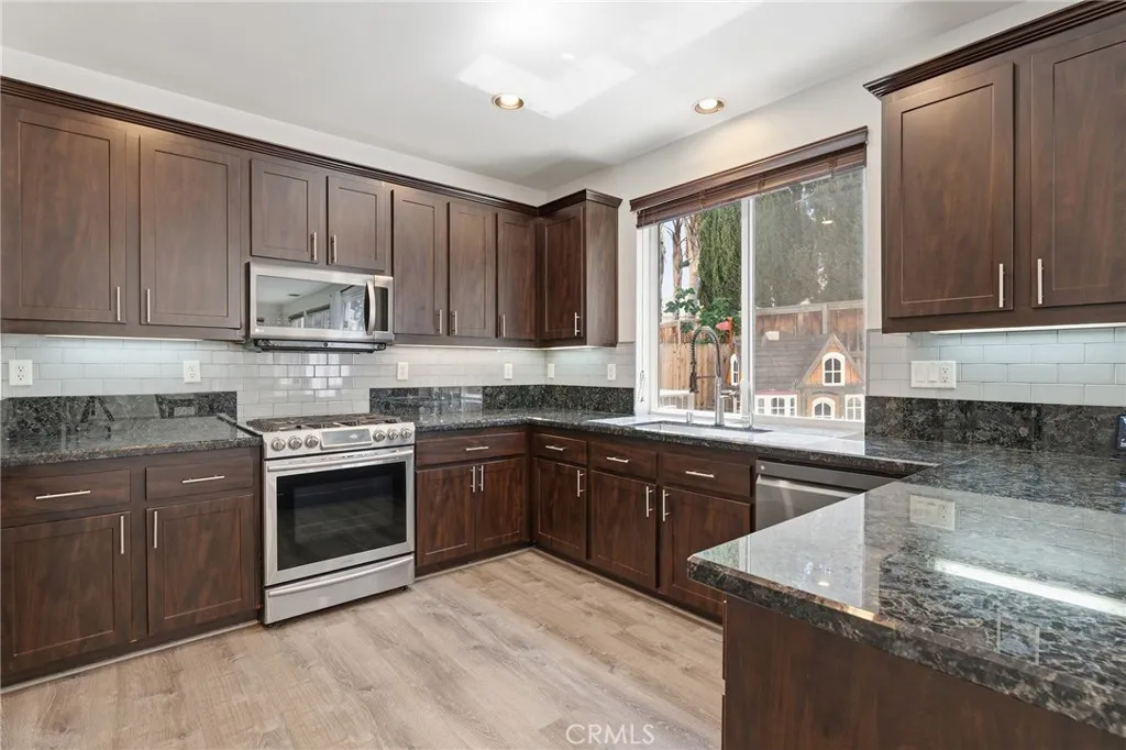 Step into this stunning 4-bedroom, 3-bath with a loft home, beautifully upgraded and thoughtfully designed for modern living. The main floor features a convenient bedroom and full bathroom, perfect for guests or multi-generational living. The remodeled kitchen shines with newer cabinetry, granite countertops, recessed lighting, and stainless steel appliances, opening seamlessly to the dining area and connected family room with cozy fireplace.