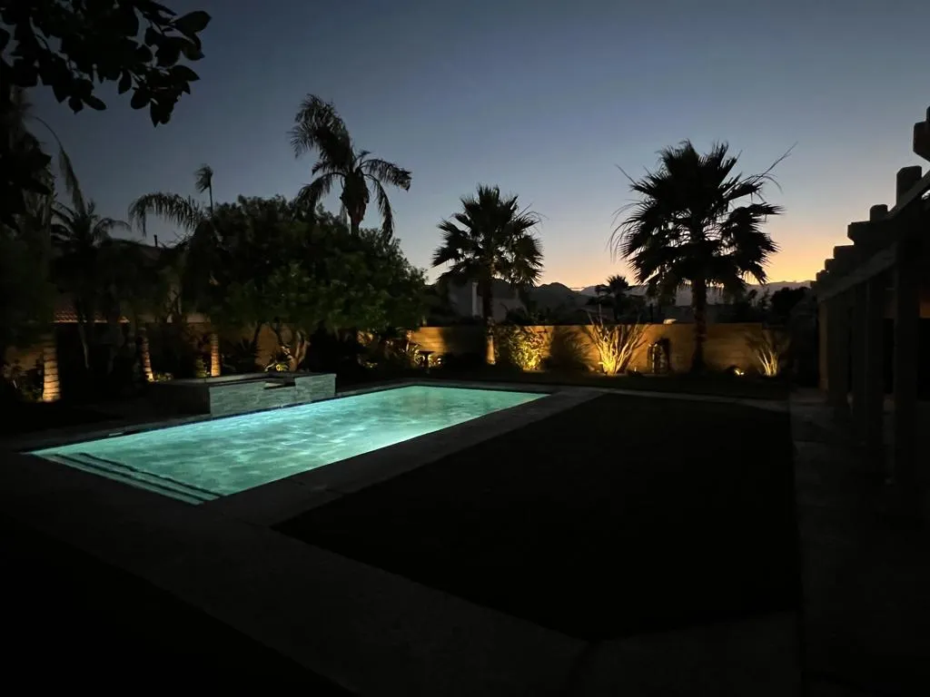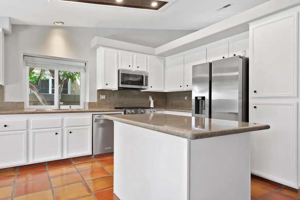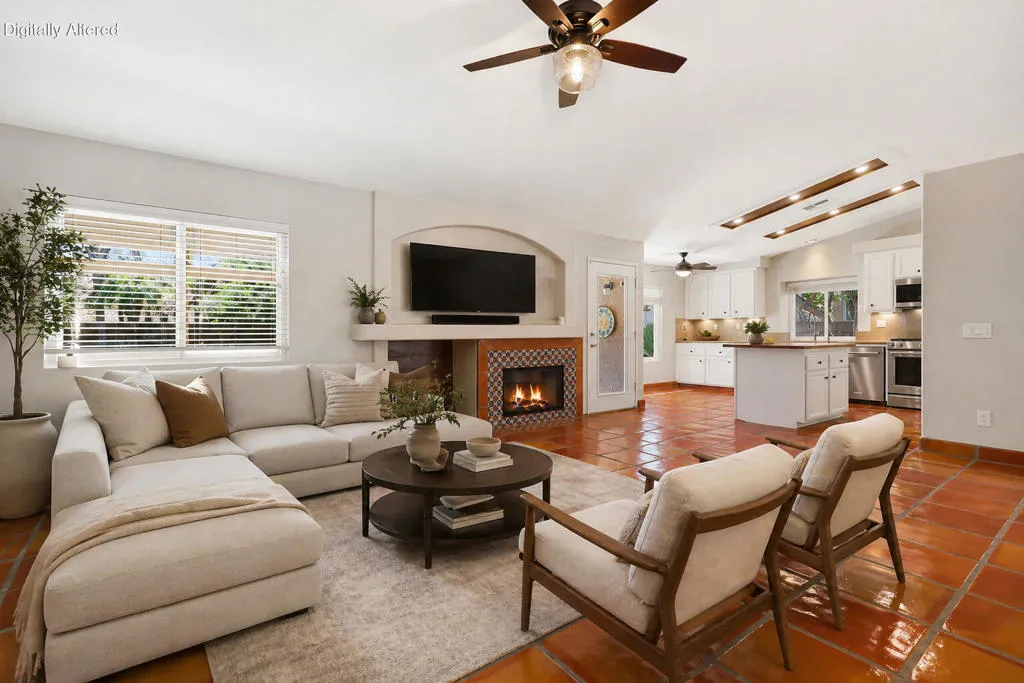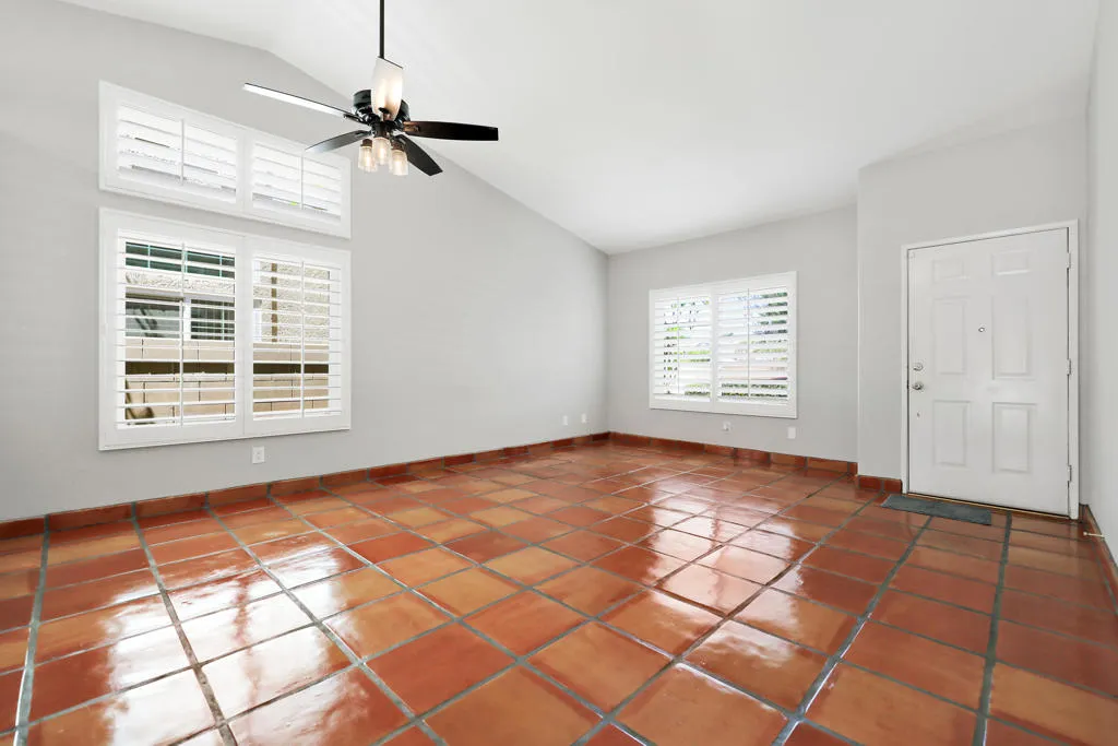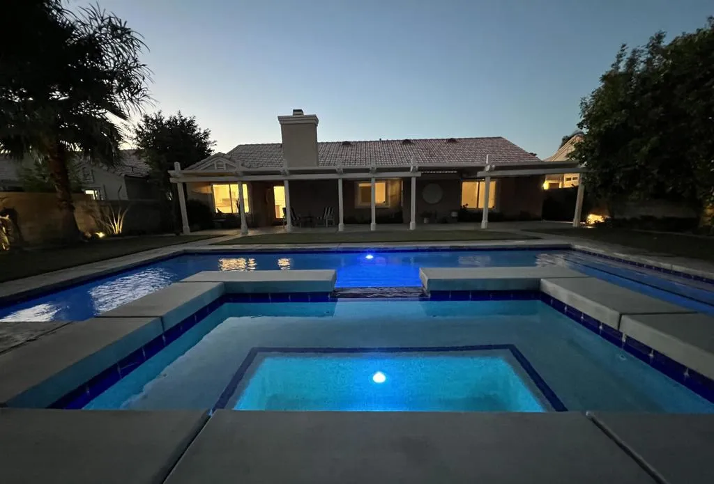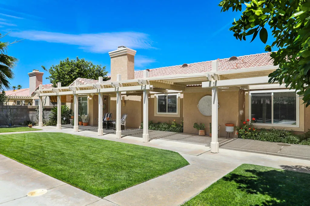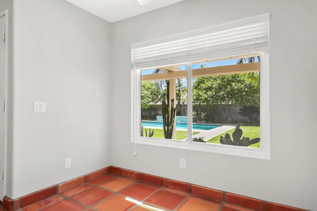 Highly sought-after gorgeous home in the Topaz neighborhood conveniently located within walking distance to prestigious International Baccalaureate (IB) schools: Amelia Earhart Elementary, John Glenn Middle School and La Quinta High School. Designed for entertaining and everyday enjoyment, the recently upgraded PebbleTech saltwater pool and spa is the centerpiece of a beautiful back yard oasis. Updated pool pump, filter, heater, LED lighting, and pool chiller. Enjoy the dramatic mountain views and the lush landscaping and mature fruit trees in the expansive yard. This house was remodeled with Saltillo tile flooring throughout. Both bathrooms were totally renovated with walk-in shower, deep soaking tub, and spectacular tile and counter work. All windows were replaced, new shutters / blinds, upgraded 200A electrical panel, new attic fan, EV Charger. The living and dining room leads into an expansive family room with cathedral ceilings and lots of natural light. The upgraded kitchen area is complete with new appliances, center island and convenient breakfast nook, as well as granite counter tops. Wonderful neighborhood with no HOA dues. Perfect for a family, as a vacation home, or an investment / rental opportunity. This home sells itself.