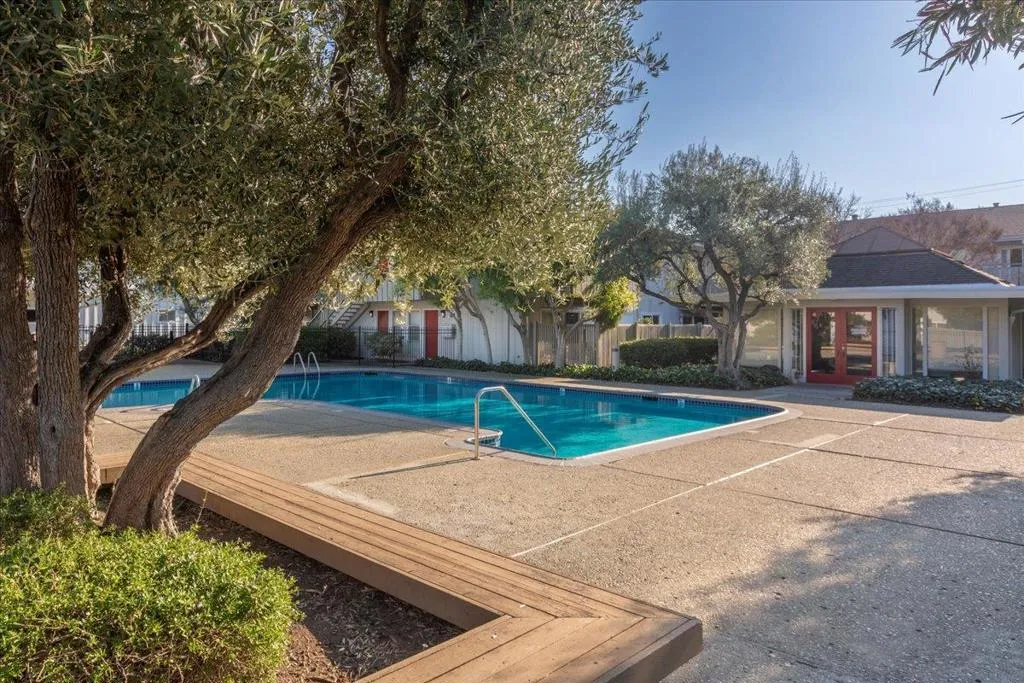 Tastefully remodeled first floor condo end unit in desirable Parkview West Condo complex with a peaceful view of the lush common area. New kitchen with ample Shaker style cabinets, quartz counters and stainless appliances. A separate dining area that overlook the mature landscaping and parklike setting. A large living room with recessed lighting, laminate wood floors and sliding glass doors to an expansive covered patio that overlook the common area. Generous size primary bedroom suite with a wall of closet space, shower stall and vanity. Spacious guest bedroom. Well appointed floorplan with laminate floors throughout and wonderful natural lighting. Well maintained complex complete with swimming pool and convenient to Rengstorff Park with a community center, tennis and pickleball courts. Additional large, private storage closet next to an assigned covered parking space. Prime location to shopping, schools, parks, freeway and expressway access. A truly well cared for home.