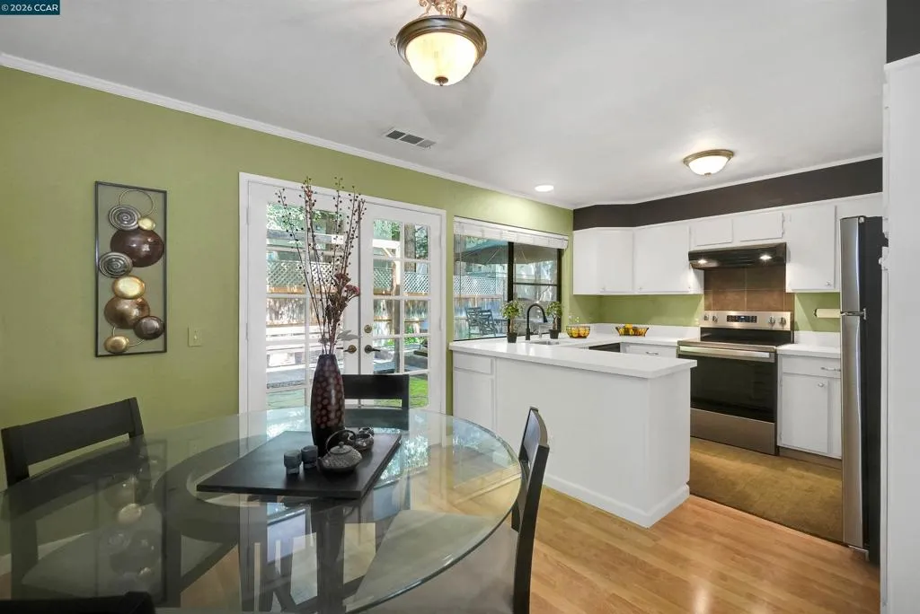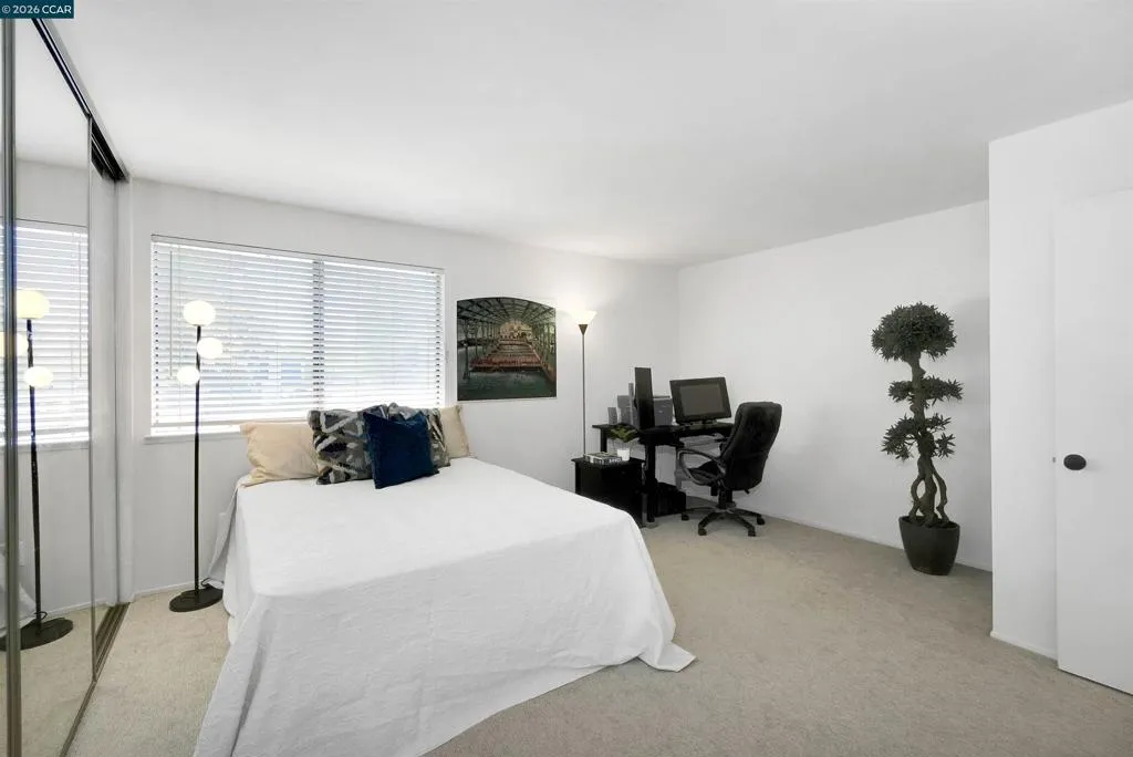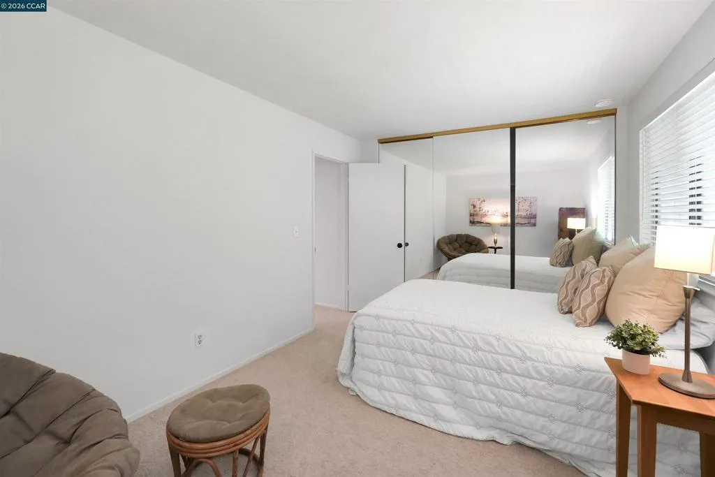 Welcome to this beautifully updated 2-bedroom, 1.5-bath townhouse offering 1,188 square feet of comfortable living in a prime Walnut Creek location. With no neighbors above or below, this home lives like a single-family residence at a more accessible price point. The light-filled interior features a recently refreshed kitchen with quartz countertops, refrigerator, and oven. Fresh interior paint, carpet, and updated closet doors in the spacious primary bedroom add to the move-in ready appeal. The functional floor plan includes an upstairs laundry area for added convenience. One of the standout features is the expansive, beautifully landscaped backyard, one of the largest in the community, complete with fencing and a private entrance gate, wonderful for relaxing, entertaining, or enjoying outdoor living. The exterior has been upgraded in April 2026 with fiber cement siding by James Hardie, offering enhanced durability along with resistance to fire, moisture, and pests. Additional highlights include one assigned carport space, one additional uncovered parking space, and ample guest parking. Residents also enjoy access to the community swimming pool. Ideally located near top-rated Walnut Creek schools, popular restaurants, coffee shops, the Bay Club, Iron Horse Trail, and Canal Trail. Commuters will appreciate easy access to Highways 24 and 680, along with a BART station only a block and a half away, commuters can enjoy getting around without needing a car. This is a rare opportunity to own a well-appointed home that offers space, seclusion, and an unbeatable location. Take a tour https://my.matterport.com/show/?m=jM4u4bViQhq