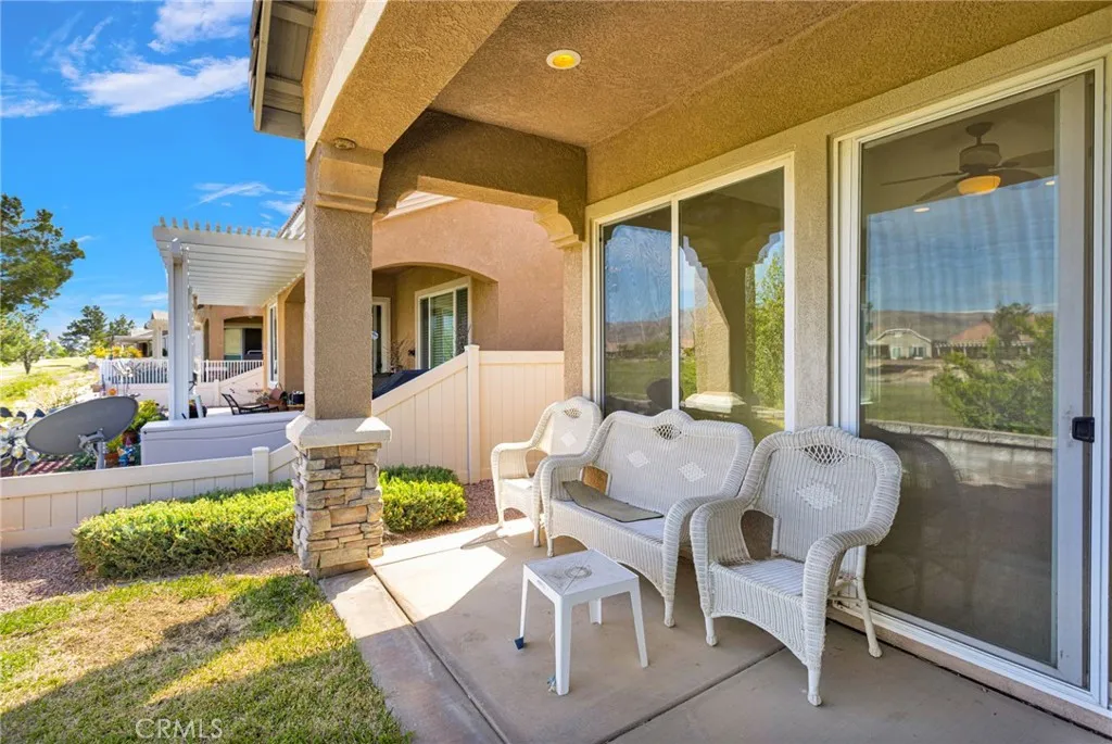 Set along the golf course in Solera at Del Webb, this 2 bedroom, 2 bath home offers easy living with peaceful greenbelt views right from your backyard. The layout is open and functional with great natural light, a spacious living area, and a kitchen that flows comfortably into the main living space. The primary suite includes a walk-in closet and private bath, while indoor laundry adds everyday convenience. Step outside to a covered patio overlooking the golf green—perfect for morning coffee or unwinding at the end of the day. With low-maintenance living in a gated 55+ community known for its resort-style amenities, this home is all about comfort, simplicity, and enjoying the lifestyle.