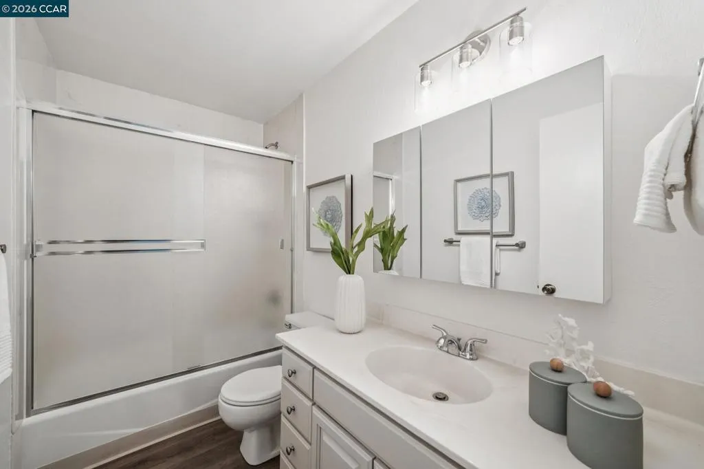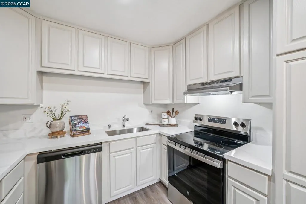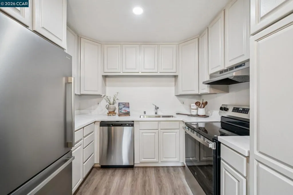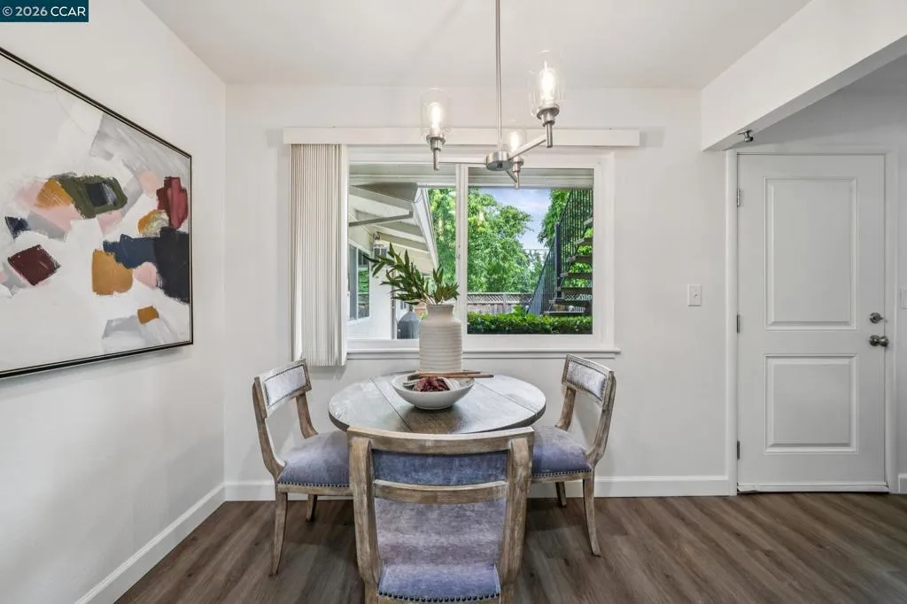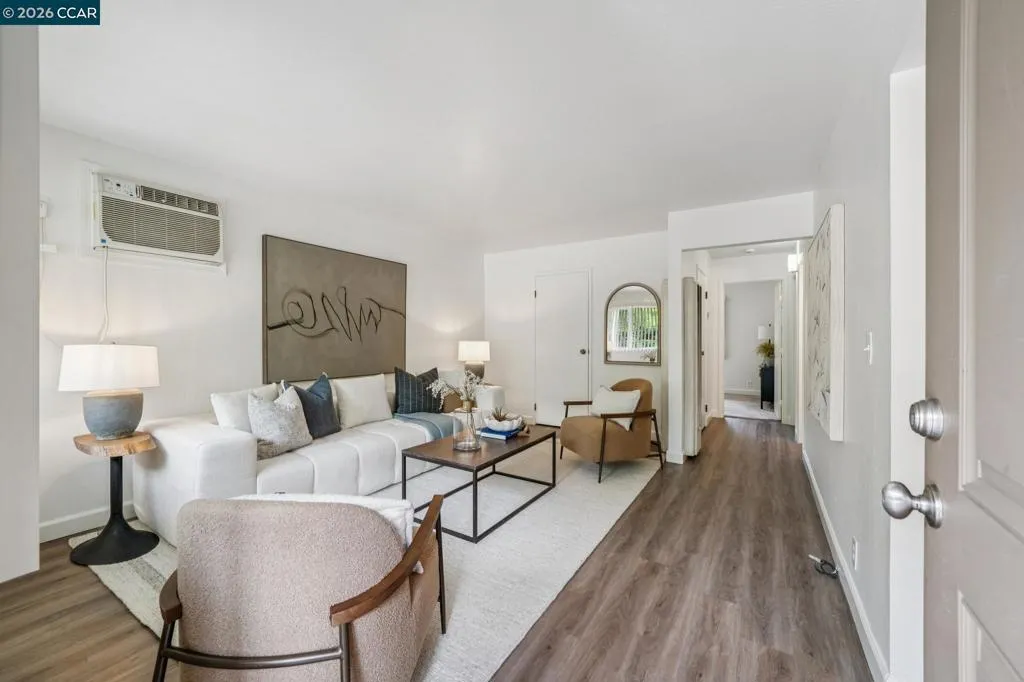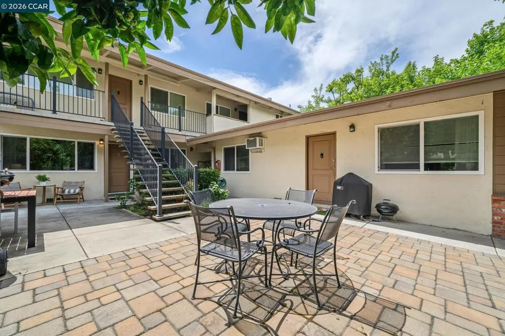 Remarkable opportunity to own a 4-Plex near downtown Walnut Creek. Situated in Larkey Park and close to freeway, BART, parks, community pool & more. Pertains to desirable schools including College Park High. 3 units are currently being rented. Unit B has been tastefully updated with quartz counters, stainless steel appliances, interior freshly painted. Two spacious bedrooms and comfortable living area. Center courtyard for gathering, BBQ’ing, gardening or just relaxing. Total 10 parking spots. Shared laundry upstairs. Open Tues 10:30-1, Sun 2-4.
