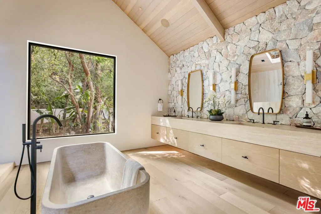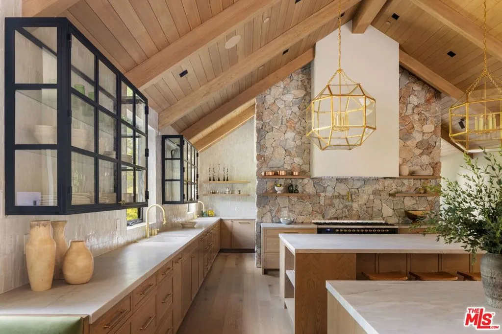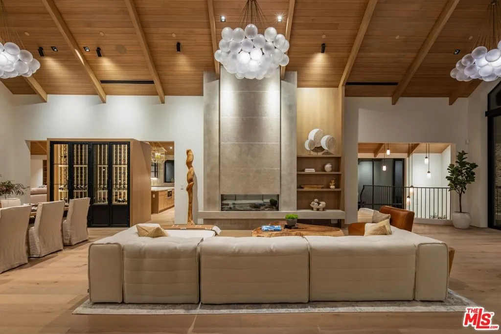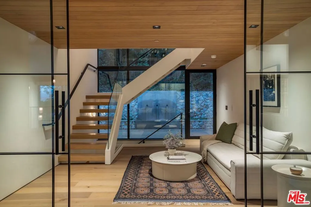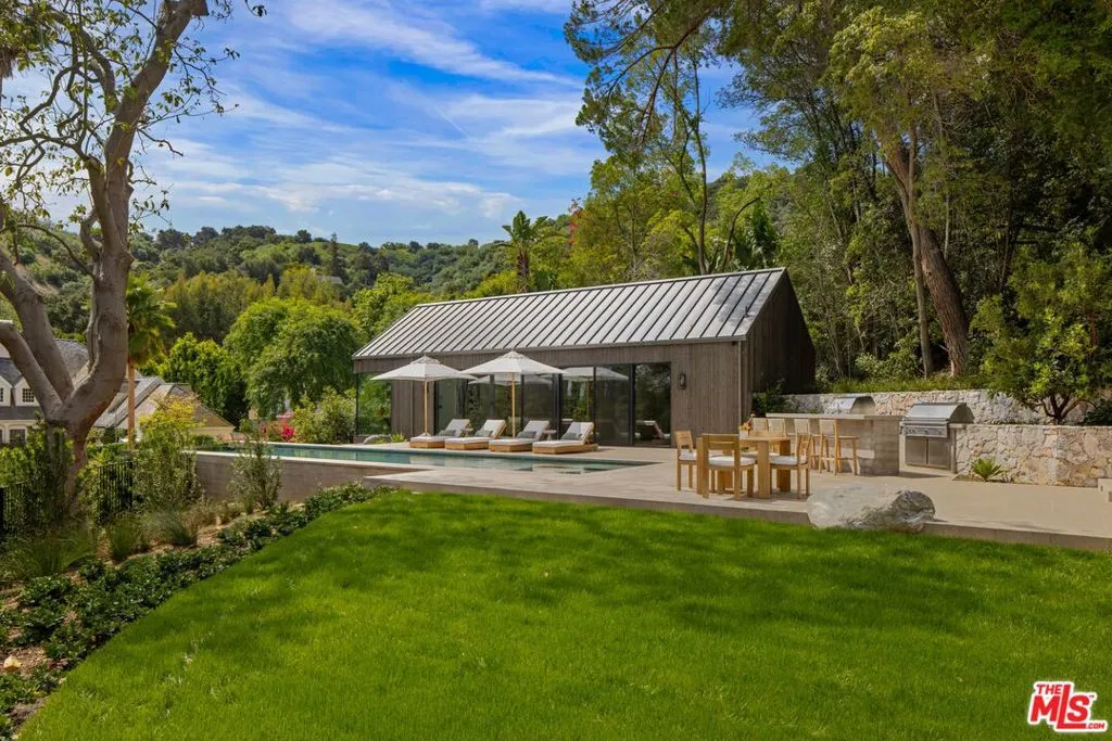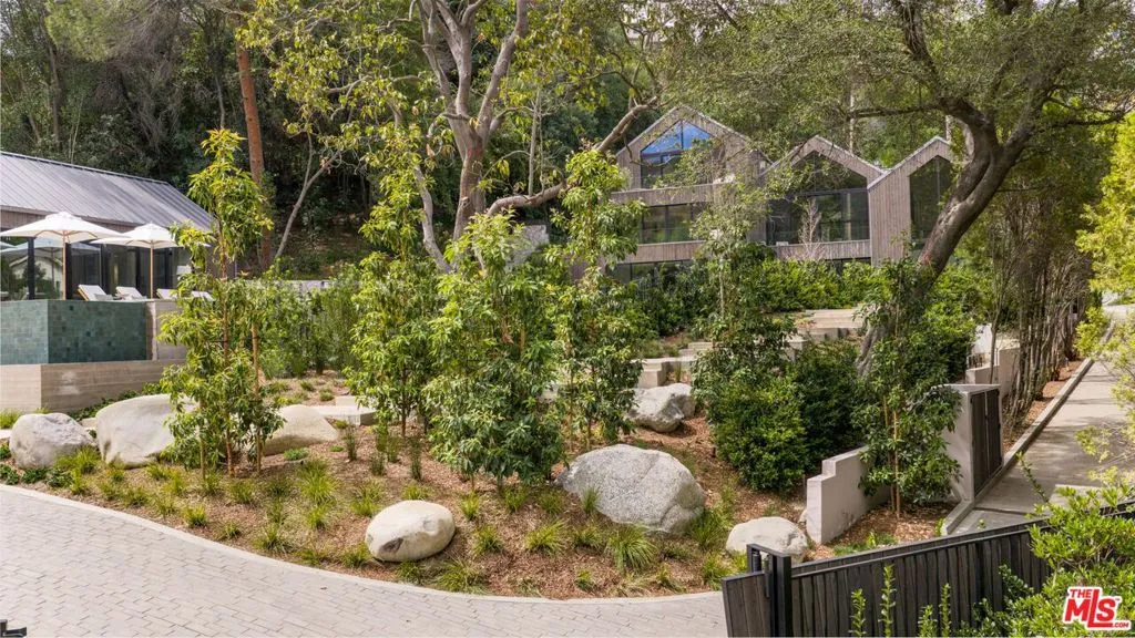 A once-in-a-generation California modern architectural compound spanning over a lushly landscaped acre where scale, design and privacy converge to achieve an extraordinary level of luxury & sophistication in a peaceful setting in the Studio City foothills. Conceived by Koffka/Phakos Design as a series of interconnected pavilions, the newly remodeled and expanded 9800+ SF main residence is defined by its soaring volumes, natural materials and an unwavering commitment to craftsmanship. Hemlock-clad vaulted ceilings, imported stone, designer tile, sculptural light fixtures and walls of glass create a dialogue between structure and setting, blurring the line between indoors and out at every turn. The main living spaces unfold with dramatic yet restrained elegance, conveying a sense of quiet sophistication, anchored by a showcase kitchen of exceptional scale featuring bespoke cabinetry, statement stone surfaces, top-of-the-line appliances and seamless access to multiple entertaining terraces supported by a fully appointed service kitchen. The primary suite is a sanctuary unto itself, positioned to capture treetop vistas and natural light, with a spa level bathroom clad in imported stone and anchored by a hand carved solid travertine soaking tub. Five en suite secondary bedrooms and the living areas throughout echo the same level of material integrity and architectural clarity. The lower-level lounge provides a dedicated environment for large-scale entertaining centered around a generous sunken conversation area featuring a 120-inch flat screen, seven-seat bar, dual powder rooms and a catering kitchen.A newly constructed detached guest house with kitchen, laundry, two bathrooms, sauna & steam shower provides flexibility for rejuvenation, fitness, or extended stays completing a compound that functions as both a private estate and a fully realized lifestyle environment.Fleetwood doors disappear to reveal a true resort environment outside where pool, spa, lounge areas and outdoor dining spaces are woven into the landscape with intention and ease. The grounds themselves are a defining feature expansive, layered, and remarkably private offering a sense of retreat seldom found within city limits. Mature landscaping, fire feature, terraced gardens, an outdoor kitchen with pizza oven, barbecue & bar plus a yoga platform tucked beneath a canopy of trees all create a series of distinct outdoor venues equally suited for grand entertaining and quiet, contemplative moments.Balancing form and function, the property integrates security, fire sprinkler & Crestron smart home systems throughout. Exterior construction features fire-rated DensGlass sheathing, Sho Sugi Ban siding from Nakamoto Forestry and a standing seam steel roof materials thoughtfully selected to enhance resiliency while preserving the home’s architectural vision. As demand intensifies for compounds of this scale, design pedigree, and privacy in the Valley just moments from the studios & Ventura Boulevard with seamless access to the Westside this premier estate stands among the area’s most significant offerings, where design, setting, and privacy align with the expectations of today’s most discerning buyers.