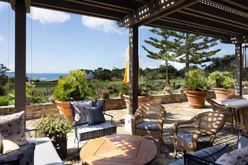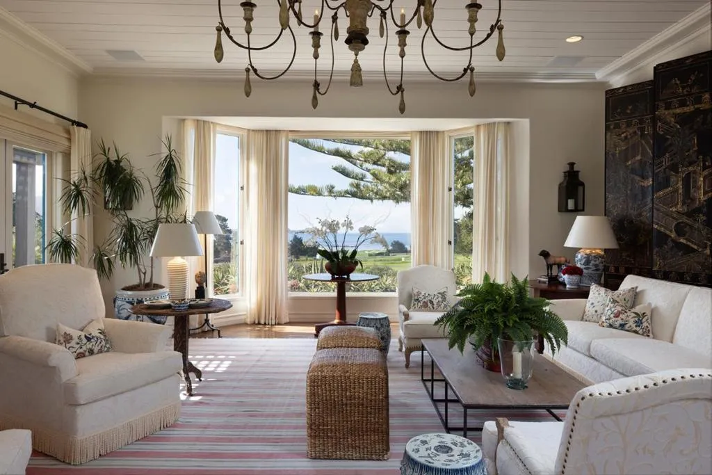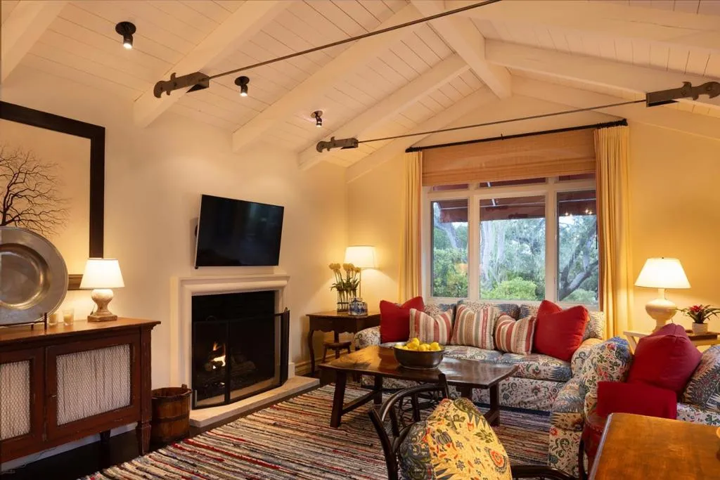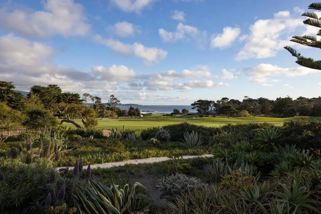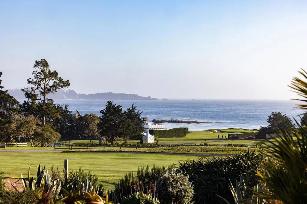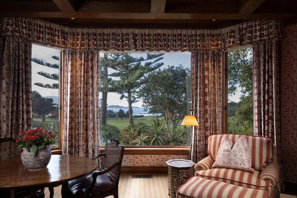 Set on the iconic 2nd fairway of Pebble Beach Golf Links, this timeless, private, 2.35-acre gated estate enjoys sweeping golf course and ocean views and all the amenities of The Lodge and resort just steps away. The 4 bedroom, 4.5-bath main residence spans 4,932 SqFt, featuring views from most rooms, elegant interiors, wood floors, a grand stone fireplace, coffered ceilings, a sunlit garden room, and a chef’s kitchen with Wolf appliances, butcher block island, and a breakfast nook beside a cozy fireplace. The luxurious primary suite features dual baths, walk-in closets, and a soaking tub. A stunning Carmel stone patio with breathtaking views is complete with a pergola and electric shades, while a serene interior courtyard offers Spanish tile, brickwork, and an outdoor fireplace. The beautifully manicured grounds include expansive parking, charming shell paths, and mature landscaping with distinctive monkey puzzle trees. A picturesque bridge over a seasonal stream leads to a private detached ADU with a kitchen, living room, vaulted wood ceilings, and a fireplace, along with two guest bedrooms and a shared bath across a courtyard. This is a truly special property, offering both seclusion and proximity to Pebble Beach’s finest golf, dining, and lifestyle amenities.
