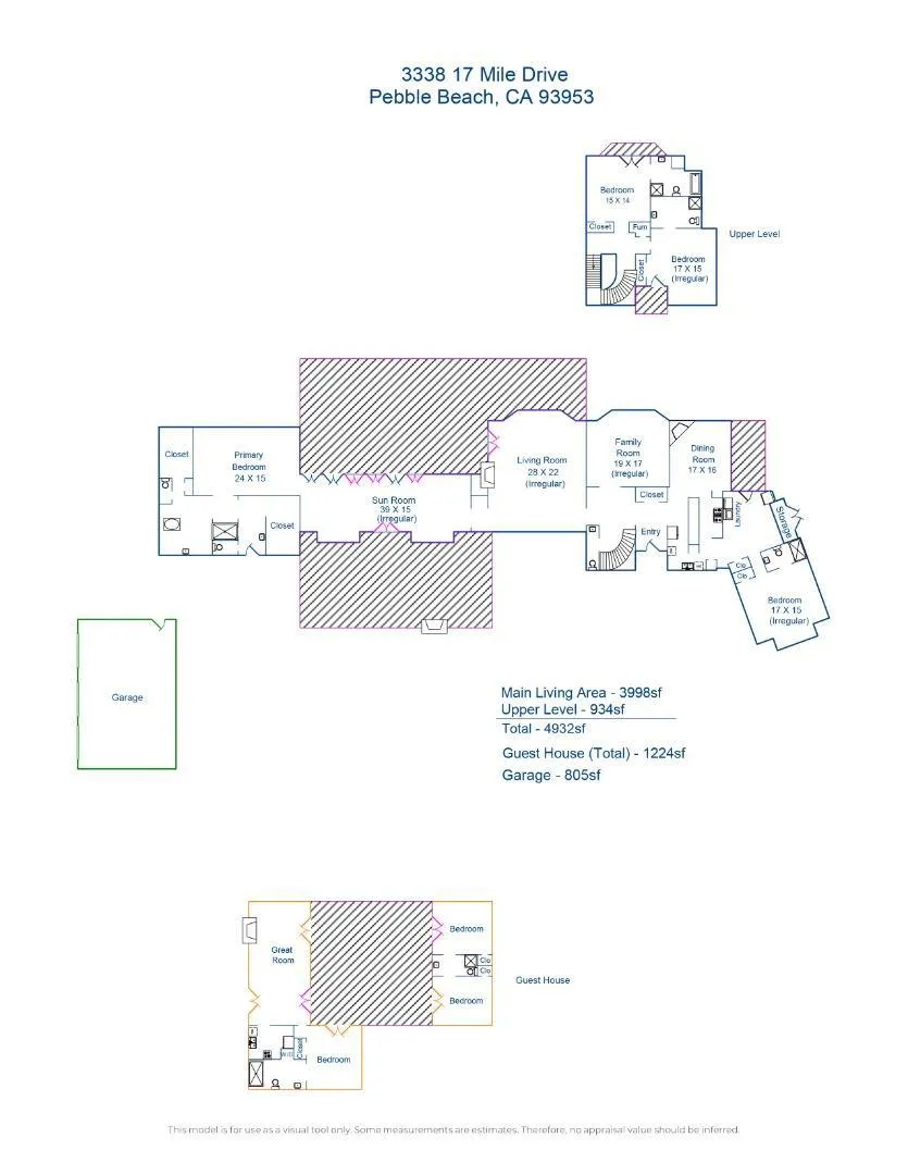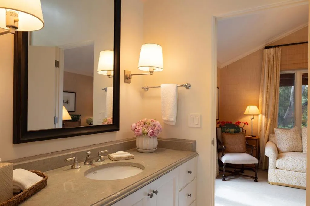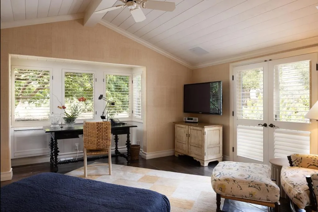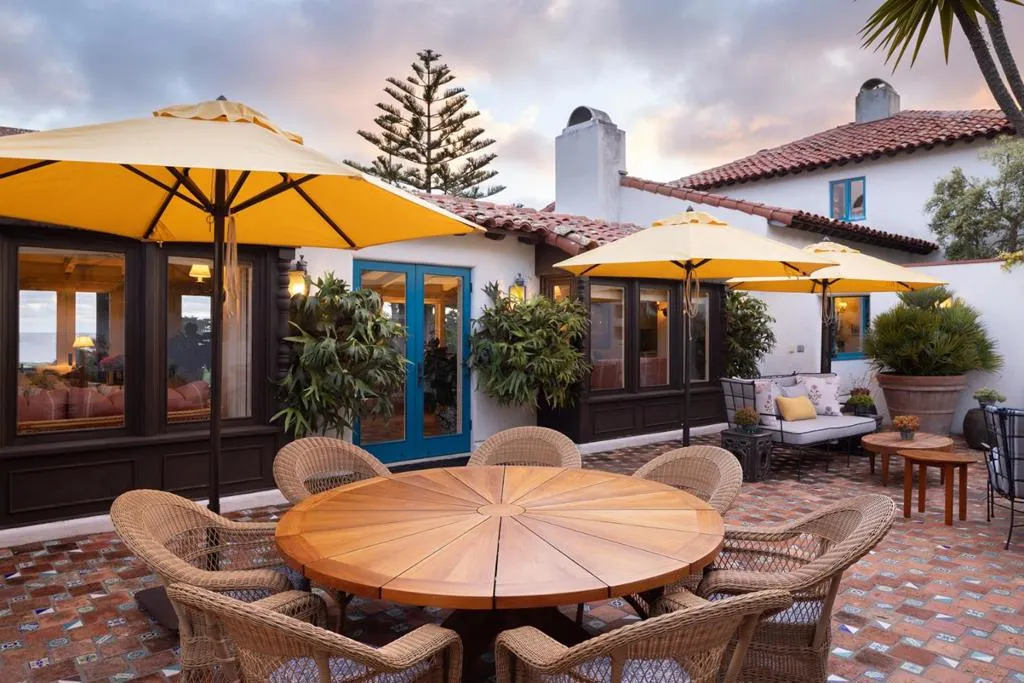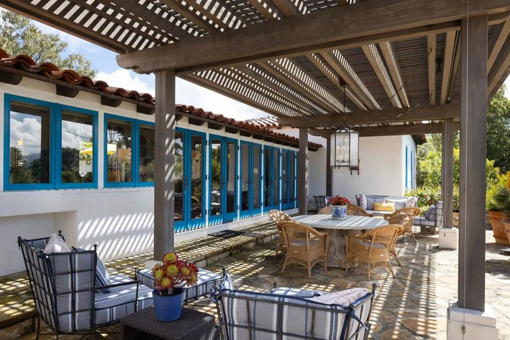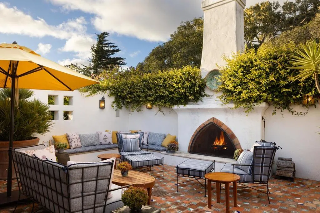 Set on the iconic 2nd fairway of Pebble Beach Golf Links, this timeless, private, 2.35-acre gated estate enjoys sweeping golf course and ocean views and all the amenities of The Lodge and resort just steps away. The 4 bedroom, 4.5-bath main residence spans 4,932 SqFt, featuring views from most rooms, elegant interiors, wood floors, a grand stone fireplace, coffered ceilings, a sunlit garden room, and a chef’s kitchen with Wolf appliances, butcher block island, and a breakfast nook beside a cozy fireplace. The luxurious primary suite features dual baths, walk-in closets, and a soaking tub. A stunning Carmel stone patio with breathtaking views is complete with a pergola and electric shades, while a serene interior courtyard offers Spanish tile, brickwork, and an outdoor fireplace. The beautifully manicured grounds include expansive parking, charming shell paths, and mature landscaping with distinctive monkey puzzle trees. A picturesque bridge over a seasonal stream leads to a private detached ADU with a kitchen, living room, vaulted wood ceilings, and a fireplace, along with two guest bedrooms and a shared bath across a courtyard. This is a truly special property, offering both seclusion and proximity to Pebble Beach’s finest golf, dining, and lifestyle amenities.