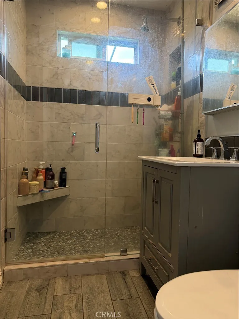 Inside, you’ll find a spacious living area with a cozy fireplace, perfect for relaxing or entertaining. The kitchen features granite countertops and stainless steel appliances, providing a modern touch. The primary suite includes its own step-in shower, offering added convenience.