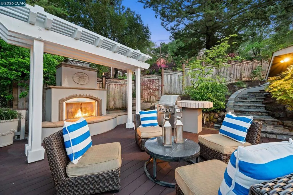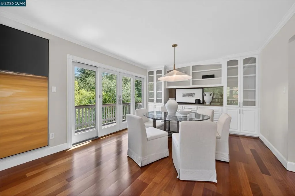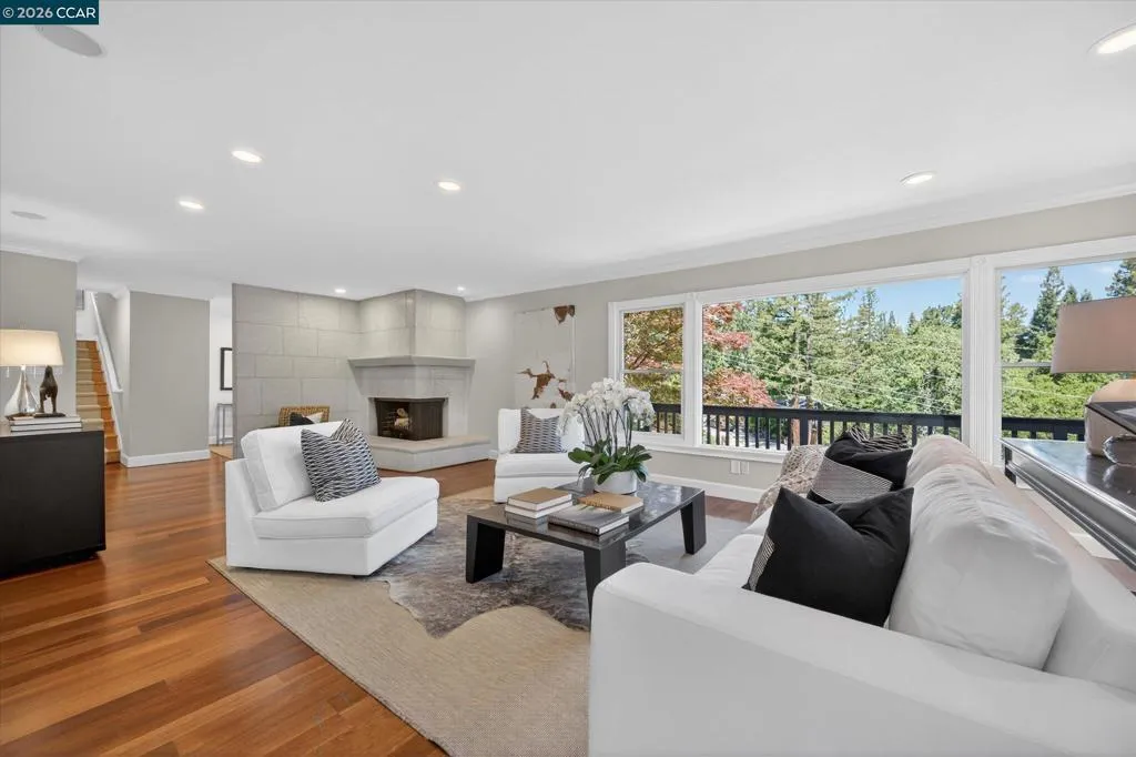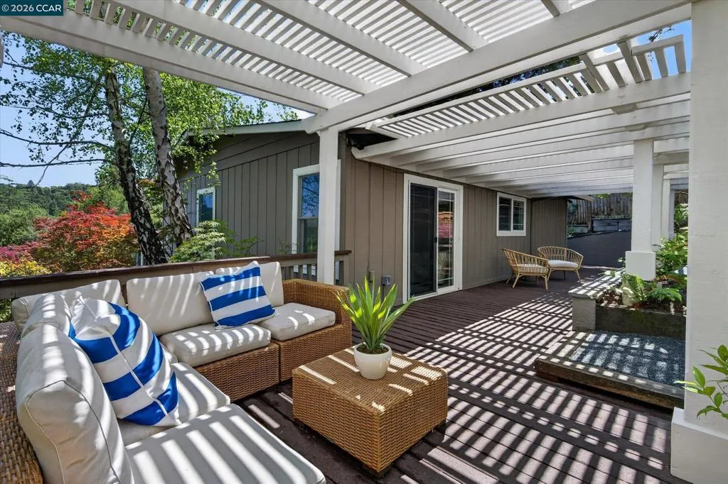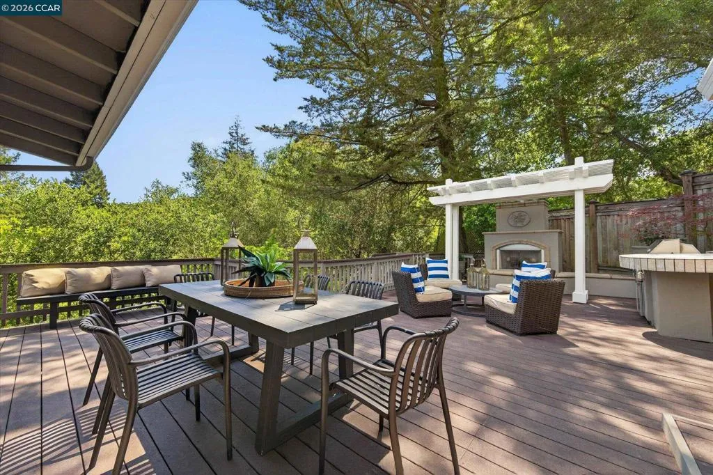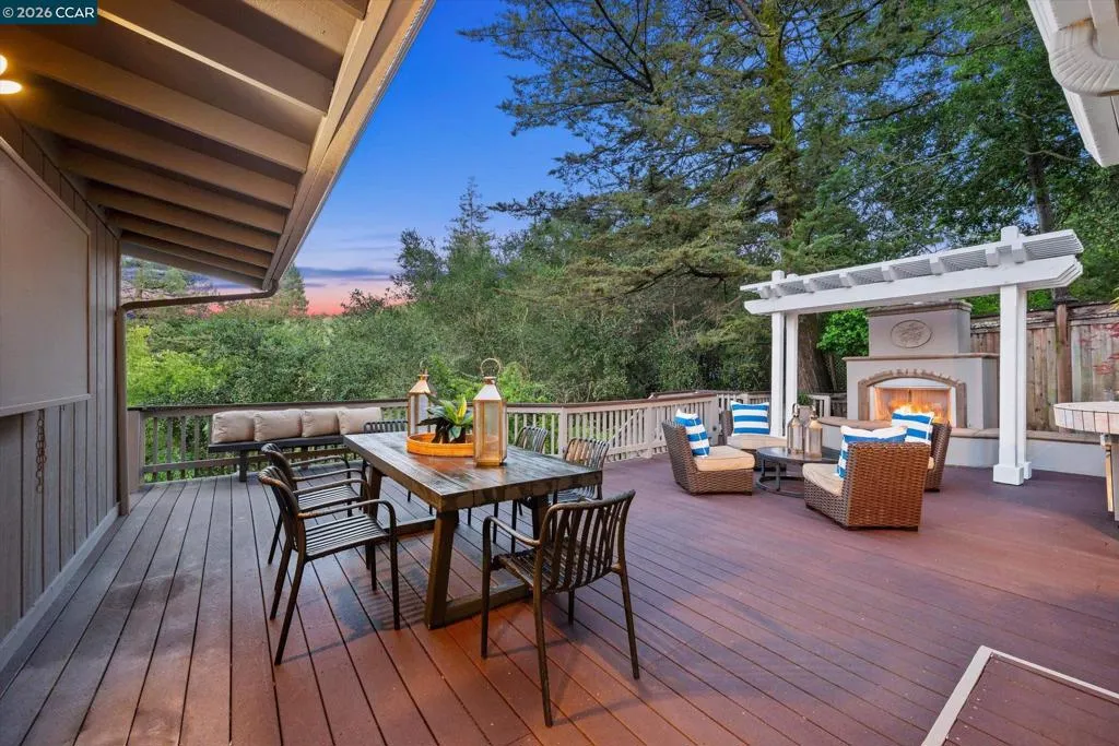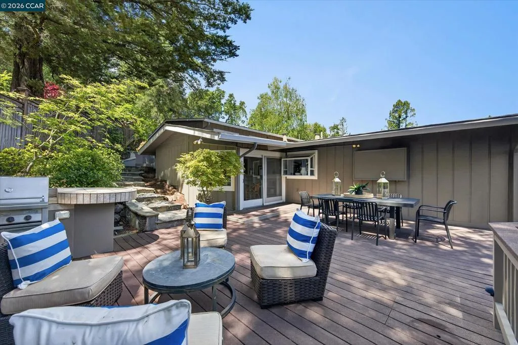 Warm and welcoming home in sought after Hidden Valley! Set at the end of a cul-de-sac with privacy and a beautiful setting, this spacious home offers an ideal floor plan with four bedrooms plus a detached office, charming outdoor living, and walls of glass with Andersen doors that feature the picturesque, nature studded property with views. A great entertainer with delightful outdoor living that includes a built-in bbq, wonderful gas fireplace and arbors. Mature trees and landscaping include Japanese maples, birch trees, hellebore, ferns and enchanting moss covered rocks. Inviting flagstone entry and trimmed driveway, wrap around deck and pathways, raised vegetable beds. Updated throughout, the home features hardwood floors in the living areas, large rooms with spanning windows and glass doors, a beautiful fireplace with stone surround, dining and family rooms with built-ins and a well-equipped kitchen with quality appliances including Dacor gas cooktop, Samsung refrigerator, GE double ovens, Miele dishwasher. Detached office presents an ideal work from home setup. There is a bonus room off the garage with laundry, storage and a workshop. Exceptional location, convenient to both vibrant downtown Lafayette with great shops and restaurants, the Lafayette Reservoir and commute access. Highly desirable schools included Happy Valley Elementary, Stanley Middle and Acalanes High.
