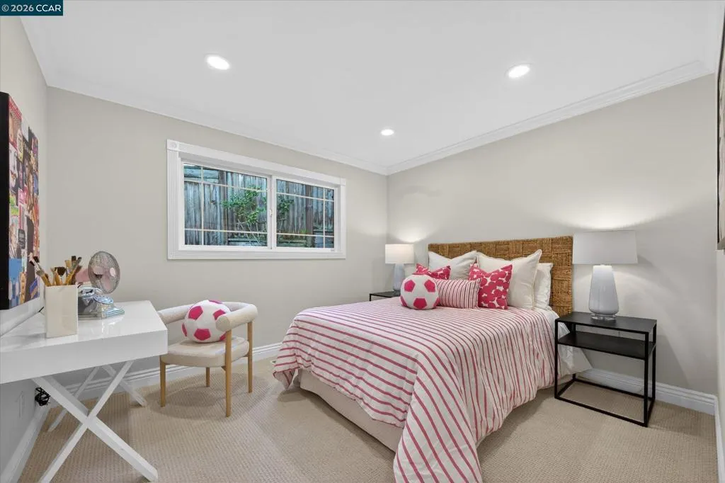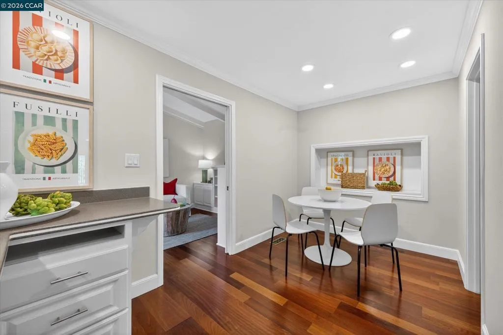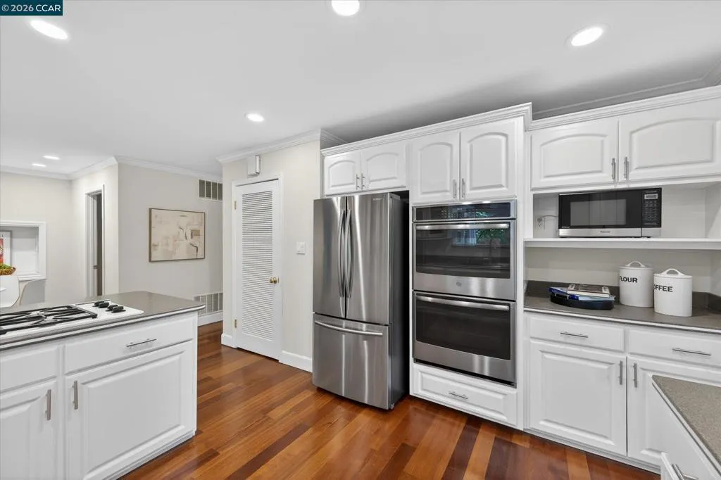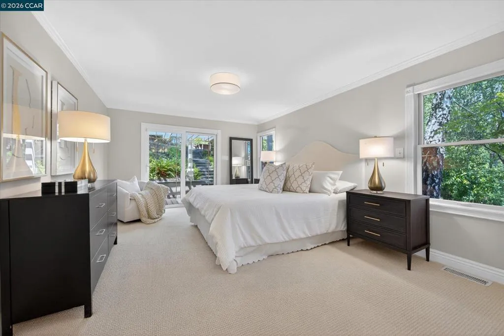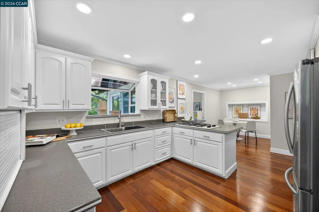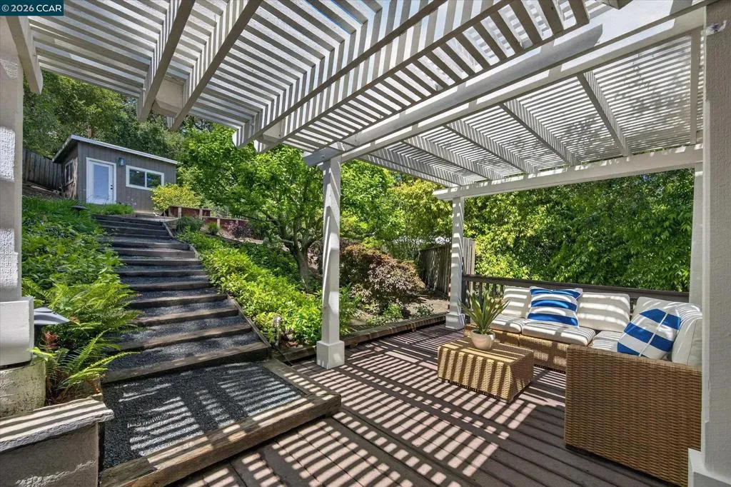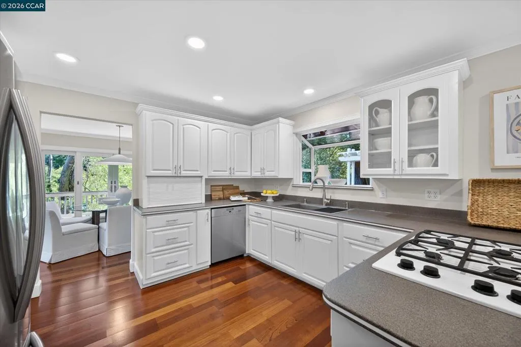 Warm and welcoming home in sought after Hidden Valley! Set at the end of a cul-de-sac with privacy and a beautiful setting, this spacious home offers an ideal floor plan with four bedrooms plus a detached office, charming outdoor living, and walls of glass with Andersen doors that feature the picturesque, nature studded property with views. A great entertainer with delightful outdoor living that includes a built-in bbq, wonderful gas fireplace and arbors. Mature trees and landscaping include Japanese maples, birch trees, hellebore, ferns and enchanting moss covered rocks. Inviting flagstone entry and trimmed driveway, wrap around deck and pathways, raised vegetable beds. Updated throughout, the home features hardwood floors in the living areas, large rooms with spanning windows and glass doors, a beautiful fireplace with stone surround, dining and family rooms with built-ins and a well-equipped kitchen with quality appliances including Dacor gas cooktop, Samsung refrigerator, GE double ovens, Miele dishwasher. Detached office presents an ideal work from home setup. There is a bonus room off the garage with laundry, storage and a workshop. Exceptional location, convenient to both vibrant downtown Lafayette with great shops and restaurants, the Lafayette Reservoir and commute access. Highly desirable schools included Happy Valley Elementary, Stanley Middle and Acalanes High.