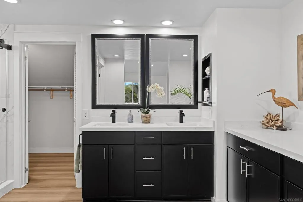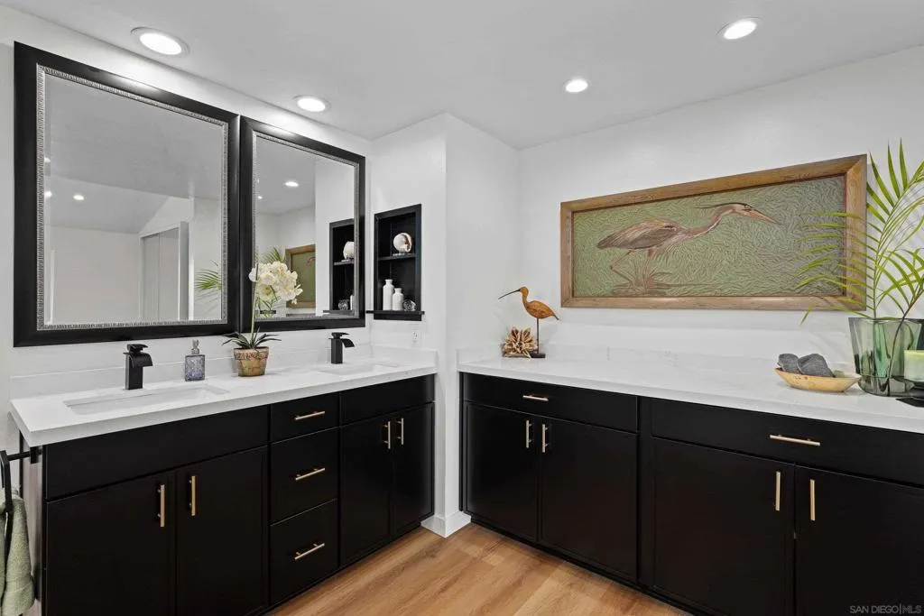 Come and see this beautiful 2,200 sqft, 4 bed, 2.5 bath fully remodeled home is located directly on the golf course in Whelan Ranch Estates, Oceanside. This row of homes facing the course does not come up often! Beautifully maintained, this two story home sits on a rare flat 6,551 sq ft lot backing directly to the 11th hole of the Oceanside Golf Course. Enjoy morning coffee with open greenery views or step out through the fence for easy course access. Downstairs features an open and updated living room, formal dining area, and a spacious kitchen with plenty of storage and brand new appliances. Go into the family room with fireplace which creates a comfortable space for everyday living and entertaining. Upgrades include brand new windows, luxury plank flooring, quartz countertops, updated bathrooms, and fresh landscaping. Plenty of windows bring natural light into the main living areas, and the kitchen offers direct backyard access for easy indoor outdoor flow. Upstairs includes four bedrooms, including a large primary suite with plenty of space, two closets, golf course views, and an updated bathroom with a fully tiled walk in shower and dual vanities. The backyard is truly one of a kind and offers views, space to garden, entertain, or relax. Low HOA with recently remodeled community pool is very clean and nice! The property is 7 min from beaches, and close by shopping, dining, parks, top rated schools, Highway 76, I-5, and I-15 Freeways. A rare opportunity to own a move in ready home on one of the best lots in Whelan Ranch!