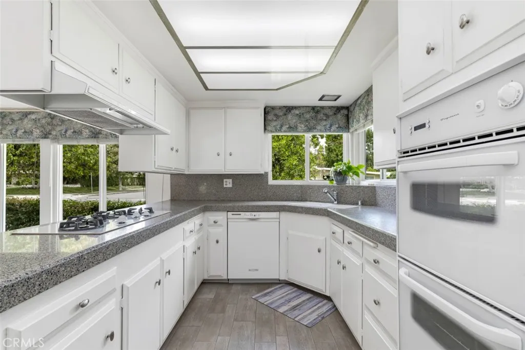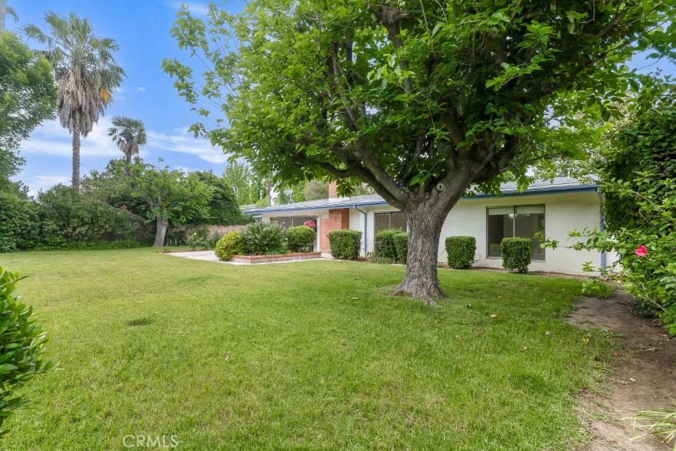 The functional floor plan places all four bedrooms in a dedicated wing for privacy, including two good-sized guest rooms connected by a Jack-and-Jill bathroom, plus two additional bedrooms served by a full hall bath with dual-sink vanity and separated tub and shower. The oversized rear lot serves as a sanctuary, framed by mature hedges and shade trees. Located in an exceptionally quiet enclave and surrounded by several cul-de-sacs, through-traffic is kept to an absolute minimum. This home is within the boundaries of highly regarded schools, including Woodlake Elementary, Hale Academy, and the prestigious El Camino Real High School, famed for its 11 National Academic Decathlon Championships, the winningest of any high school in the country.