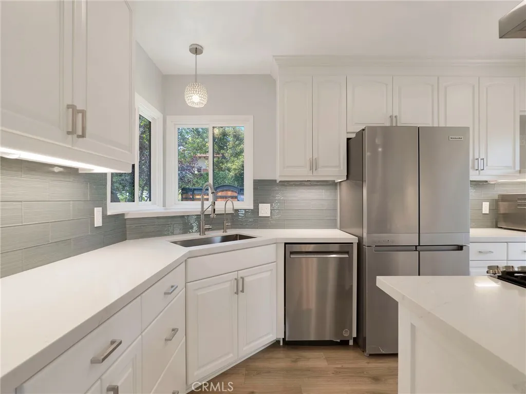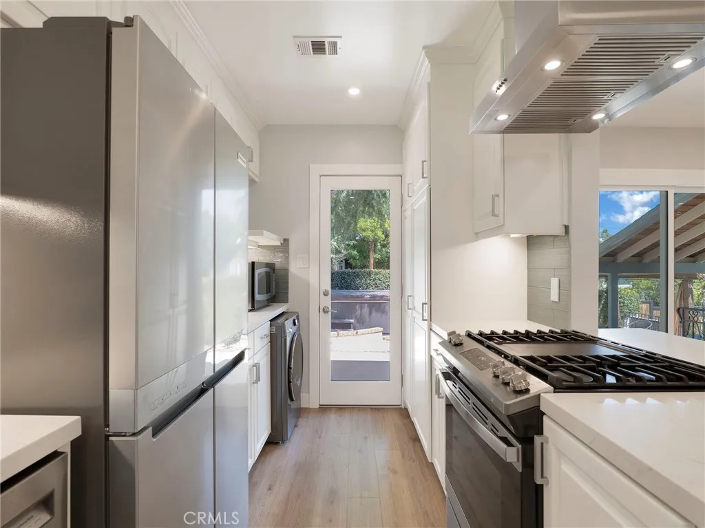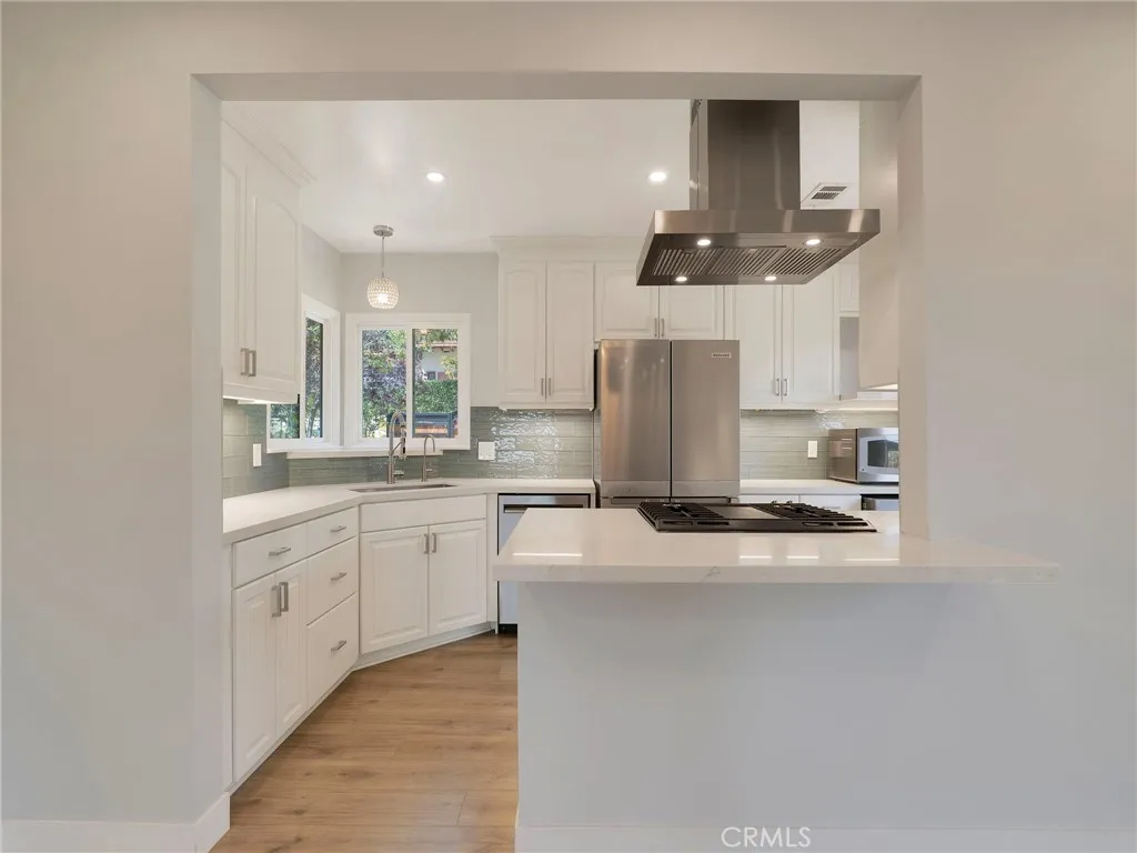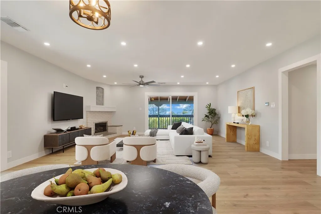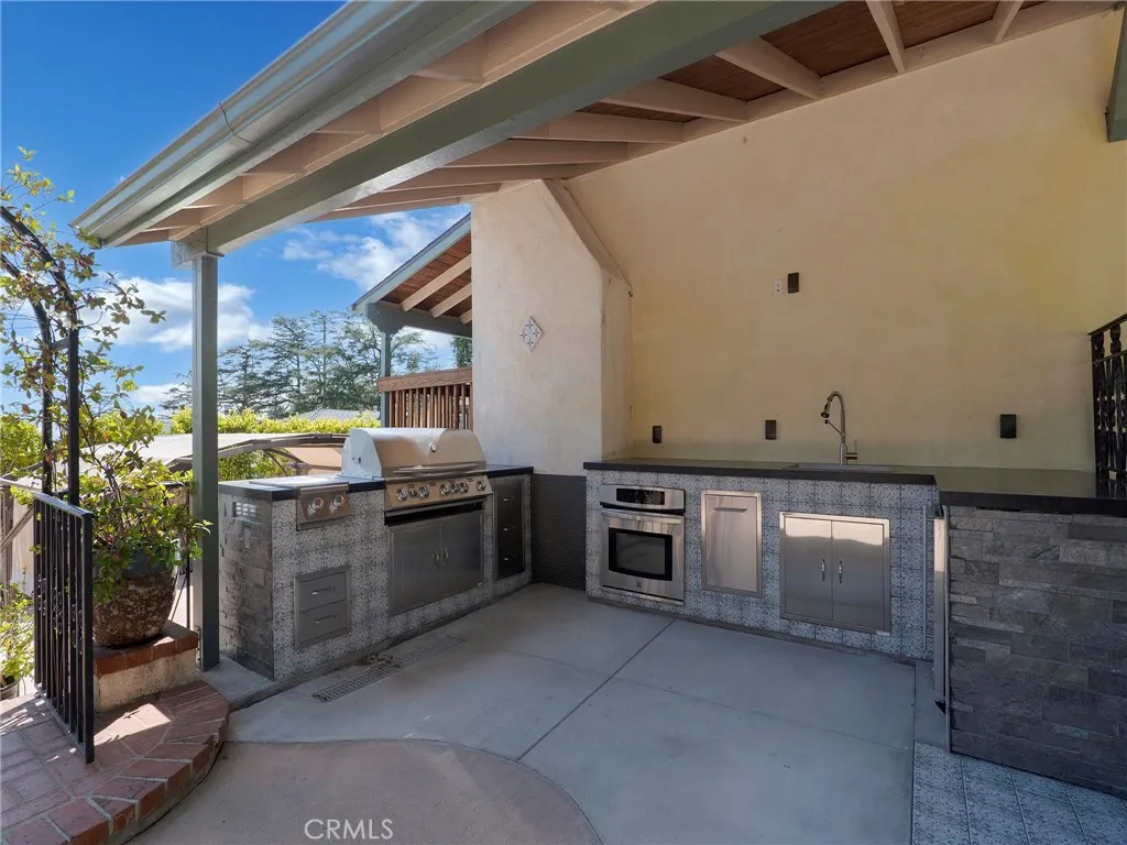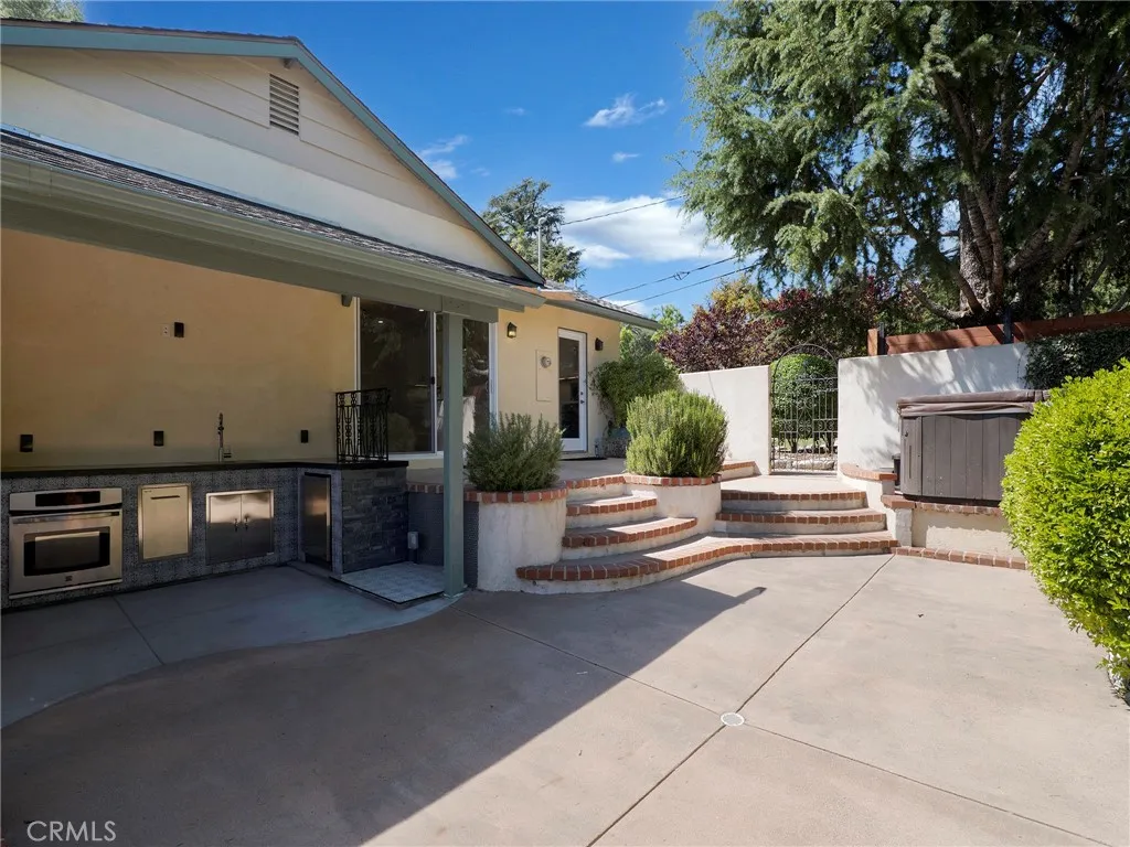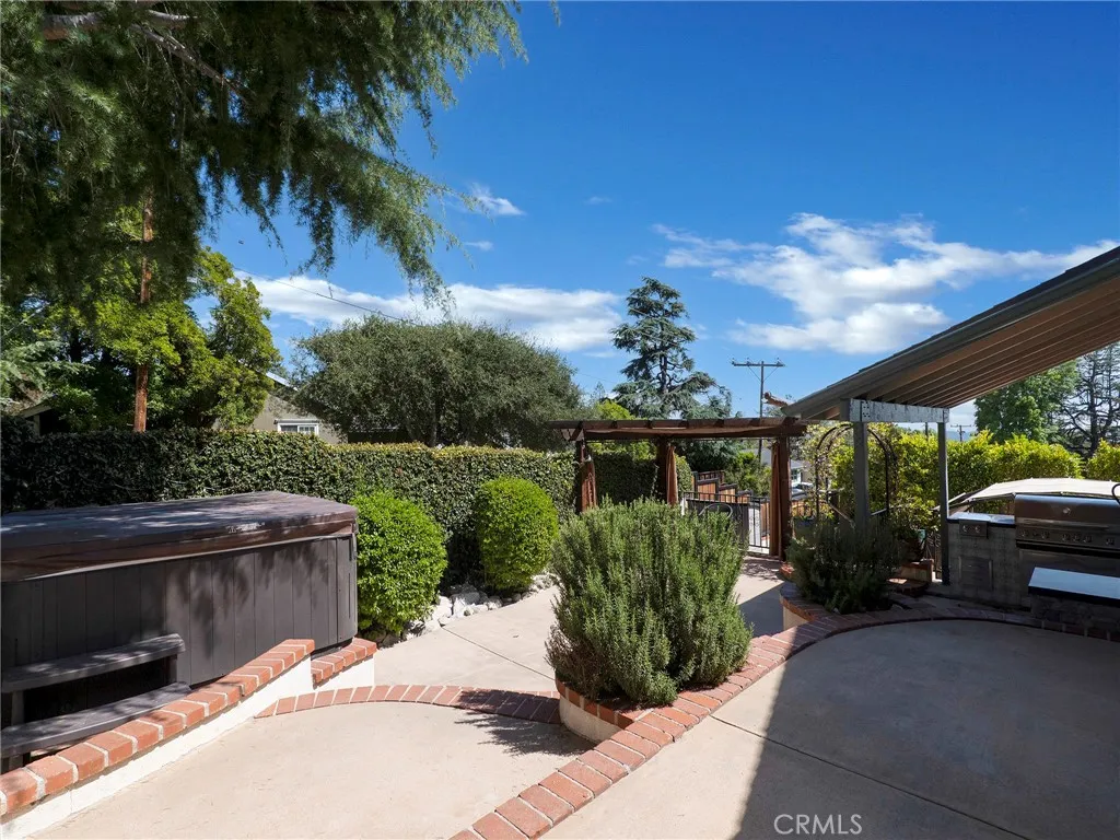 Behind private gates on a picturesque, tree-lined street, 2254 Cross Street presents a beautifully reimagined residence in one of La Cañada Flintridge’s most sought-after neighborhoods. Designed for effortless living, all interior spaces are thoughtfully arranged on a single level, blending convenience with sophistication. Upon entry, the main living area welcomes you with warmth and style—featuring a well designed kitchen appointed with elegant stone countertops and new appliances, seamlessly flowing into the dining area and inviting living room with fireplace. This open-concept space is equally suited for intimate evenings or entertaining, with direct access to impressive outdoor living. New flooring extends throughout the home, including the serene en-suite primary bedroom. Two additional well-proportioned bedrooms share a tastefully updated hall bathroom, completing the interior with both comfort and functionality. Outdoors, the property truly shines. Designed with entertaining in mind, multiple patios and a spacious covered deck create a natural extension of the living space, complemented by peek-a-boo views of DTLA. A fully equipped outdoor kitchen anchors the setting, offering an ideal backdrop for gatherings, while the jacuzzi provides quiet moments for those seeking relaxation. Additional features enhance the home’s versatility, including inside laundry as well as a secondary laundry area in the garage, and a lower-level bonus room perfect for a home office, gym, or extra storage. Private gates open to the detached garage, RV parking and lower level patios, adding yet another layer of usability and security. The expansive front yard is a perfect place for your furry friends and the potential for an ADU, may appeal to those seeking additional living options or rental income. Gated, updated, and thoughtfully designed, this residence offers a seamless blend of comfort, lifestyle, location and opportunity—just moments from top-rated schools, scenic trails, and the very best of La Cañada living.