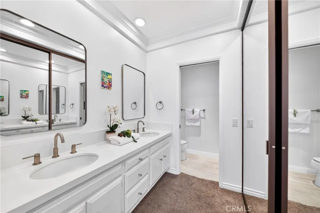 Welcome to 17 Clove Blossom! A Beautiful and highly desirable Single Level, End Unit home, exceptionally Well Maintained and representing the perfect example of Pride in Ownership! Ideally situated in the coveted Park Homes community of Woodbridge, this home features a charming exterior with brick accents and colorful landscaping that creates a welcoming first impression. Once inside, the light-filled interior, Open Floorplan, and stunning Hardwood Flooring throughout set the stage for an ideal living environment. The home has been freshly updated with New Interior Paint in a neutral palette, making it feel crisp, bright, and completely Move-in Ready! The spacious living area boasts a cozy brick fireplace and modernized windows that invite an Abundance of Natural Light. The clean and bright kitchen is open to the sunny dining area with sliders opening to the Private Garden Patio—creating a wonderful indoor-outdoor space perfect for entertaining and relaxing with friends and family. The Primary Suite is a peaceful retreat featuring a unique Private Courtyard patio professionally designed with a Golf Putting Green, offering your very own outdoor oasis! The Primary Bathroom offers dual sinks and a walk-in shower. Two additional generously sized bedrooms share a full bathroom, with one perfectly suited for a Home Office or den. The direct access 2-car garage provides convenience and plenty of room for storage. Superb location “on the Loop” within walking distance of Award-Winning Schools, Shorebird Park, and the North Lake & Beach Club. Residents enjoy unparalleled Woodbridge Resort-Style Amenities including 2 landmark lakes with docks, 2 beach lagoons, 22 pools, 16 spas, 13 waders, 23 tennis courts, 4 pickleball courts, a splash pad, numerous parks with play equipment, volleyball courts, a big wheel park, horseshoe and shuffleboard facilities, an outdoor fitness course, basketball, volleyball, bocce ball and much, much more. All told, the Association owns and operates 41 recreation facilities exclusively for Woodbridge residents! No Mello Roos and easy access to both the 405 & 5 fwys make this A wonderful place to call home! Luxury, Privacy, and Comfort—It Does Not Get Much Better Than This!