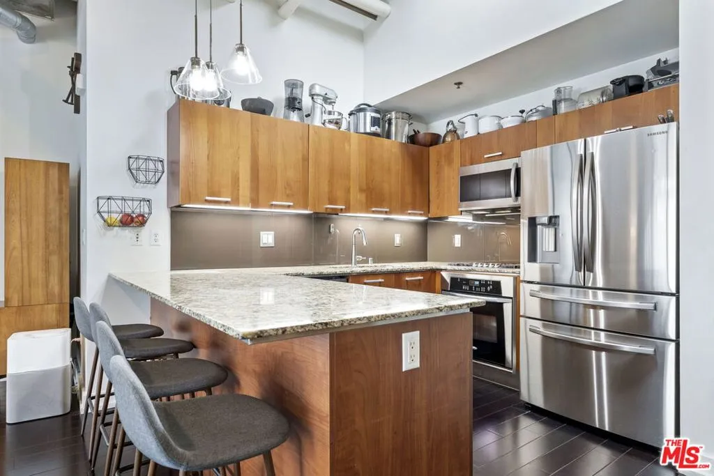 Rise above the rhythm of downtown in a rare top floor loft where elevated design meets uninterrupted skyline views and every day feels intentionally curated. Flooded with natural light from dramatic floor to ceiling windows this residence captures sweeping DTLA vistas that are widely considered the finest in the building creating a constant backdrop of energy day to night. Step inside through an impressive entry anchored by a striking exposed concrete columns with designed concrete walls to showcase a curated art collection. The open concept living space is framed by soaring 14 foot ceilings with exposed ducts and pipes blending industrial character with refined finishes. The chef inspired kitchen features sleek cabinetry Caeserstone countertops and stainless steel appliances ideal for hosting elevated dinners or relaxed evenings with the city lights as your backdrop. An expansive walk in closet and in unit washer dryer add seamless functionality to a polished lifestyle. Market Lofts offers an ideal blend of convenience and luxury an opportunity not to be missed, and timed perfectly for a front row view of the 2026 WORLD CUP AND THE 2028 SUMMER OLYMPICS! With Just 1,440 steps away from Crypto.com Arena , this location places you at the epicenter of global events while maintaining the privacy of a top floor retreat. Two rare side by side parking spaces in a secured attached garage deliver everyday ease in a high demand urban setting. Residents enjoy a full service experience with 24 hour concierge security, resort style pool and spa , fitness center , movie screening room , private party lounge , BBQ areas and onsite management along with an Amazon Locker for convenience. Positioned in South Park one of DTLA most vibrant neighborhoods you are moments from Ralphs, Whole Foods , LA Live , the Financial District and premier dining and entertainment all within a walk. Designed for professionals creatives, and investors who value access design and experience this residence delivers a true live work play lifestyle. Schedule your private showing and secure one of the most compelling top floor opportunities in downtown Los Angeles. HOA : $658.21 + (2) PARKING $576.54 + MAINTENANCE $124.42 = $1.359.17 TOTAL