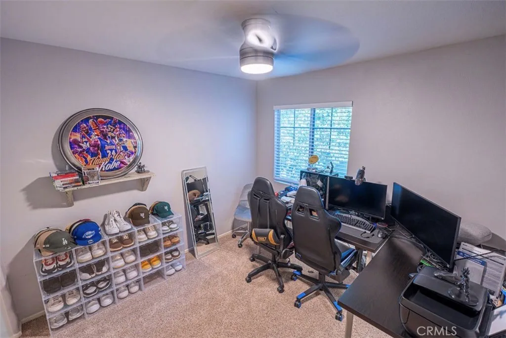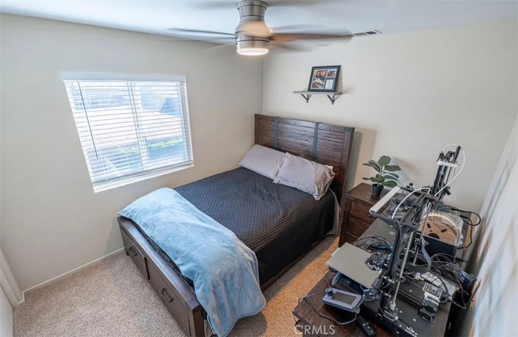 Turnkey two-story home located in a private gated Village Parks community. This thoughtfully designed floor plan showcases pride of ownership throughout. The inviting wrap-around covered porch offers charming curb appeal and overlooks park-like greenbelt views. Interior upgrades include fresh paint, recessed lighting, updated flooring, and a spacious living area with abundant natural light and direct access to a private patio. The remodeled kitchen features modern cabinetry, granite countertops, a stylish backsplash, and stainless steel appliances. Upstairs, you’ll find generously sized bedrooms including a spacious primary suite with new carpet, updated finishes, ceiling fan, and an upgraded bathroom. Additional highlights include an upstairs laundry room, linen storage, and a third remodeled bathroom. Enjoy multiple outdoor living spaces, including a private backyard, covered Alumawood patio, stamped concrete, firepit area, and custom retaining wall—perfect for entertaining. A separate gated side yard adds extra privacy and flexibility. This end-unit home offers enhanced privacy along with a 1-car garage and additional parking. The community features tree-lined walkways, a playground, and a well-maintained, pet-friendly environment. Ideally located minutes to California Baptist University, Schools, shopping, dining, and easy freeway access. A truly move-in ready home offering comfort, style, and convenience.