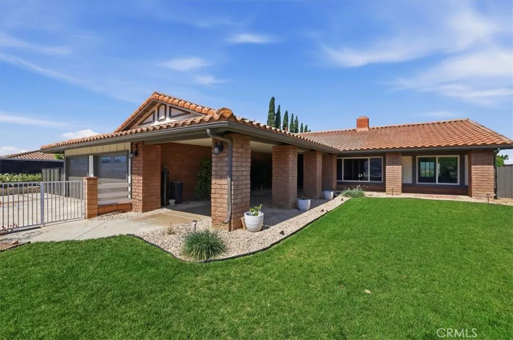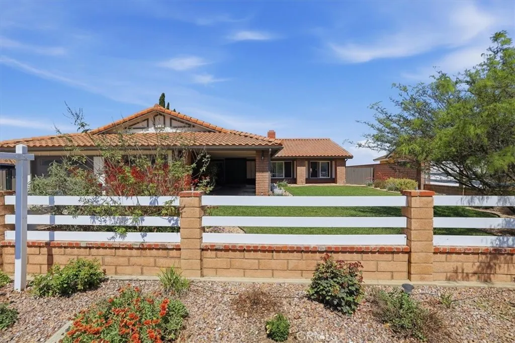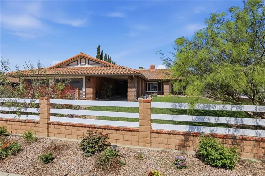 More photo coming soon! Exceptional single-story ranch estate ideally positioned on the Norco Bluff, capturing sweeping views of the Santa Ana Riverbed, surrounding mountains, and vibrant sunsets. Situated on an expansive 27,007 sq ft lot, this 4 bedroom, 2.5 bath residence offers approximately 2,708 sq ft of thoughtfully living space designed for both comfort and entertaining. A beautifully landscaped and fenced front yard welcomes you to a grand covered entry with brick pillars and double doors. Inside, formal living and dining rooms lead to an impressive great room featuring wood-beamed ceilings, a double-sided fireplace, custom built-ins, wet bar, and expansive sliding glass doors that frame the picturesque backyard and views beyond.