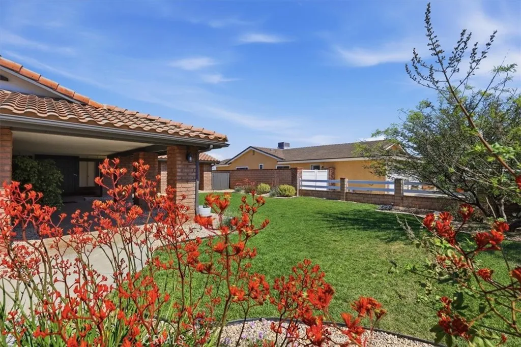 The upgraded kitchen blends warmth and functionality with newly painted cabinetry, maple butcher block countertops, tile backsplash, stainless sink, and upgraded appliances including a convection oven with air fryer capability, microwave, vent hood, and dishwasher. An inviting dining nook with built-in vanity completes the space. The spacious primary suite offers private access to the backyard via an oversized slider, along with dual closets and an en-suite bath featuring dual vanities and a sunken tub/shower. Secondary bedrooms are generously sized. Additional highlights include new luxury vinyl plank flooring, dual-pane vinyl windows and sliders, fresh interior and exterior paint, recessed lighting, upgraded ceiling fans, an indoor laundry room with half bath, and direct garage access. PAID OFF SOLAR adds efficiency and value. Designed for resort-style living, the backyard showcases a custom rock pool and spa, covered patios with metal roofing, gas firepit, outdoor fireplace, built-in BBQ, and gas tiki torches—all set against a backdrop of breathtaking views and enhanced by block wall fencing for privacy. Gated side access provides covered parking for a boat or trailer.