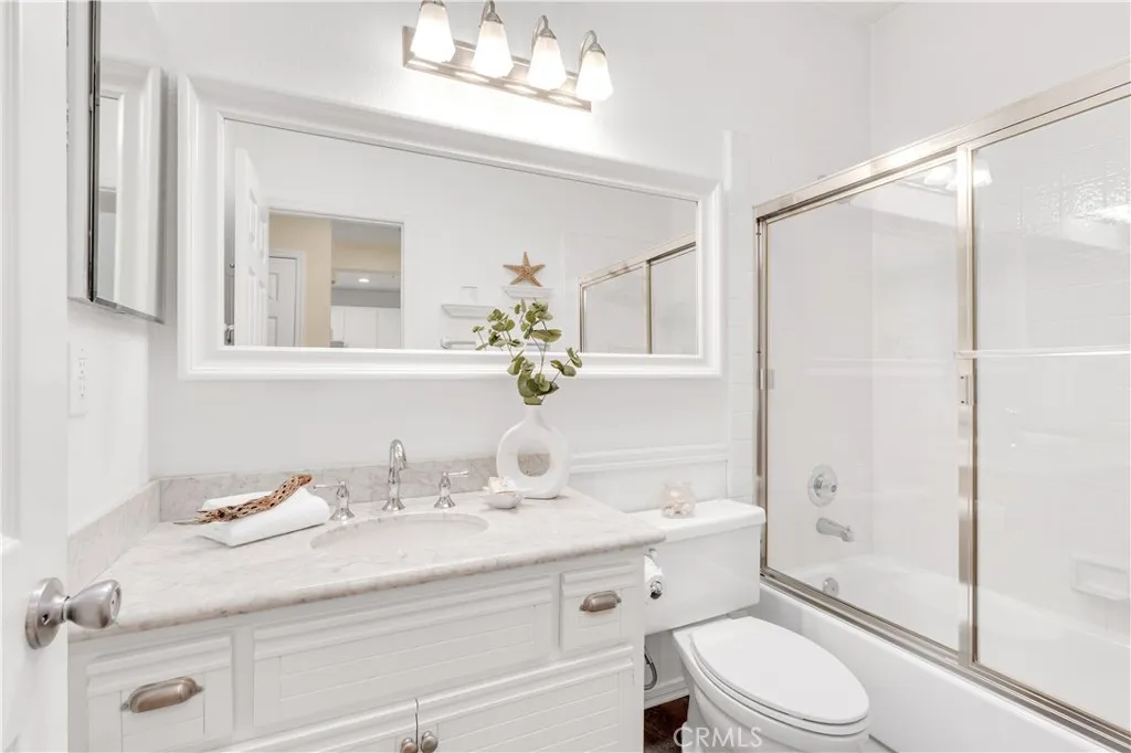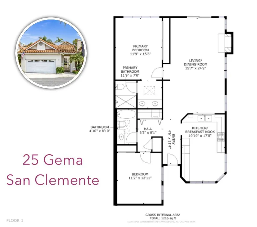 Why buy a condo when you can have your own beach cottage? Welcome to this beautifully maintained single-level home in the ocean-view community of Richmond Pointe – offering 2 bedrooms, 2 bathrooms, and approximately 1,206 sq ft of thoughtfully updated and remodeled living space. From the moment you walk in, you can feel it… this home has been meticulously cared for – and it shows in every detail. Light, bright, and full of coastal character, the interior features hardwood flooring throughout, a soft cheerful color palette, and updated lighting that ties it all together. The kitchen is equal parts crisp and charming, with white cabinetry, solid slab stone counters, stainless steel appliances, a cozy breakfast nook, and even a built-in desk – perfect for work-from-home days or everyday organization. The floor plan is both functional and thoughtfully designed for privacy, with the primary suite tucked at the back of the home—opening to the backyard—while the guest bedroom sits at the front with a full bath nearby. It’s a layout that offers comfortable separation and flexibility for everyday living. Both bathrooms have been tastefully remodeled with stone surfaces, updated fixtures and lighting, and a clean, timeless feel. The primary bathroom offers a smart, private layout with the shower and toilet tucked into a separate enclosed space, highlighted by a fully remodeled shower with a sleek frameless glass enclosure. And then there’s the outdoor space… private, inviting, and perfectly coastal. Beach day? Surf session? Rinse off in your outdoor shower and relax in your very own backyard retreat. All of this – with a two-car garage and detached home lifestyle – at a price point you’d typically expect for a condo. Located in the popular Rancho San Clemente community, residents here enjoy amazing location just minutes from local shops, award-winning schools, scenic hiking trails, and of course, San Clemente’s world-class beaches and surf. Even better – Life Time Fitness is right within the RSC community, offering resort-style fitness and wellness just moments from your door. Don’t miss this fabulous opportunity for classic coastal Orange County living with an even more amazing price. Your best life starts right here!