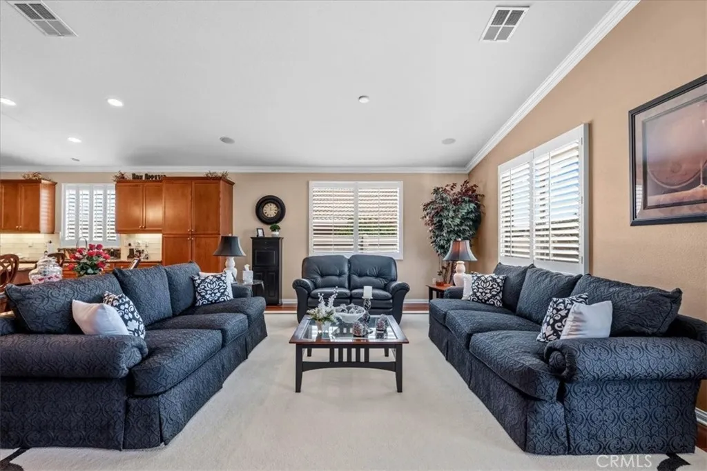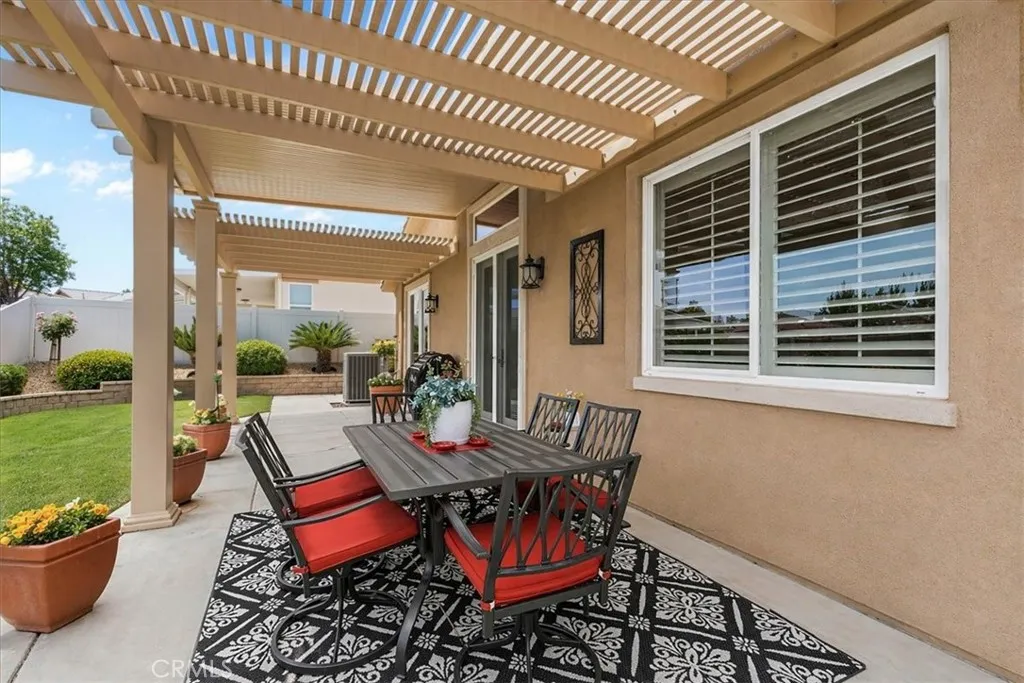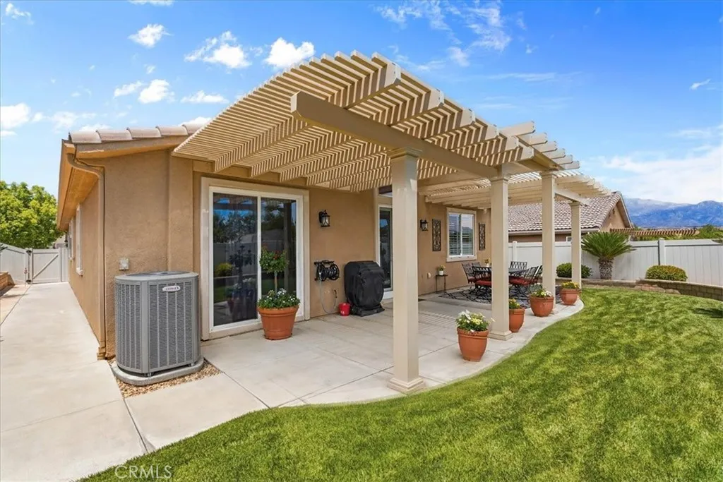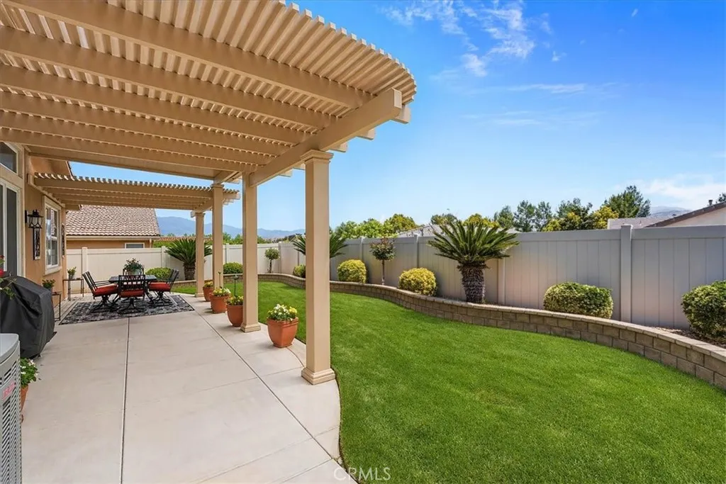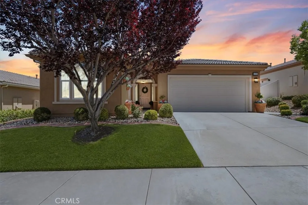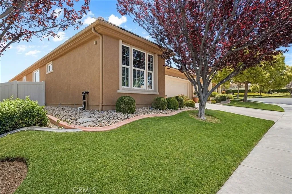 Beautifully Upgraded Heritage III Model. Welcome to one of Four Seasons’ thoughtfully upgraded homes — where designer details, effortless single-story living, and resort-style amenities come together in one exceptional package. From the moment you enter, the quality is undeniable. Rich Brazilian cherry engineered hardwood flooring, crown molding, wainscoting, plantation shutters, and recessed lighting create an atmosphere of refined elegance throughout. The spacious great room centers around a cozy fireplace flanked by custom built-ins that opens seamlessly to the backyard through a large sliding glass door — filling the home with natural light and an easy indoor-outdoor flow. The gourmet kitchen is a true entertainer’s delight, featuring a generous island with seating, granite countertops, stainless steel appliances, a custom tile backsplash, and an abundance of cabinetry. It opens directly to the family room, making hosting family and friends a natural pleasure. Just off the entry, a private den/office with double-door entry, crown molding, and wainscoting offers a quiet, distinguished space — ideal for reading, hobbies, or working from home. The primary suite is a genuine retreat — spacious and serene, with a soaking tub, separate walk-in shower, and generous walk-in closets designed for comfortable everyday living. The secondary bedroom is well-sized and bright, providing a welcoming space for visiting guests. A dedicated laundry room with sink and additional storage rounds out the practical, thoughtful floor plan. Step outside to your private backyard oasis, where an expansive Alumawood patio cover creates the perfect shaded retreat for morning coffee or evening entertaining. Manicured landscaping, decorative hardscape, and carefully placed planters complete a backyard that is as beautiful as it is low-maintenance. All of this within the prestigious gates of Four Seasons Beaumont — a gated community with gate attendant and celebrated for its tree-lined streets, manicured grounds, walking trails, and resort amenities. Residents enjoy an unmatched lifestyle with three clubhouses, an indoor pool, two outdoor pools, pickleball and lighted tennis courts, two fitness centers, an on-site restaurant, billiard room, movie theater, dog park, and a vibrant calendar of social activities that fosters genuine community connection. Enjoy the low taxes too, this home has low special assessments. Welcome home.
