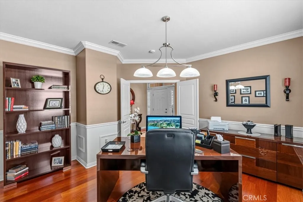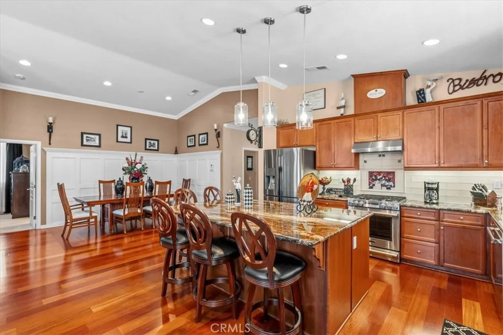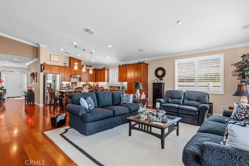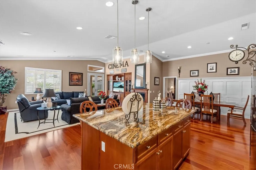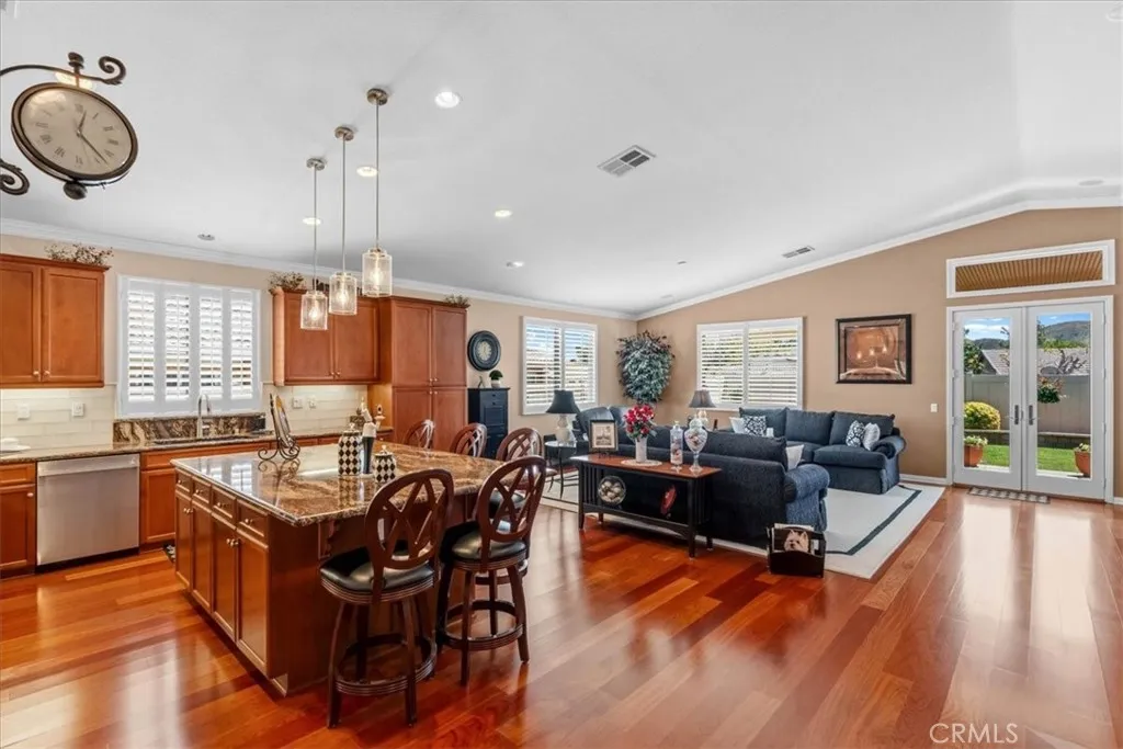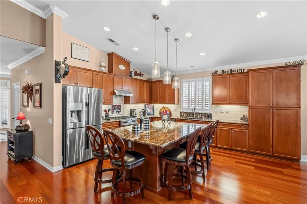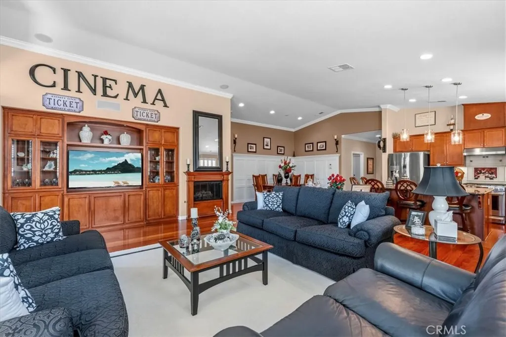 Beautifully Upgraded Heritage III Model. Welcome to one of Four Seasons’ thoughtfully upgraded homes — where designer details, effortless single-story living, and resort-style amenities come together in one exceptional package. From the moment you enter, the quality is undeniable. Rich Brazilian cherry engineered hardwood flooring, crown molding, wainscoting, plantation shutters, and recessed lighting create an atmosphere of refined elegance throughout. The spacious great room centers around a cozy fireplace flanked by custom built-ins that opens seamlessly to the backyard through a large sliding glass door — filling the home with natural light and an easy indoor-outdoor flow. The gourmet kitchen is a true entertainer’s delight, featuring a generous island with seating, granite countertops, stainless steel appliances, a custom tile backsplash, and an abundance of cabinetry. It opens directly to the family room, making hosting family and friends a natural pleasure. Just off the entry, a private den/office with double-door entry, crown molding, and wainscoting offers a quiet, distinguished space — ideal for reading, hobbies, or working from home. The primary suite is a genuine retreat — spacious and serene, with a soaking tub, separate walk-in shower, and generous walk-in closets designed for comfortable everyday living. The secondary bedroom is well-sized and bright, providing a welcoming space for visiting guests. A dedicated laundry room with sink and additional storage rounds out the practical, thoughtful floor plan. Step outside to your private backyard oasis, where an expansive Alumawood patio cover creates the perfect shaded retreat for morning coffee or evening entertaining. Manicured landscaping, decorative hardscape, and carefully placed planters complete a backyard that is as beautiful as it is low-maintenance. All of this within the prestigious gates of Four Seasons Beaumont — a gated community with gate attendant and celebrated for its tree-lined streets, manicured grounds, walking trails, and resort amenities. Residents enjoy an unmatched lifestyle with three clubhouses, an indoor pool, two outdoor pools, pickleball and lighted tennis courts, two fitness centers, an on-site restaurant, billiard room, movie theater, dog park, and a vibrant calendar of social activities that fosters genuine community connection. Enjoy the low taxes too, this home has low special assessments. Welcome home.