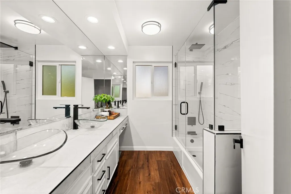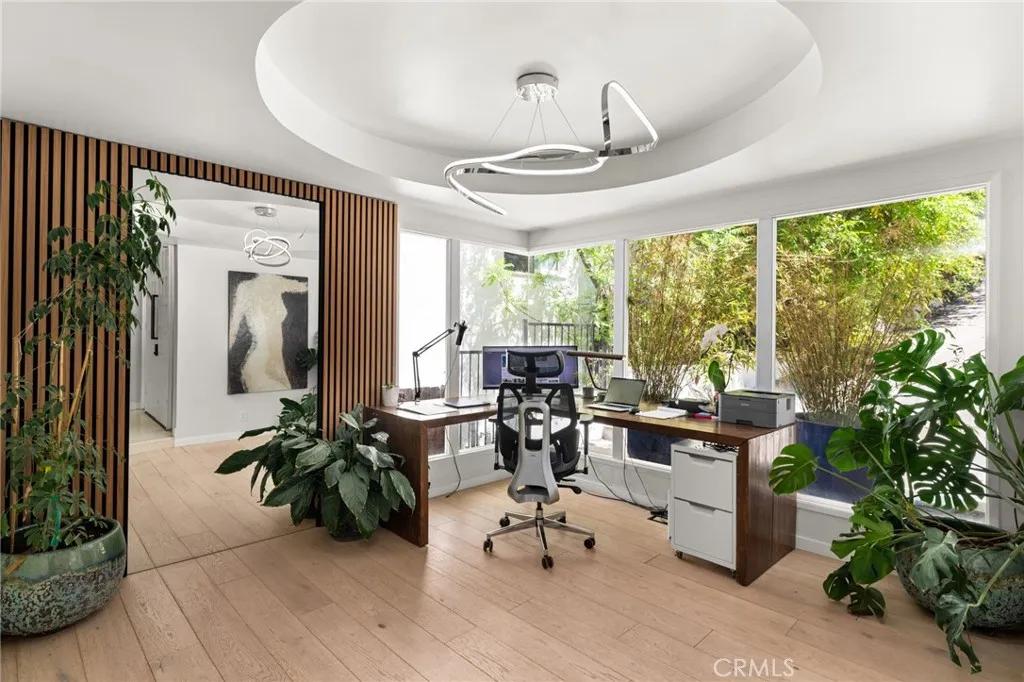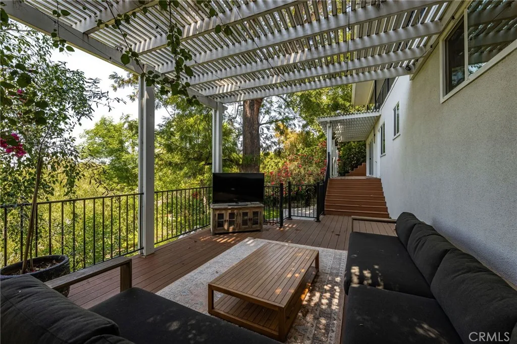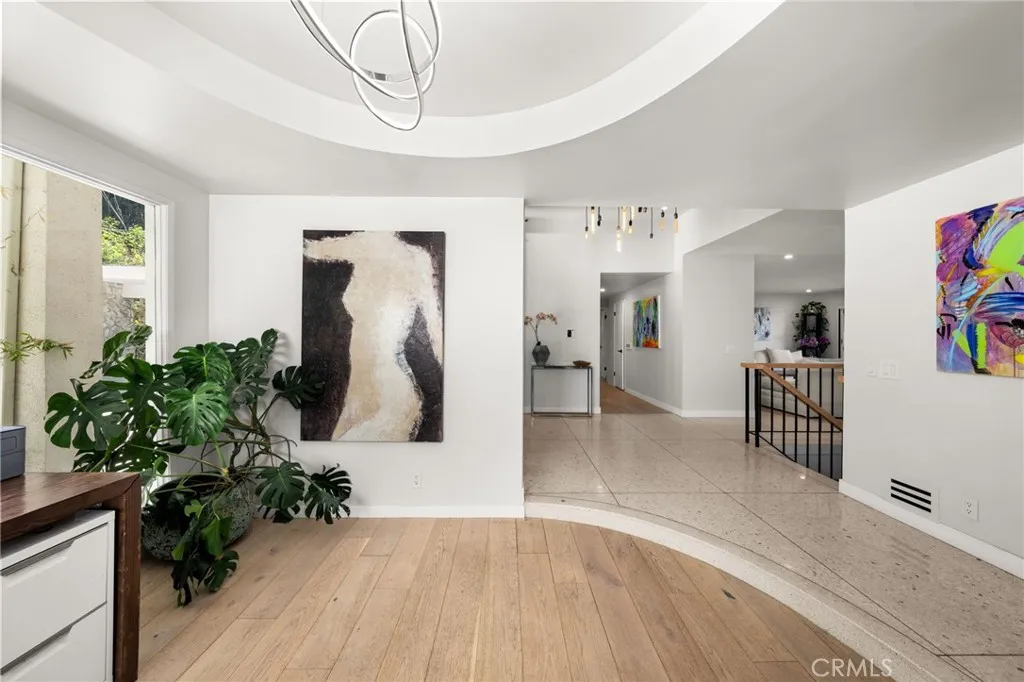 Nestled in a peaceful neighborhood just south of Ventura Blvd and near Topanga Canyon, this fully furnished home offers the perfect blend of modern luxury and serene canyon living. A grand entrance opens to 17-foot bifold doors showcasing stunning 180-degree views and bathing the space in natural light. The upstairs features heated hardwood floors, recessed lighting, and a newly renovated kitchen and bathrooms—including a spa-like master with a massive walk-in rain shower.