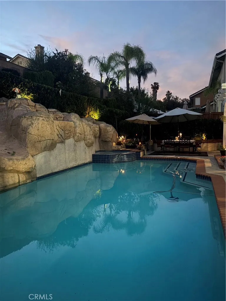 The private backyard is a standout feature, offering a custom swimming pool with slide, ideal for relaxing or entertaining. Enjoy a secluded outdoor setting designed for the best of California living. Additional highlights include spacious bedrooms, a well-maintained interior, and owner-paid solar panels for added energy efficiency.