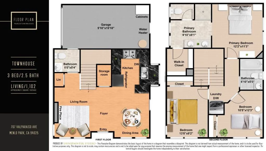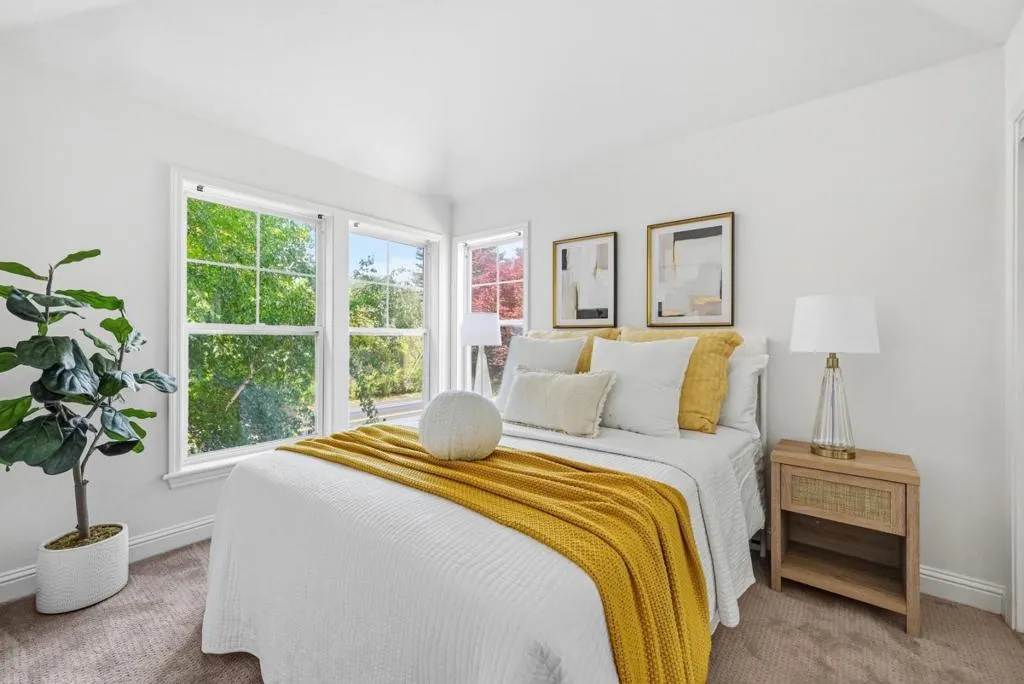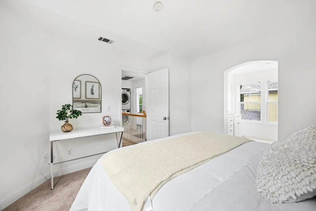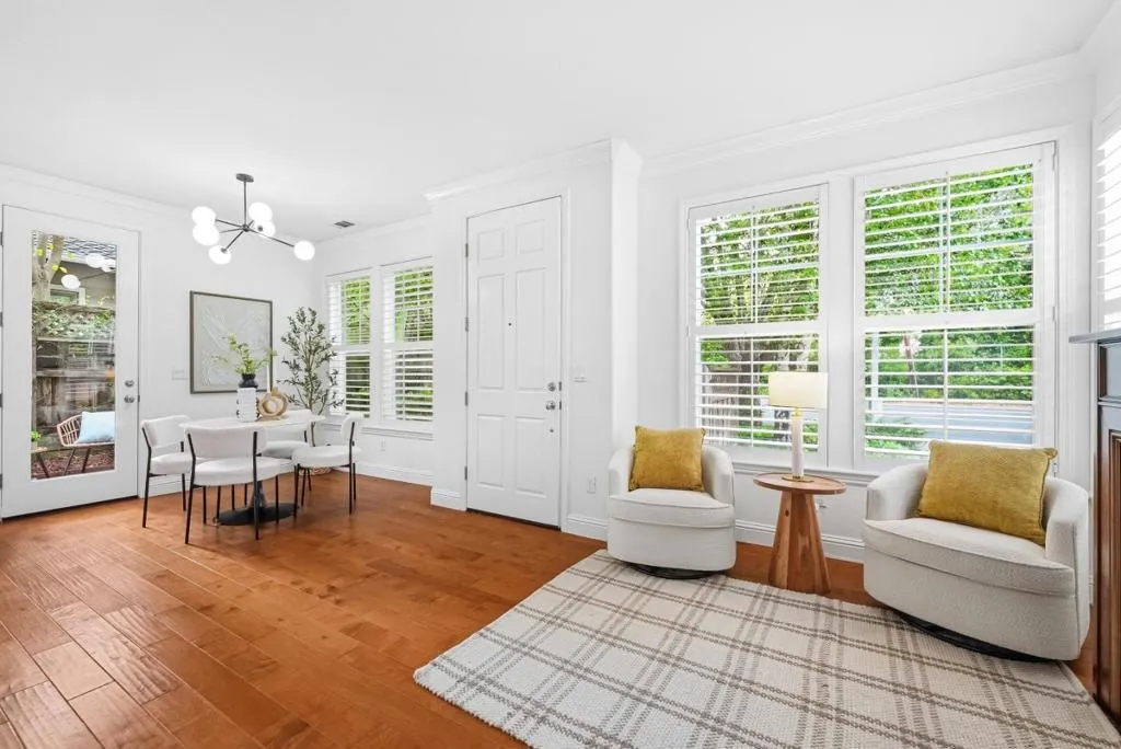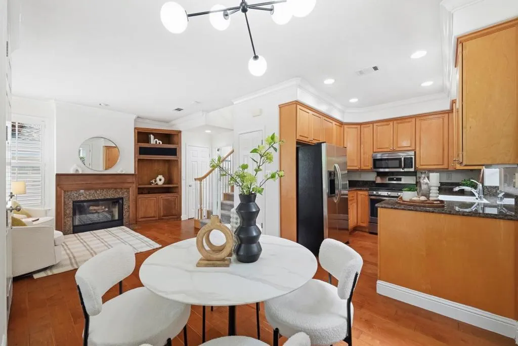 Welcome to this 2001-built, end-unit, two-story Tudor-style townhome with a private yard in convenient Menlo Park. The home features an enclosed front yard. Upon entry, an inviting living room with bright windows and hardwood flooring offers a cozy fireplace and built-in shelf, with a nearby half bath for convenience. The living room flows into a dining area with a stylish pendant light and direct access to the private yard, creating seamless indoor-outdoor living. The gourmet kitchen is equipped with granite countertops, stainless steel appliances, and ample cabinetry. Upstairs, the stairway is illuminated by a skylight and a pendant light. The primary suite features a spacious bedroom with vaulted ceilings and large windows, along with an en-suite bathroom offering a double vanity with a stone countertop, stall shower, and walk-in closet. Two additional bedrooms, both with vaulted ceilings, share a hallway bathroom with a shower over tub. A washer and dryer on the upper level add convenience. Additional highlights include recessed lighting and an attached garage. Ideally located near downtown Menlo Park, within walking distance to Menlo School and Sacred Heart School, with easy access to restaurants, grocery stores, and shopping. Do not miss this great opportunity!