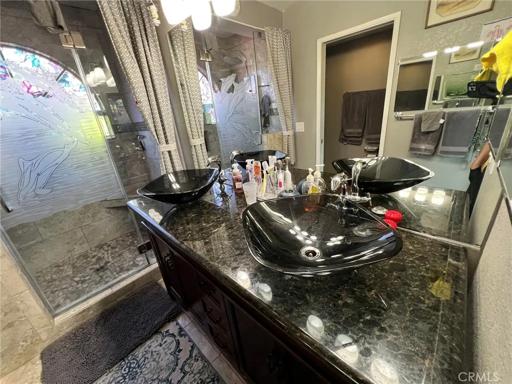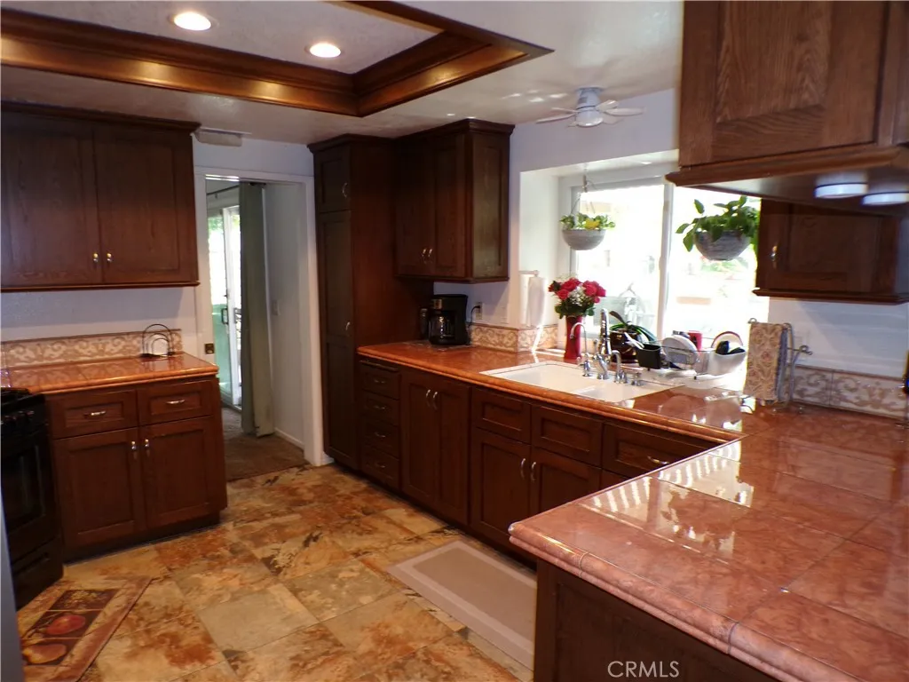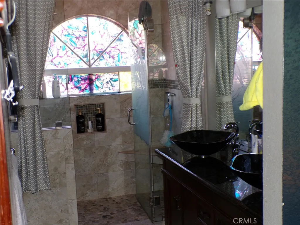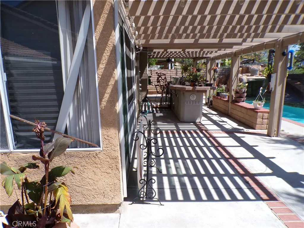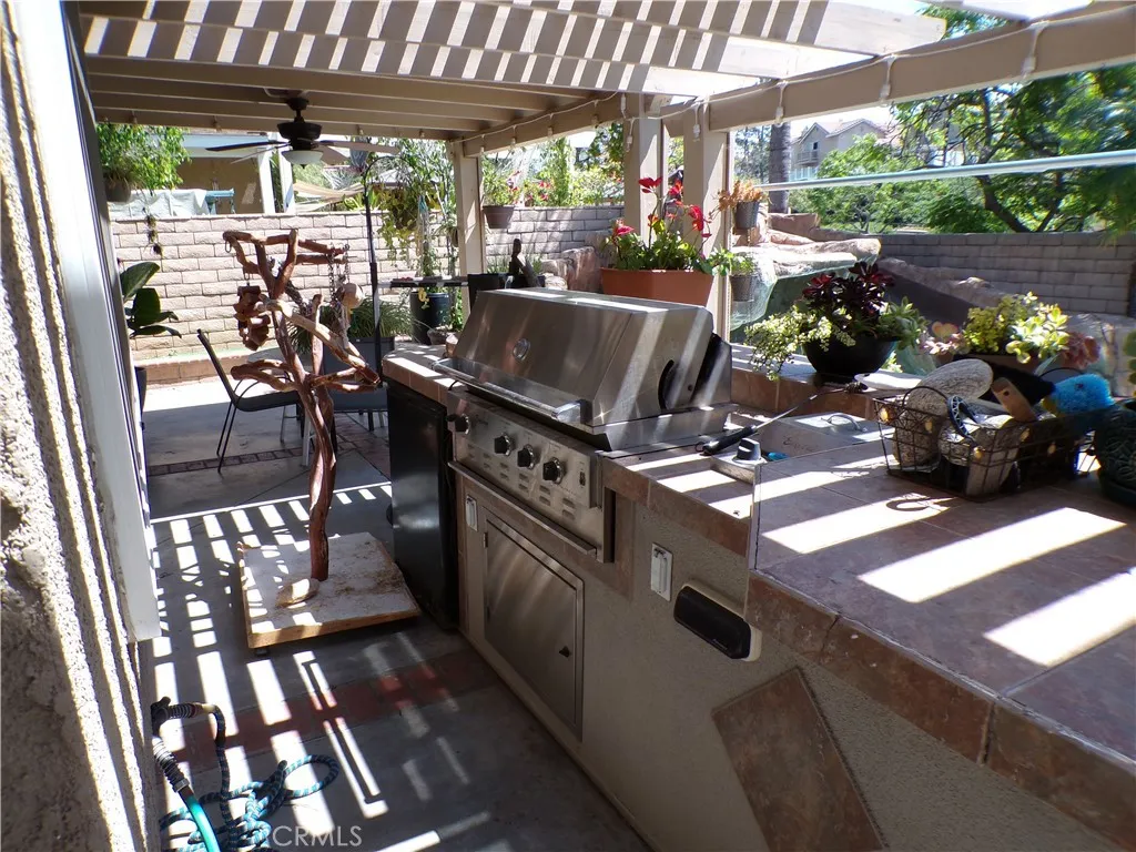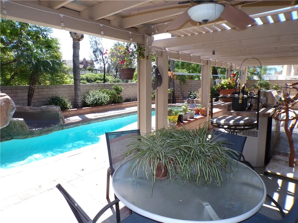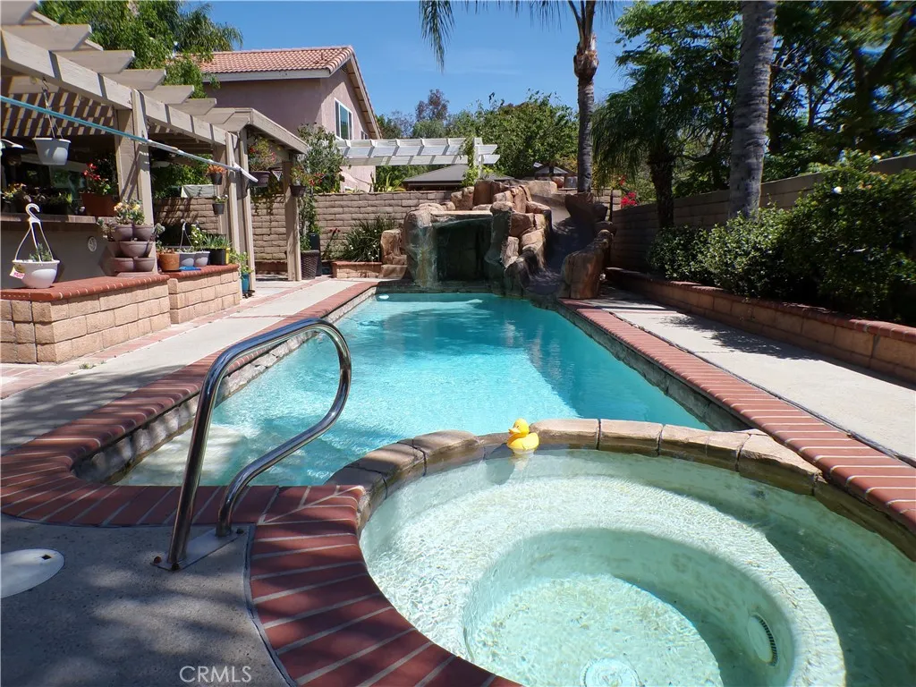 The backyard is a weekend dream, with a built-in barbeque island overlooking the inground pool and spa. The pool has a rockslide and waterfall feature. This gives you a great reason to just stay home and enjoy family and friends.