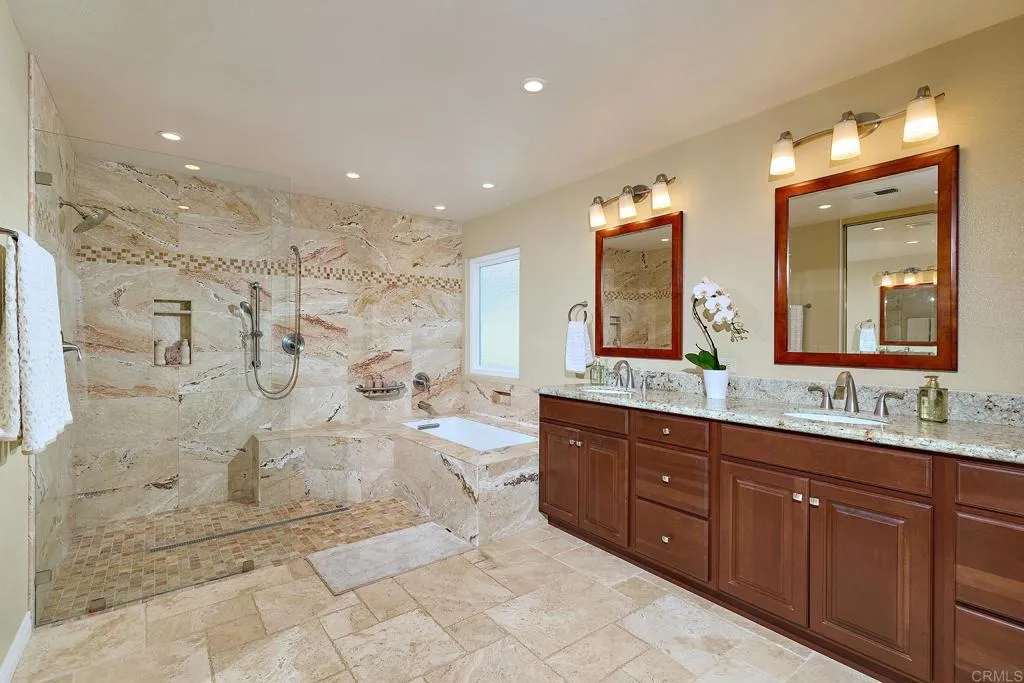 Discover this stunning home in the prestigious Bernardo Heights community of Summers on the Green, featuring a highly sought-after main-level primary suite with a beautifully updated, spa-inspired bathroom—an exceptional feature today’s buyers will truly appreciate. Ideally situated on a private, expansive ~14,917 sq ft lot, this largest model in the community offers exceptional privacy with no homes directly behind, along with peek-a-boo golf course views from two upstairs bedrooms. Just steps from The Heights Golf Club, the setting is both serene and highly desirable. This beautifully maintained residence offers 4 bedrooms and 2.5 bathrooms, with thoughtful upgrades throughout, including an updated kitchen, remodeled bathrooms, and three fireplaces in the living room, family room, and primary suite. The private backyard provides a peaceful setting for relaxing or entertaining. Move-in ready and ideally located near shopping, dining, and everyday conveniences, with convenient access to major commuter routes. Residents enjoy access to the Bernardo Heights Community Center, featuring a pool, spa, clubhouse, pickleball, tennis, fitness center, barbecue areas, and community gathering spaces, along with nearby Lucido Park—all within the award-winning Poway Unified School District. No Mello-Roos.