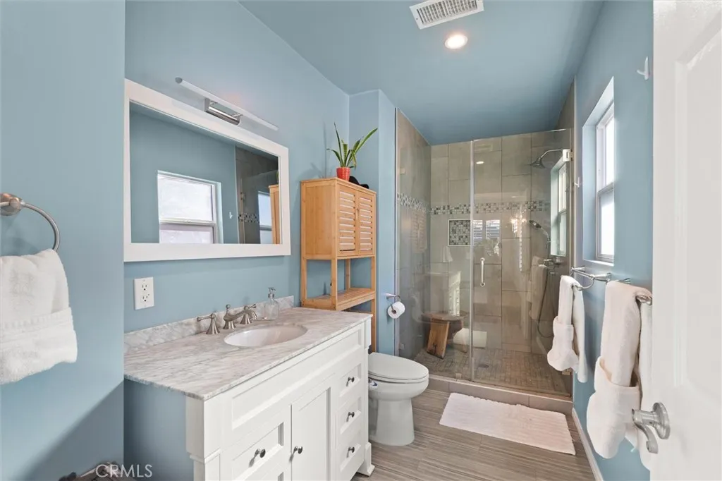 A View Heights corner lot with two guest homes / ADUs and a main residence you’ll want to call home. The main residence is a 1930s Spanish with original details. Vaulted ceilings with corbels, arched doorways, hardwood floors, and built-ins in the living room. Large south-facing windows bring in natural light. The kitchen has been remodeled with a center island, tile backsplash, stainless steel appliances, and pendant lighting. The primary bedroom opens to the backyard. A separate family room with wood paneling and a stone fireplace provides a second living space or a 3rd bedroom. Out back: two detached studio guest homes / ADUs. One features vaulted ceilings, a gas range, quartz counters, and brass hardware. The other has a breakfast bar, open shelving, and polished concrete floors. Both have full kitchens, full baths, mini-split AC, and private entrances. Rent them, house family, or both. The backyard has a lawn, raised beds with vegetables and citrus, and a pergola lounge with a shade canopy. Off-street driveway parking. Easily walk to great restaurants such as Somerville, Jon & Vinny’s, Simply Wholesome, and The Serving Spoon. Ten minutes to Culver City, LAX, and SoFi.