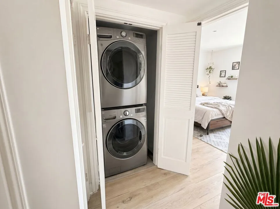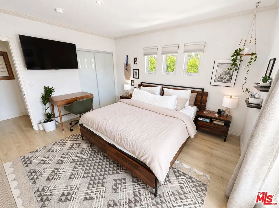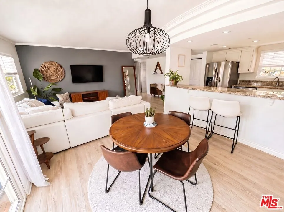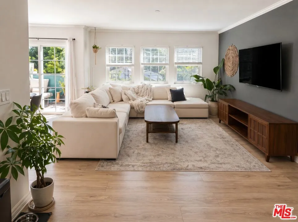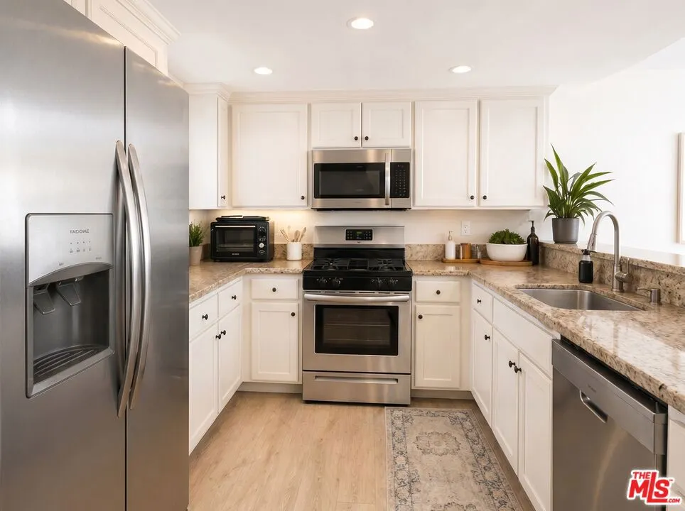 Welcome to 4832 Whitsett – a light, bright, and vibrant condo in the heart of Valley Village. This stunning corner unit in the small, elegant Belasera complex offers privacy with only one shared wall and beautiful treetop and neighborhood views. The open floor plan is airy and inviting, featuring crown moldings and newly installed light wide-plank flooring throughout. The chef’s kitchen boasts stainless steel appliances including a gas range, granite countertops, and off-white cabinetry, with a large breakfast bar perfect for entertaining. Step out from the dining area onto your own private balcony – a serene perch surrounded by lush treetop views, perfect for al fresco dining or unwinding at the end of the day. The master suite includes a walk-in closet and a full bath. The spacious second bedroom and adjacent full bath are perfect for guests or a home office. Additional features include in-unit laundry and gated underground parking with two tandem spots. Just steps from shopping, dining, and entertainment like Whole Foods, Thirsty Merchant, and Gino’s East – and the vibrant Ventura Blvd. with Erewhon, Sugarfish, and more – this condo offers the perfect blend of luxury and convenience. A must-see!