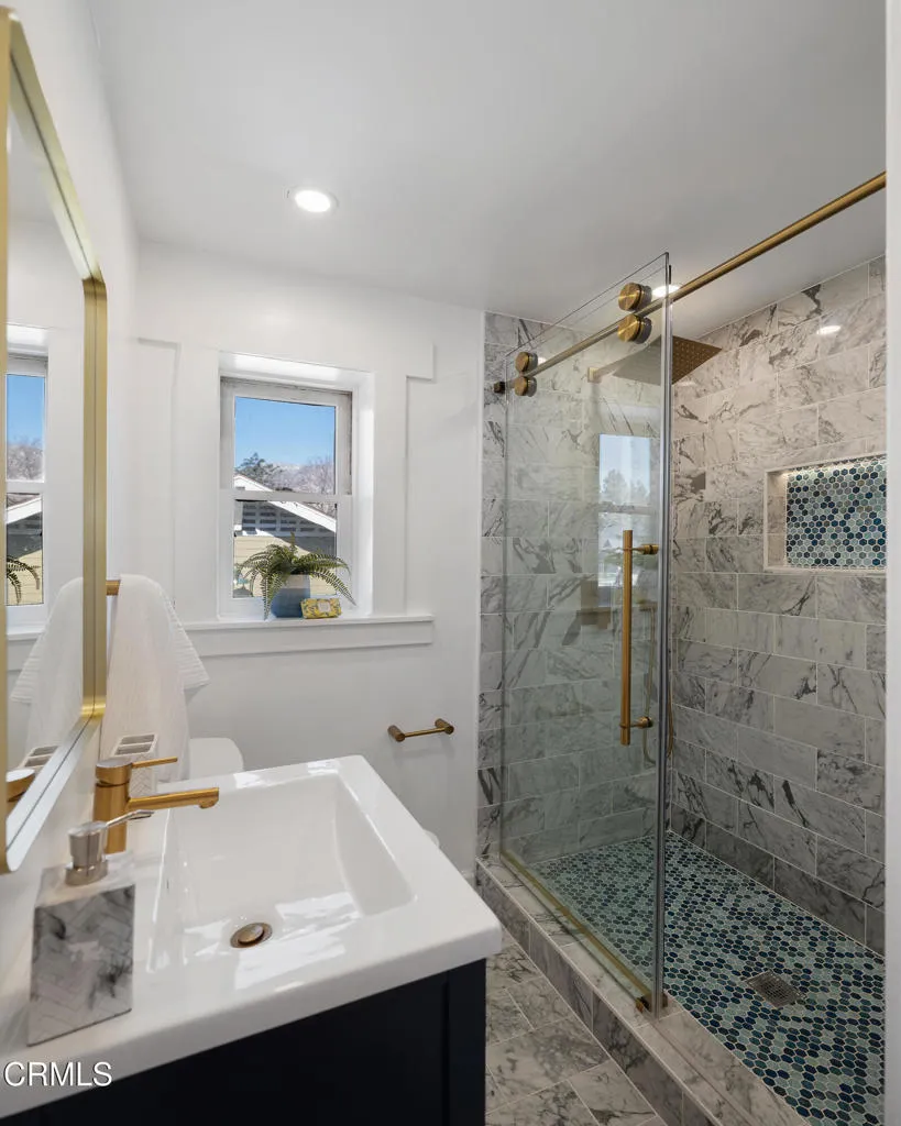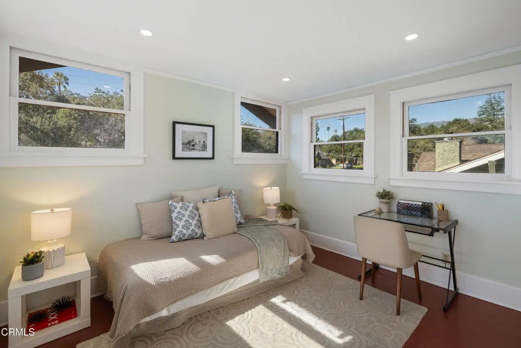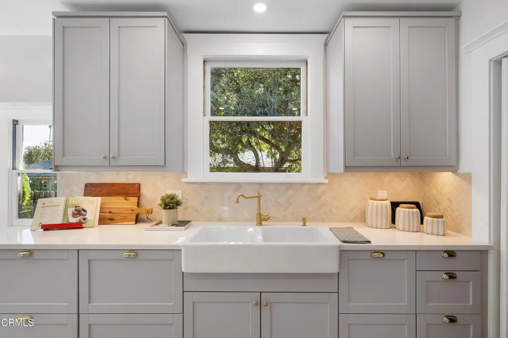 NEW PRICE–This exquisite three bedroom, two bath, 1923 square foot, 1915 Craftsman Airplane Bungalow, with an office and bonus crafts room or an additional study, has been lovingly remodeled and restored throughout. The house, built by Walter A. Waldlock, is an idyllic reflection of the arts and crafts movement while still offering a welcoming floor plan for entertaining or for enjoying the best of the California lifestyle. The interior is filled with period grace and details including hardwood floors, wide baseboards, rich wood moldings, crossbeam ceilings, artisan woodwork, elegant lighting, as well as custom built-ins, all reflecting the majesty of the era. As you step up to the wide, inviting porch, you are beckoned in via a stately front door that leads into the expansive living room with a central fireplace framed by two sets of French doorsallowing the light to stream in. From there you enter the formal dining room that has a charming bump out that houses a majestic antique sideboard. This adjoins the sun-lit,impeccably renovated kitchen, with high-end appliances, gleaming cabinetry, an oversized two-sided farmhouse sink and stunning quartzite counters. There are three spacious bedrooms with two bathrooms that have been beautifully updated with marble tile, aged brass treated fixtures and gorgeous vanities all while remaining in keeping with the architecture of this highly desirable style. Additionally, there is a breakfast area and laundry room or multi-purpose space that steps out to the deep backyard. The lovely rear yard offers spaces for celebrating with friends or for quiet dinners under the stars. The 6,751 square foot lot, with a verdant lawn, is a pleasure to behold. The residence showcases picture-perfect curb appeal and is located in the celebrated Bungalow Heaven Historic district which has been cited as one of the best neighborhoods in America. There are tours of the magnificent homes that line the shade dappled avenues. Don’t miss this true Pasadena architectural treasure in this sought-after community!