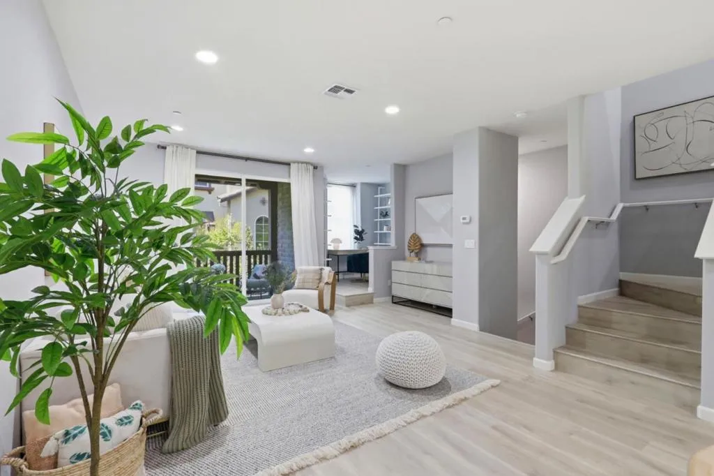 Located in San Jose, this 2,006 sq. ft. Low HOA home features 4 beds and 3.5 baths. Ground level has one bedroom suite with one full bathroom and connects to balcony. Upper level master suite with spacious walk in closet. The kitchen is equipped with a gas cooktop, quartz countertops, an island, pantry, dishwasher, microwave, oven range, refrigerator, exhaust fan, and garbage disposal, offering ample space for cooking and storage. Flooring throughout includes laminate and tile, complementing the home’s central forced air heating and multi-zone central AC. The primary bedroom includes a walk-in closet and a bathroom with double sinks, a stall shower, and a tub. Laundry facilities with inside washer and dryer are situated in the utility room. The property includes a two-car garage with electric vehicle Level 2 (240V) hookup. The home is part of the Berryessa Union Elementary School District and sits on a 765 sq. ft. lot. Other features include double-pane windows, a tankless water heater, and high ceilings. The family room and kitchen are combined for an open layout, with a dining area in the living room. Many extra parking spaces on the site. Easy commute to high tech firms and Bart Station. Walk to Beautiful Vinci Park. Don’t miss this beautiful home!