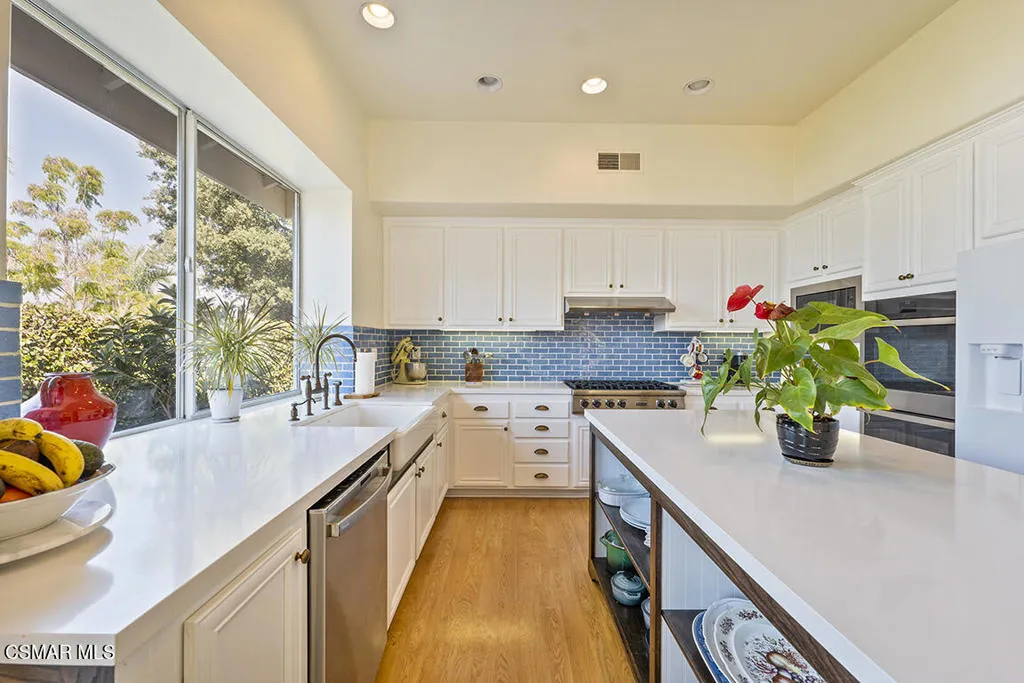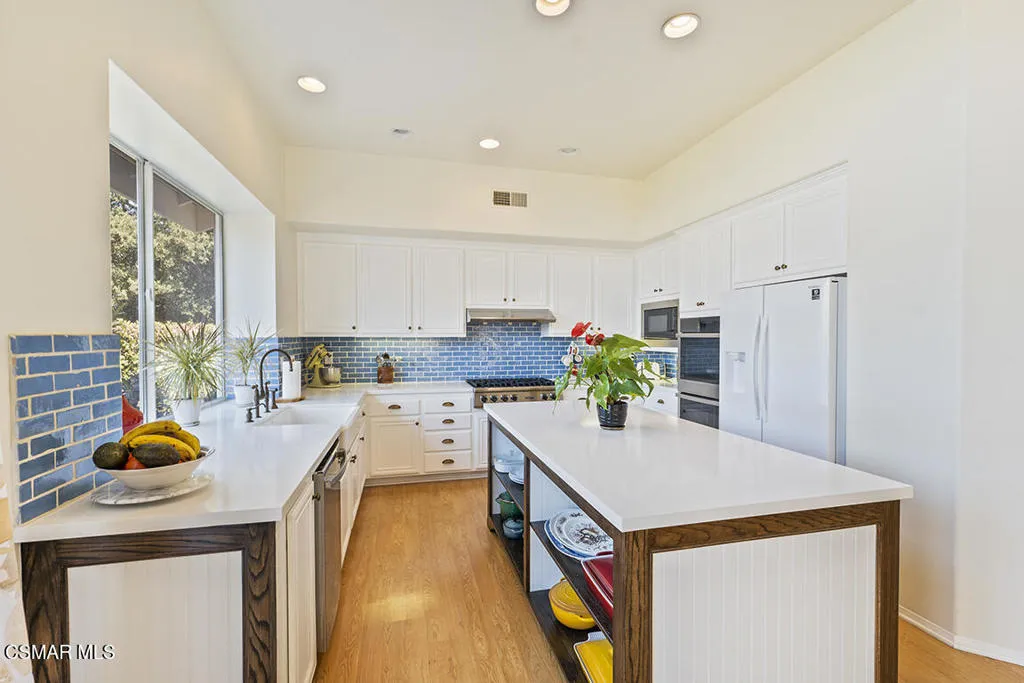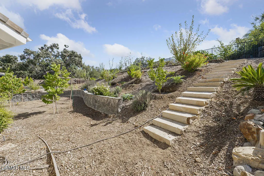 Welcome Home to this Stunning Single Story flag lot property with a private GATED driveway! This desirable Rosewood home features 3,256 sq. ft., 4 bedrooms/3.5 baths, & home is surrounded by breathtaking hillside views on a private lot of over 22,000 sq. ft. & backing to open space. Possible 5th bedroom is the OFFICE. The large foyer offers dramatic architectural detail, a stunning chandelier & soaring ceilings with tons of windows, allowing this space to be light & bright. The remodeled gourmet kitchen provides the perfect blend of beauty & function with quartz countertops and subway tile backsplash, a 6-burner Viking gas range-top, a large island with lots of storage, a double oven, a microwave, & a lovely farm sink. The gorgeous & spacious master bedroom suite offers a remodeled bathroom that features a separate shower with marble subway tile, a free-standing tub, a vanity with dual sinks, a walk-in closet, and a sliding glass door that leads to the backyard. Dual zoned A/C & heating, wood-like floors, 3-car garage with tons of storage. The backyard features a highly productive & edible garden that the owners of Malibu Compost, a true ORGANIC, biodynamic, farm-made & NON-GMO soil company, put in. Pallets & pallets of compost & potting soil during the past 5 years have been used to create an edible food forest of heirloom, organic fruit trees. Four large 15-year-old table grape vines grow profusely in the spring through summer & cover the back fence. Included is a large Tuff Shed & greenhouse to complete your gardening endeavors. Gorgeous private grounds include a terraced view area & expansive unobstructed views. Country living feel, minutes to the Oaks Mall, Dining, Theaters, Golf Course & Markets. This is a MUST SEE!