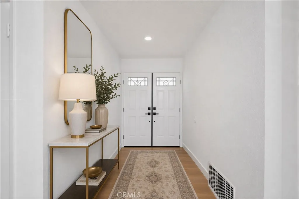 Perched in a prime hillside setting of the Coronado tract, this beautifully reimagined residence at 26366 Mirar Vista offers sweeping valley and rolling hill views enjoyed from the kitchen, dining room, living room, and primary suite… creating a stunning backdrop for everyday living. A spacious front courtyard welcomes you with ample room for entertaining, while inside, the home showcases a complete, high-quality remodel with thoughtful modern finishes throughout. The open-concept floorplan is enhanced by large sliding glass doors that flood the space with natural light, soaring pitched ceilings in the living room, and a striking whitewashed brick fireplace as a focal point. The chef’s kitchen features new white shaker cabinetry, elegant quartz countertops, and brand-new stainless steel appliances. Bathrooms have been fully upgraded with matching cabinetry, quartz surfaces, and premium Moen plumbing fixtures, including a newly designed walk-in shower in the primary suite. Luxury vinyl flooring and new baseboards run seamlessly throughout the home, complemented by recessed lighting for a clean, contemporary feel. Additional upgrades include a new HVAC system, attic fan, and a secure reinforced closet in the primary bedroom for added peace of mind. The freshly painted garage offers built-in shelving, a workbench, and convenient attic storage with pull-down stairs. Step outside to a private backyard retreat with fresh landscaping, a grassy area, and a brand-new pergola over a concrete patio… perfect for relaxing or hosting gatherings. This 3-bedroom, home also offers exceptional convenience, within walking distance to Saddleback College, Arroyo Trabuco Golf Club, and nearby access to Capistrano Valley High School via a close-by easement. Just minutes from the Bluff Trail for hiking. With no HOA, no Mello-Roos, quick freeway access, with 8 parking spaces (3 driveway spaces, 3 street parking permits, and a 2-car garage), this home combines luxury, comfort, and an unbeatable location. Membership to Lake Mission Viejo is optional for a low monthly fee to enjoy sandy beaches, boating, paddleboarding, fishing, concerts, events and so much more!