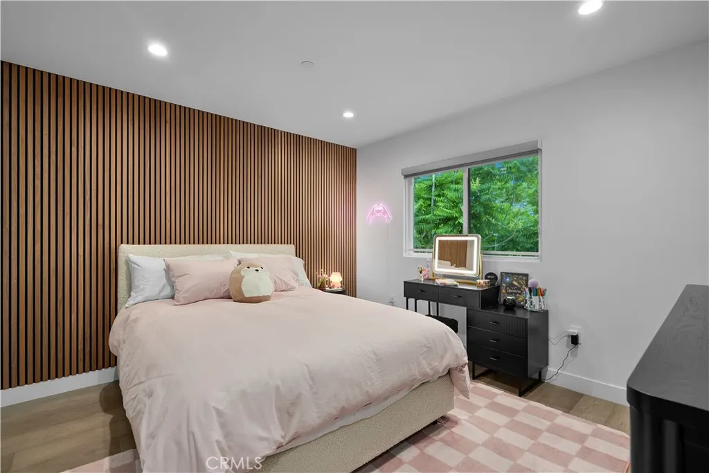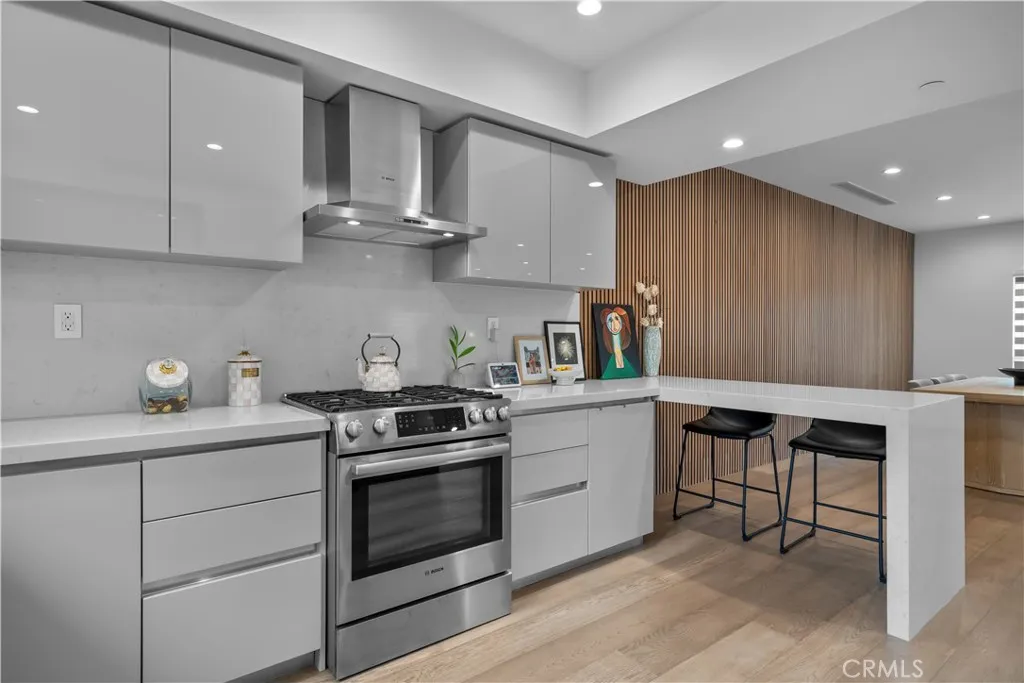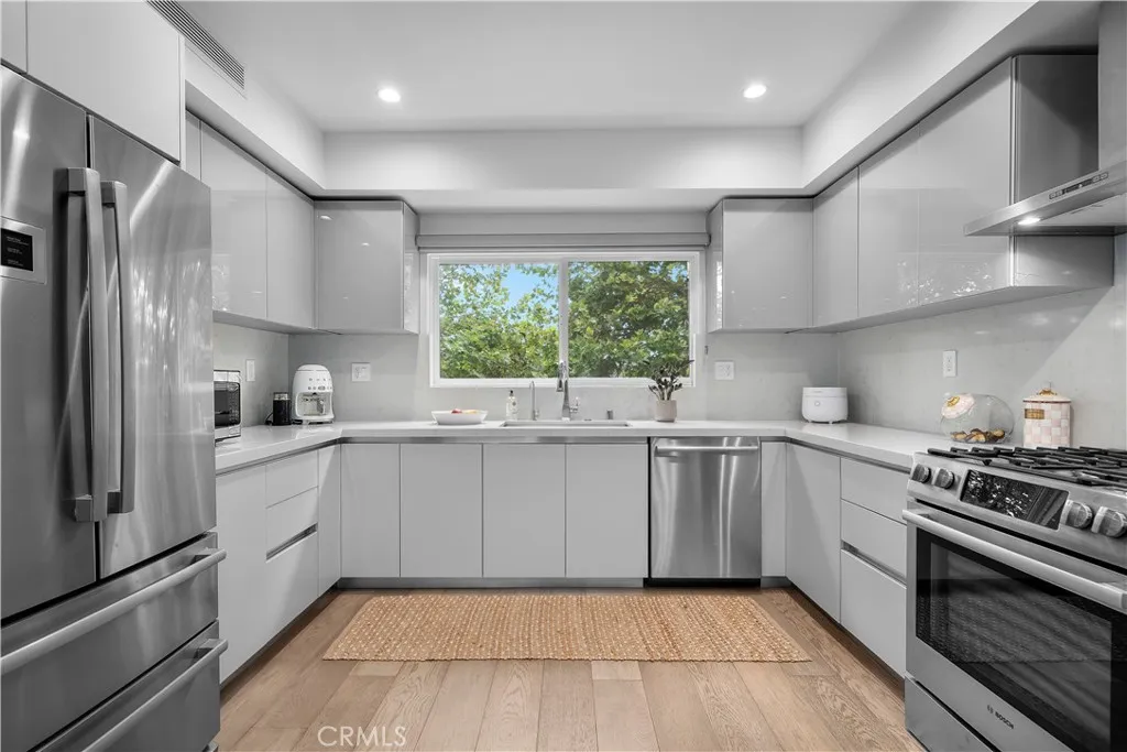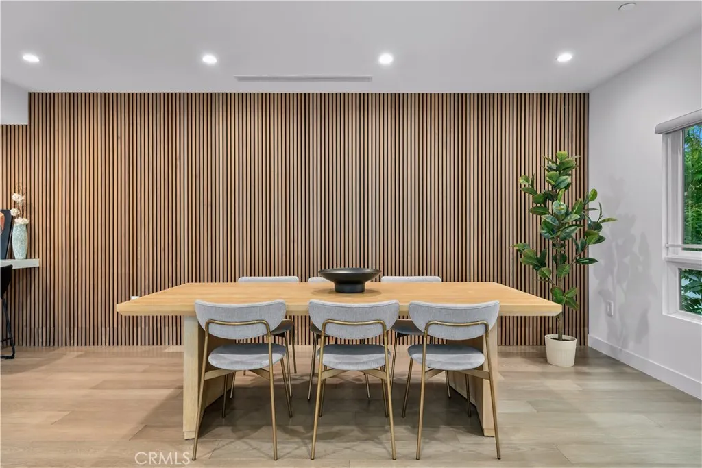 *The best deal in Sherman Oaks* A stunning, turnkey home with room to grow! The main level is designed for gatherings, featuring a 44-foot entertainment area and expansive windows that let in warm natural light. An open dining area adds organic texture, with a white oak slat feature wall that pops beautifully against the pristine, European-inspired kitchen, which showcases sleek glass-paneled cabinetry, deep, soft-close drawers, a pull-out pantry, and an abundance of functional storage.
